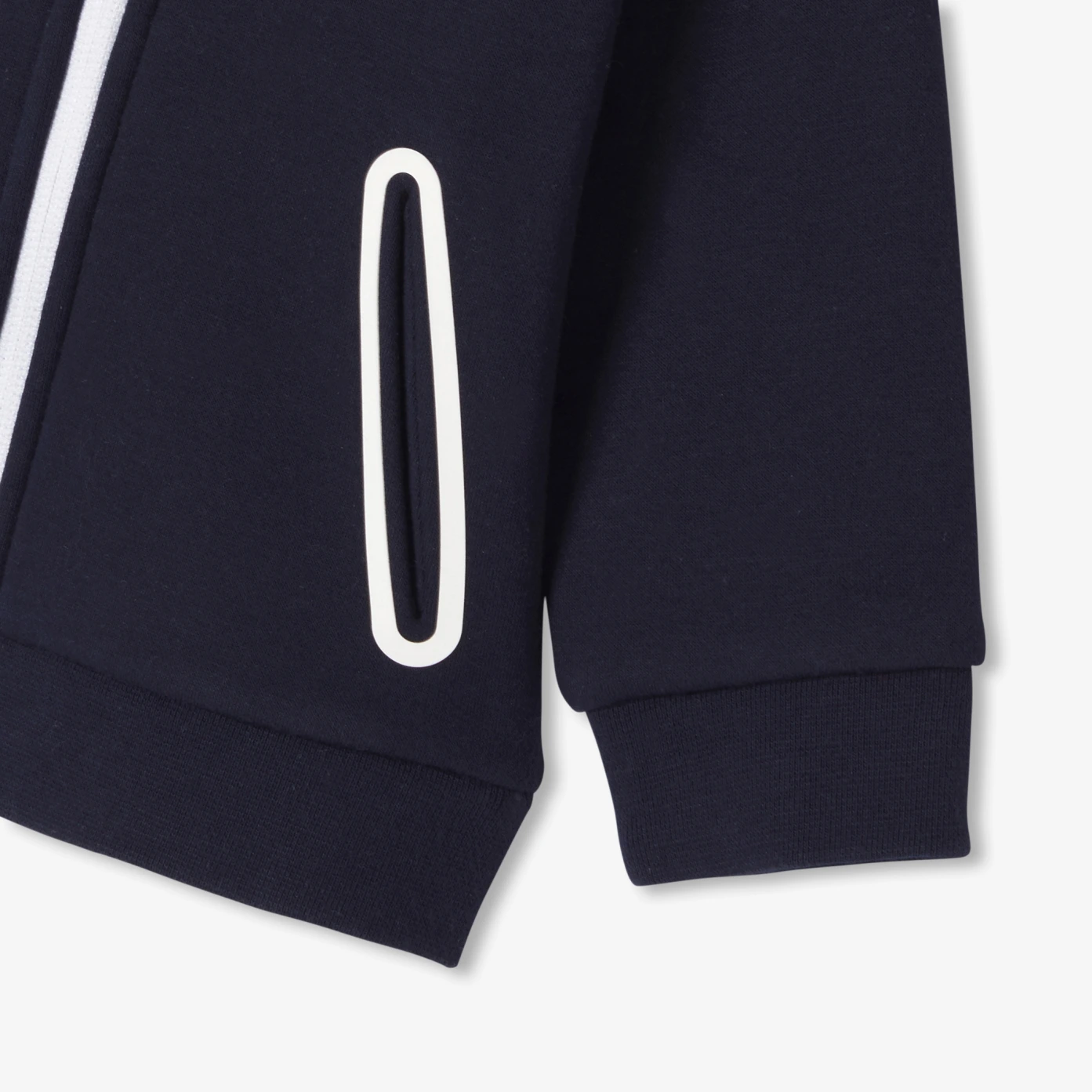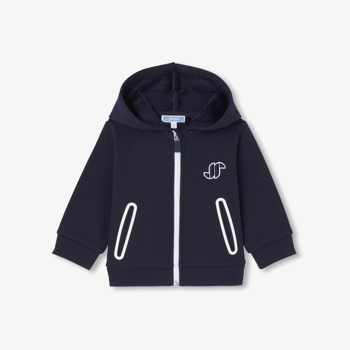 這款男寶寶拉鍊連帽外套以現代感演繹運動風格。選用柔軟舒適的抓絨材質,細節設計講究:對比色拉鍊、口袋飾以半透明壓條,胸前點綴 Jacadi 經典徽章。是一款充滿都會氣息的實穿單品,為寶寶的日常造型增添時尚魅力。