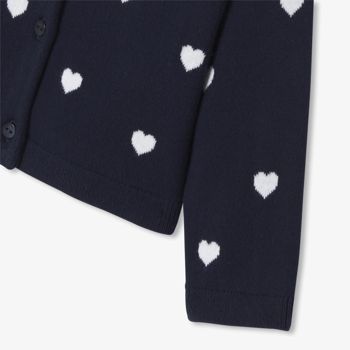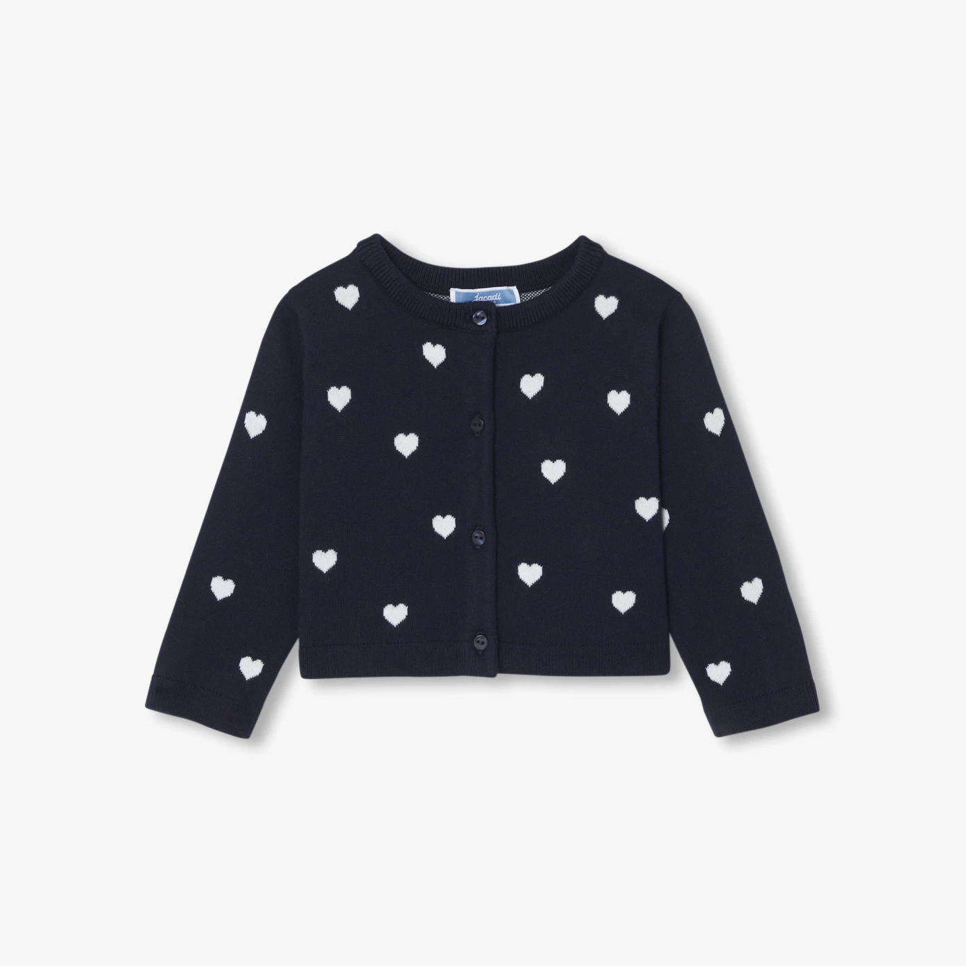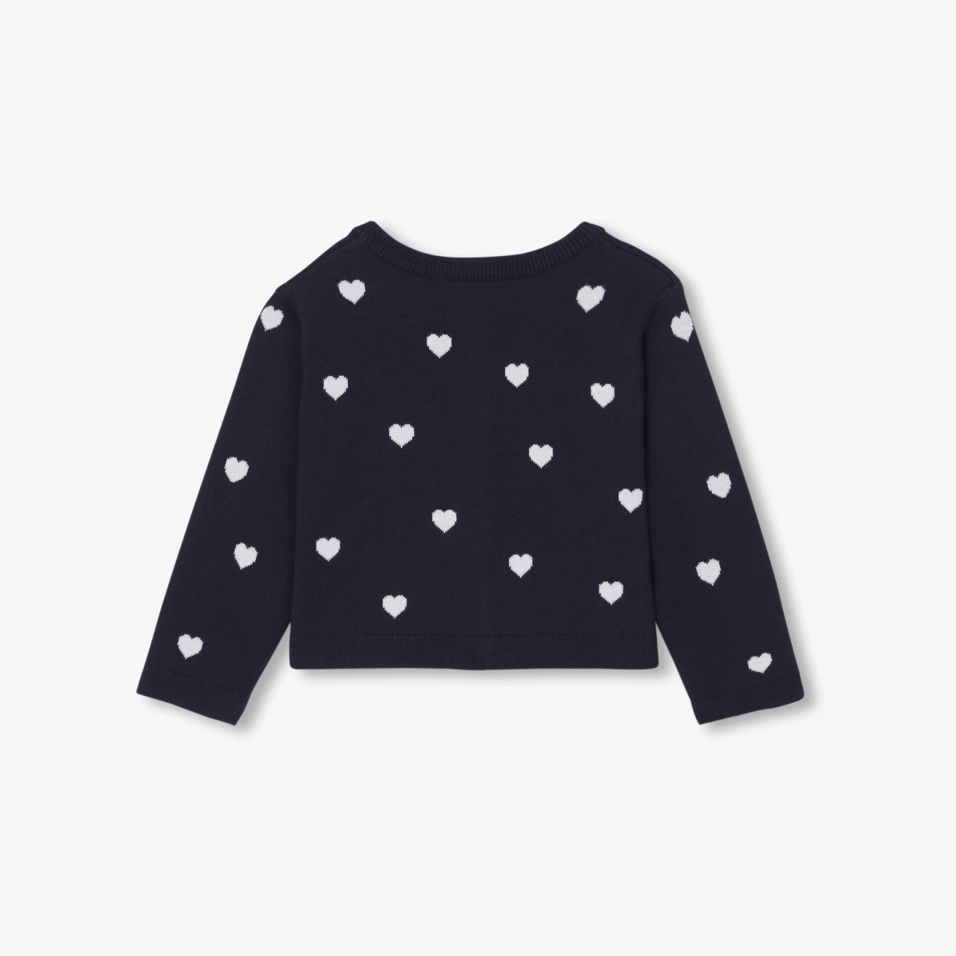 柔軟有彈性的有機棉材質,搭配可愛的愛心緹花圖案,這款女寶寶針織開襟線衫集舒適與優雅於一身。正面按釦設計方便穿脫,搭配同系列褲裝,打造滿載溫柔與幾何趣味的造型。