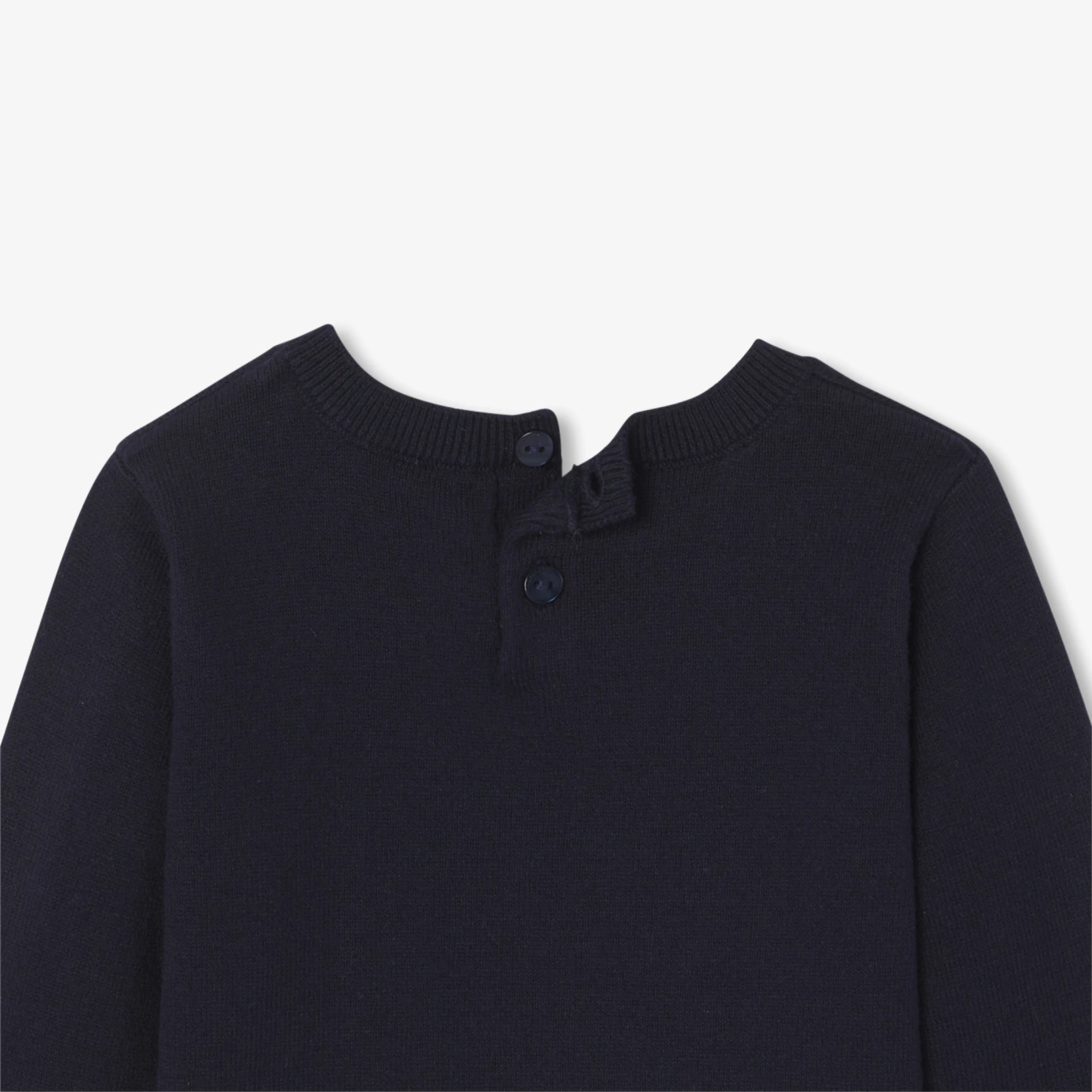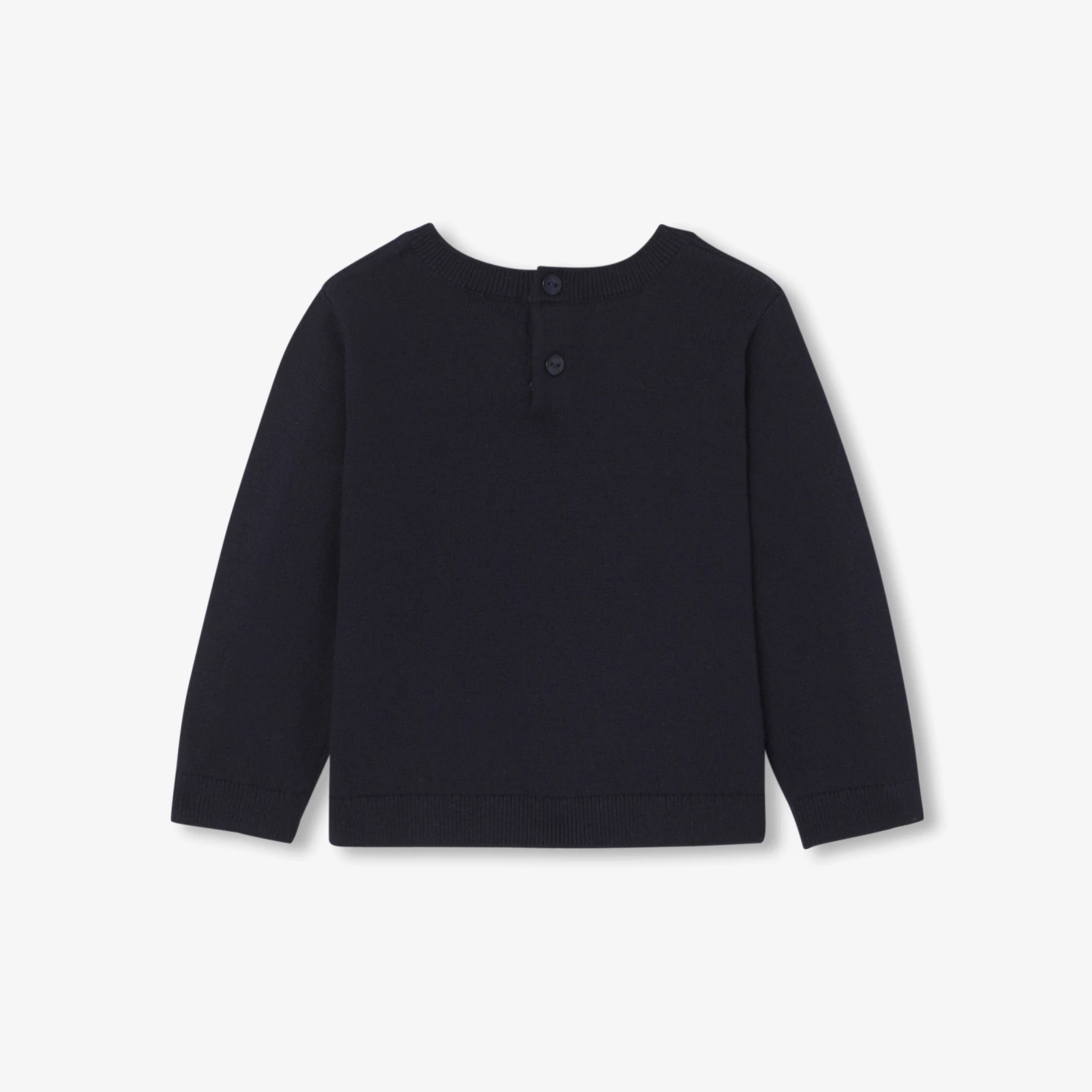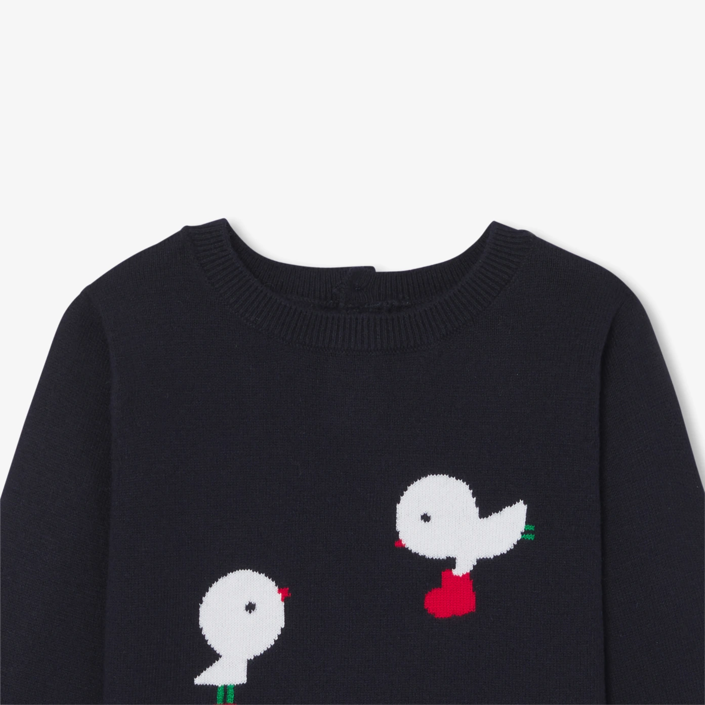 這款女寶寶毛衣是日常衣櫥的必備款,點綴著趣味十足的緹花鳥與花卉圖案。採用有機棉與永續羊毛混紡,搭配有領連身衣與天鵝絨細條絨短褲,營造出優雅且隨性的巴黎休閒風格。