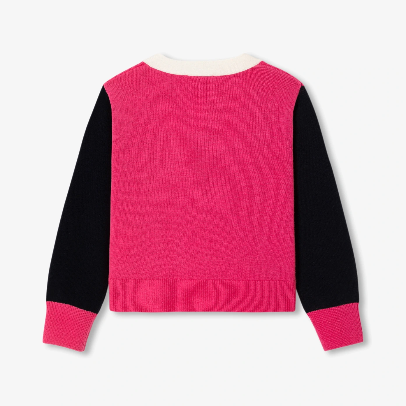 這款大女童針織開襟線衫選用柔軟彈性針織材質,拼色設計巧妙點綴,搭配刺繡花朵徽章與貼袋細節,為經典V領造型注入細膩巧思。可搭配圓領上衣與寬褲,展現舒適有型的法式日常風格。