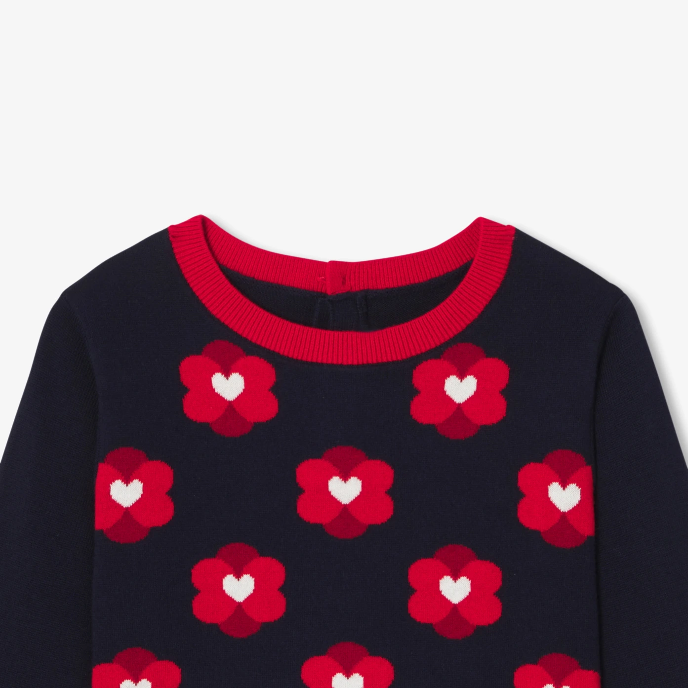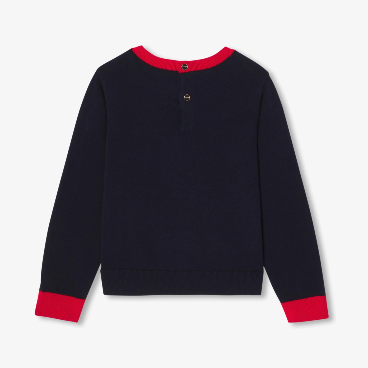復古摩登又充滿色彩感,這款大女童線衫展現 Jacadi 的精湛工藝。選用柔軟舒適的有機棉材質,正面與手肘飾有獨特的雙面花卉緹花圖案,領口與袖口則採撞色設計,增添幾何風格的現代感。背部設有釦子開口,方便穿脫,搭配寬褲與娃娃鞋,即可輕鬆展現開學季的優雅風格。