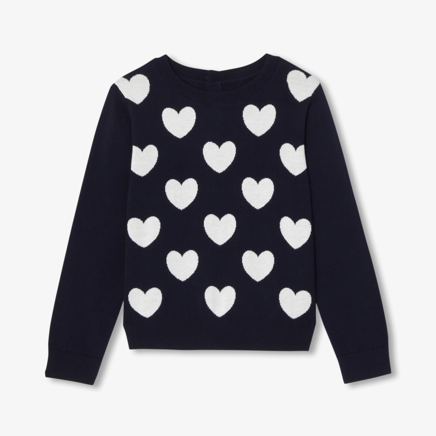 這款有機棉大女童線衫開學季衣櫥的必備單品。柔軟舒適,背部按釦開口設計方便穿脫,雙面愛心緹花為正面增添童趣與優雅感。無論搭配寬褲還是短褲,都能輕鬆打造法式休閒風格的時髦造型。