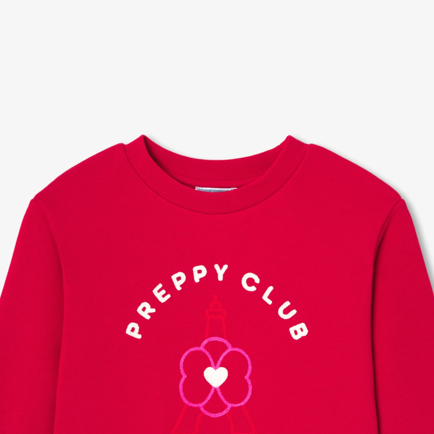 這款運動風格、時尚且實用的女童刷毛上衣,是日常衣櫥不可或缺的單品。採用柔軟內刷毛絨布,前胸繡有以花朵和愛心點綴的艾菲爾鐵塔圖案,背部按釦設計方便穿脫,搭配寬褲與運動鞋,營造學院運動風格。