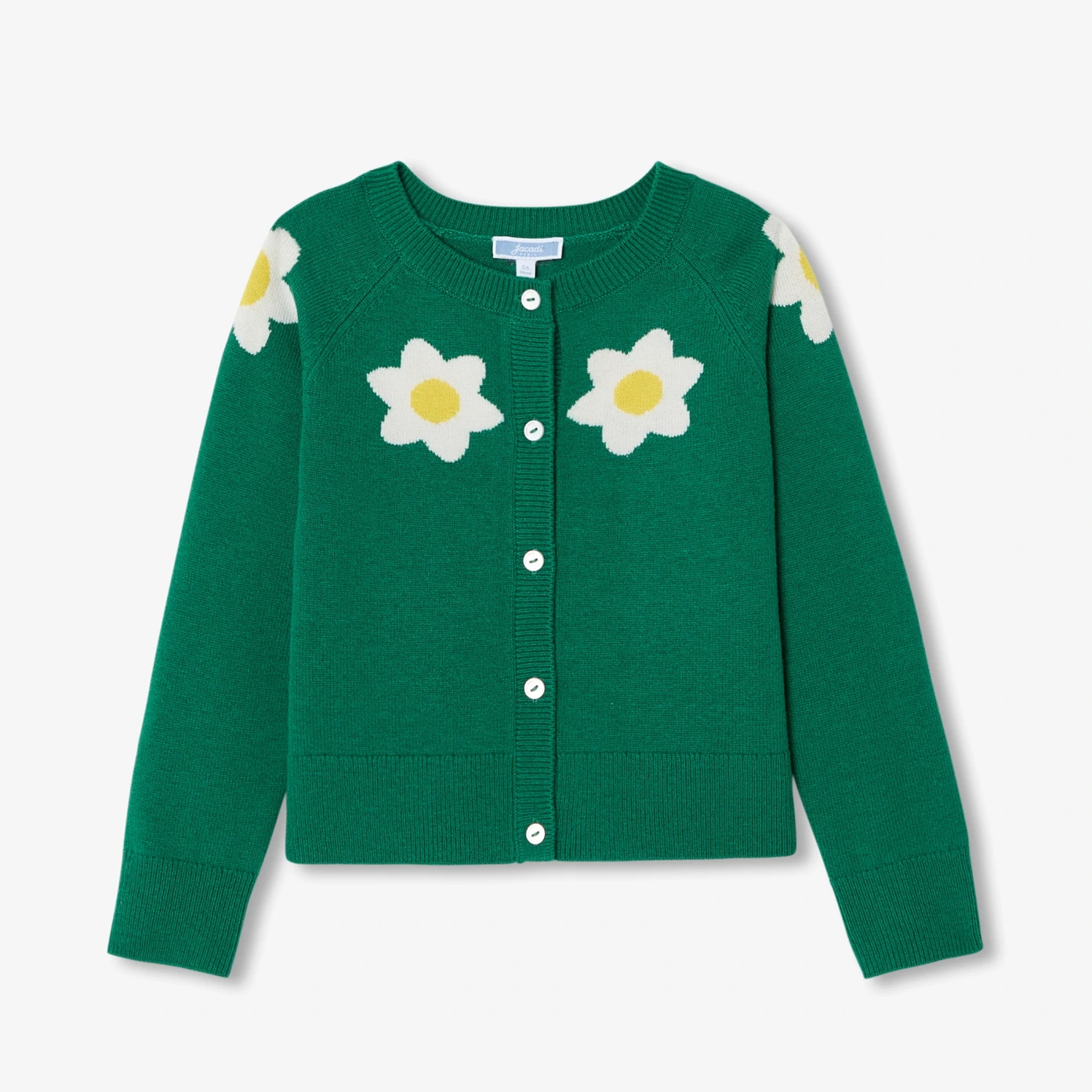 這款大女童開襟毛衣以可持續羊毛與羊絨精製,領口處點綴優雅的水仙花緹花圖案,為整體造型增添細緻格調。採用同色系釦子開合,方便穿脫,可搭配連身裙或領口T恤,輕鬆營造典雅學院風造型。