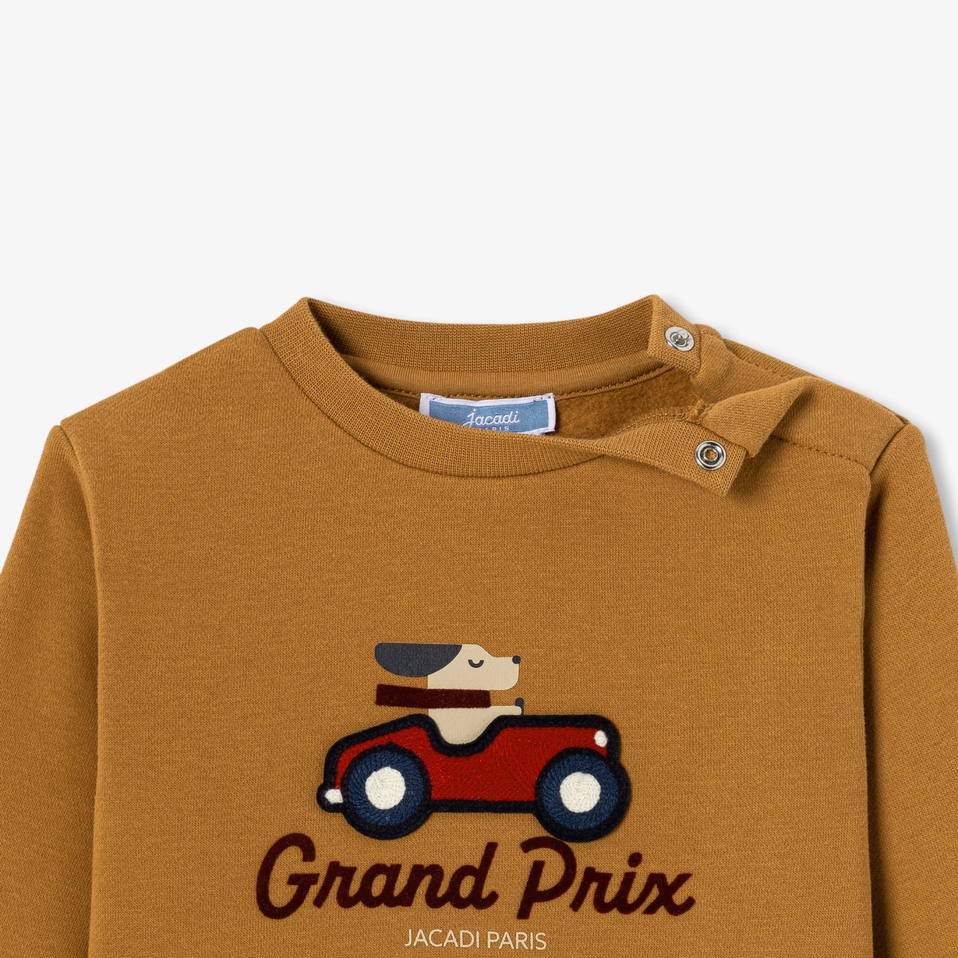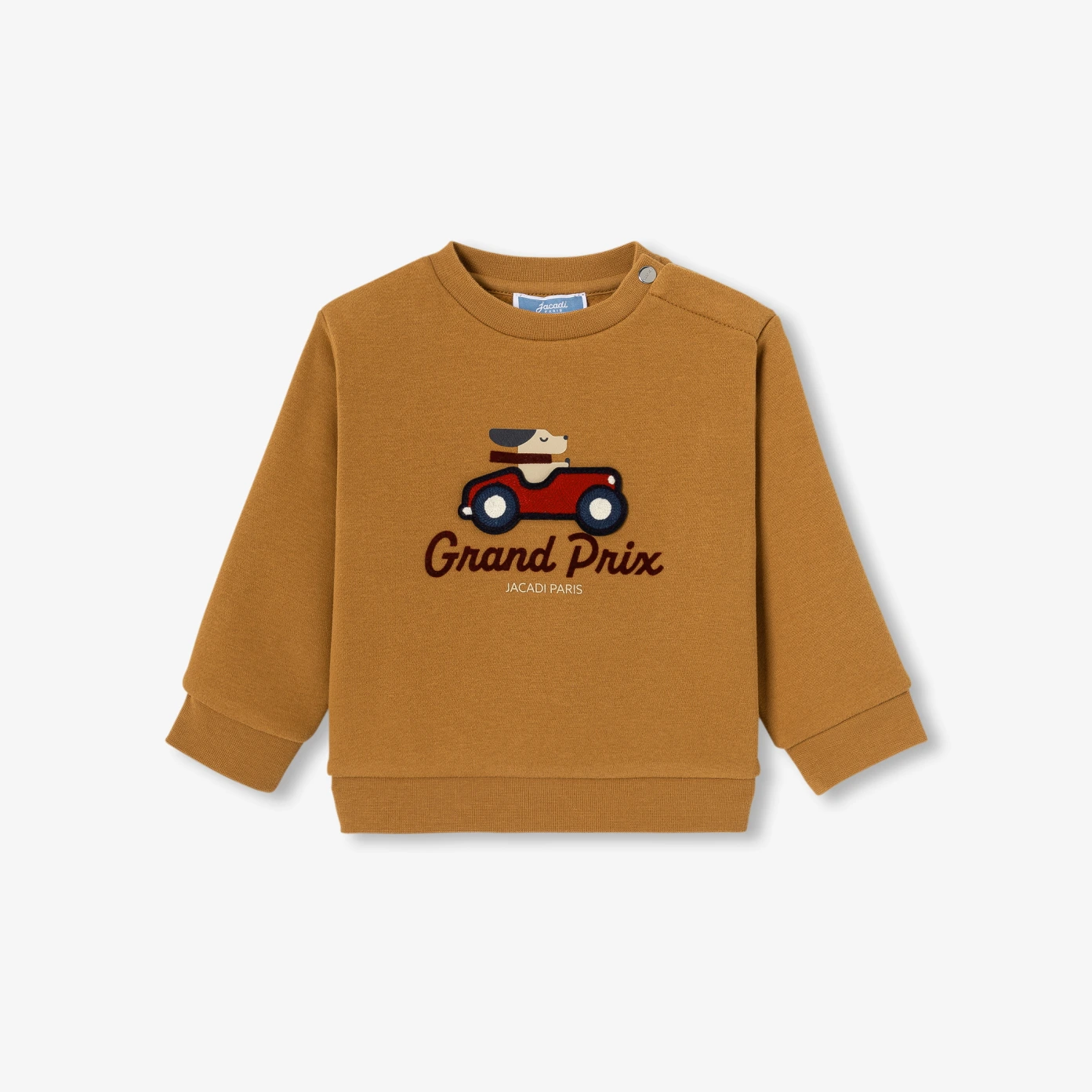 這款男寶寶套頭上衣以復古小汽車為靈感,彷彿帶領寶寶暢遊巴黎街頭。選用有機棉混紡貼合刷毛布料,內襯柔軟天鵝絨,觸感溫暖舒適,是秋季衣櫥不可或缺的單品。搭配牛仔褲或燈芯絨長褲,特別適合喜愛車車的小小賽車迷。