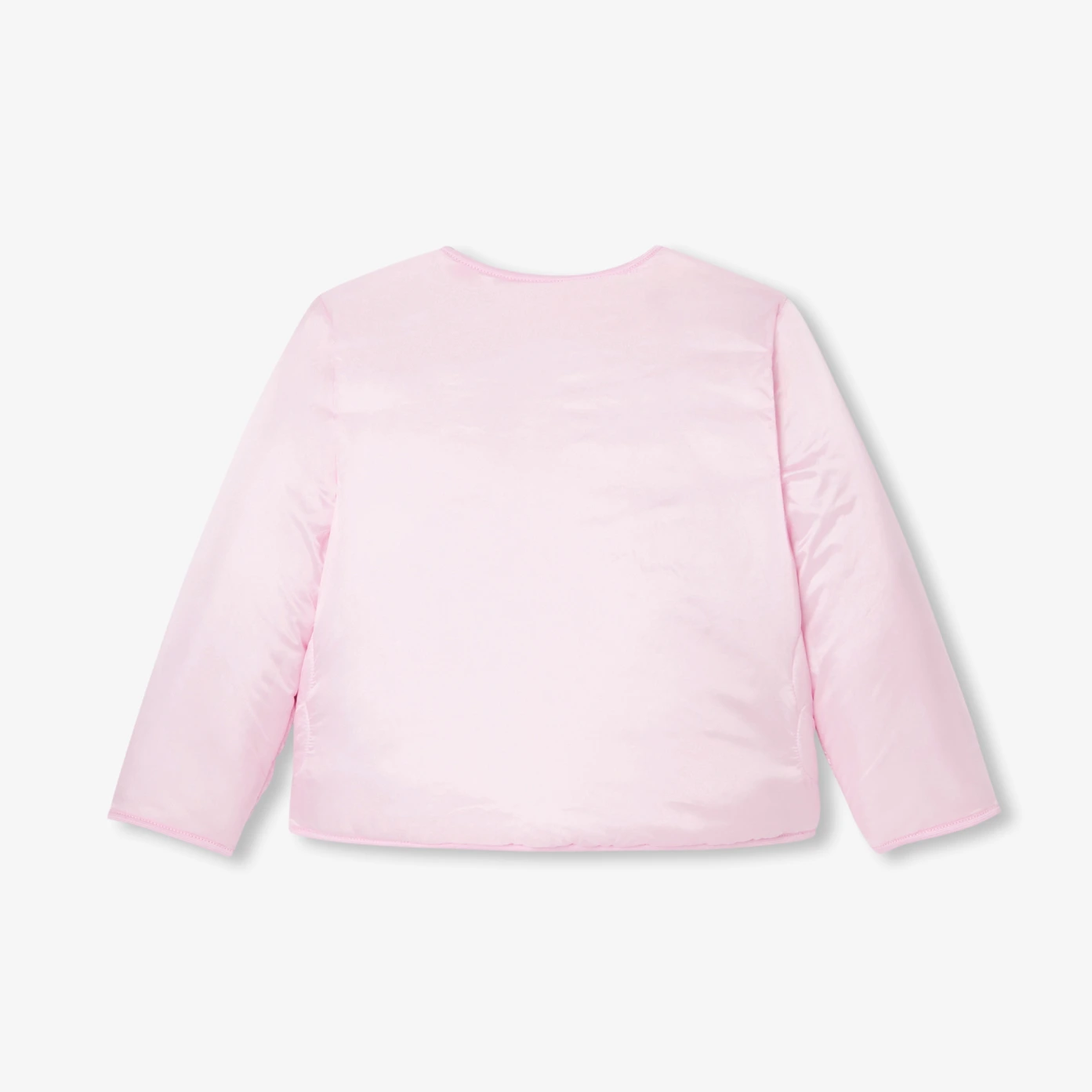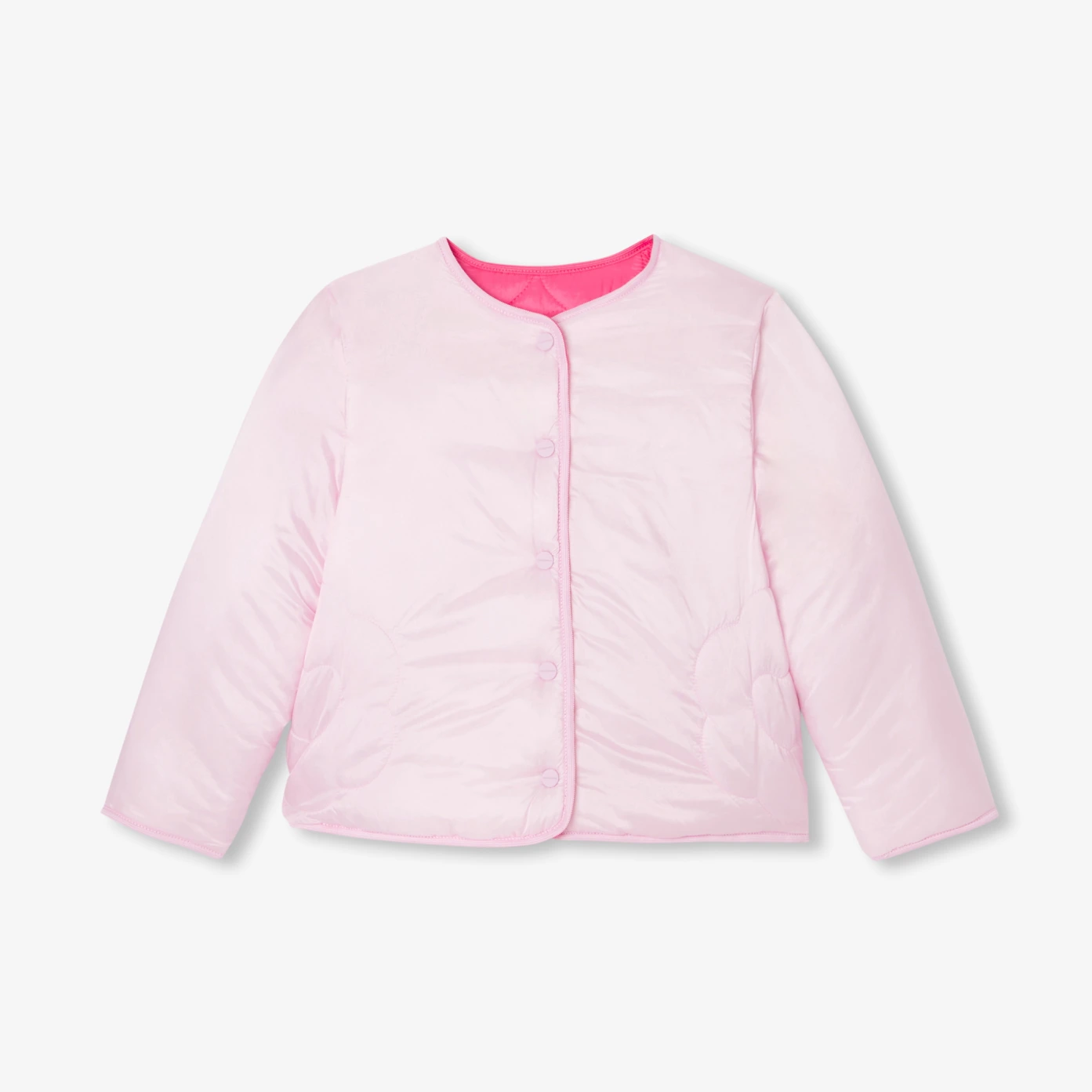 展現 Jacadi 精湛工藝的代表之作,這款輕盈的女童鋪棉外套將成為衣櫥中的亮點。正面以愛心絎縫圖案營造現代感,反面則巧妙壓製出花朵圖騰圍繞口袋周圍,讓穿搭風格更加百變。設計簡約、易於搭配,是兼具實用與美感的秋冬季必備單品。
