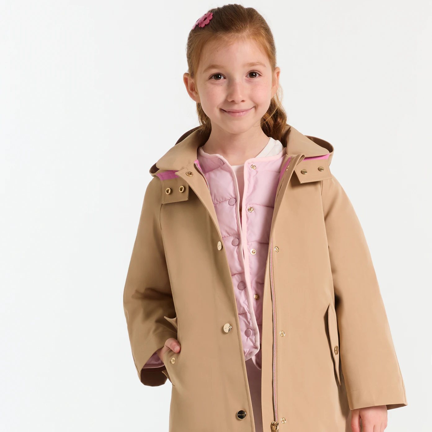 隨著季節更迭,Jacadi 延續法式設計美學,精心打造兼具實用機能與優雅風格的女童連帽外套。此款外套採用 3 合 1 多功能設計,結合一件防潑水外套與可拆式鋪棉內層,可靈活調整穿搭。外套內襯選用經典格紋布料,搭配撞色滾邊細節,展現品牌一貫的細緻工藝。不論日常通勤或假日出遊,皆能輕鬆搭配,完美詮釋法式童年的優雅氣質。