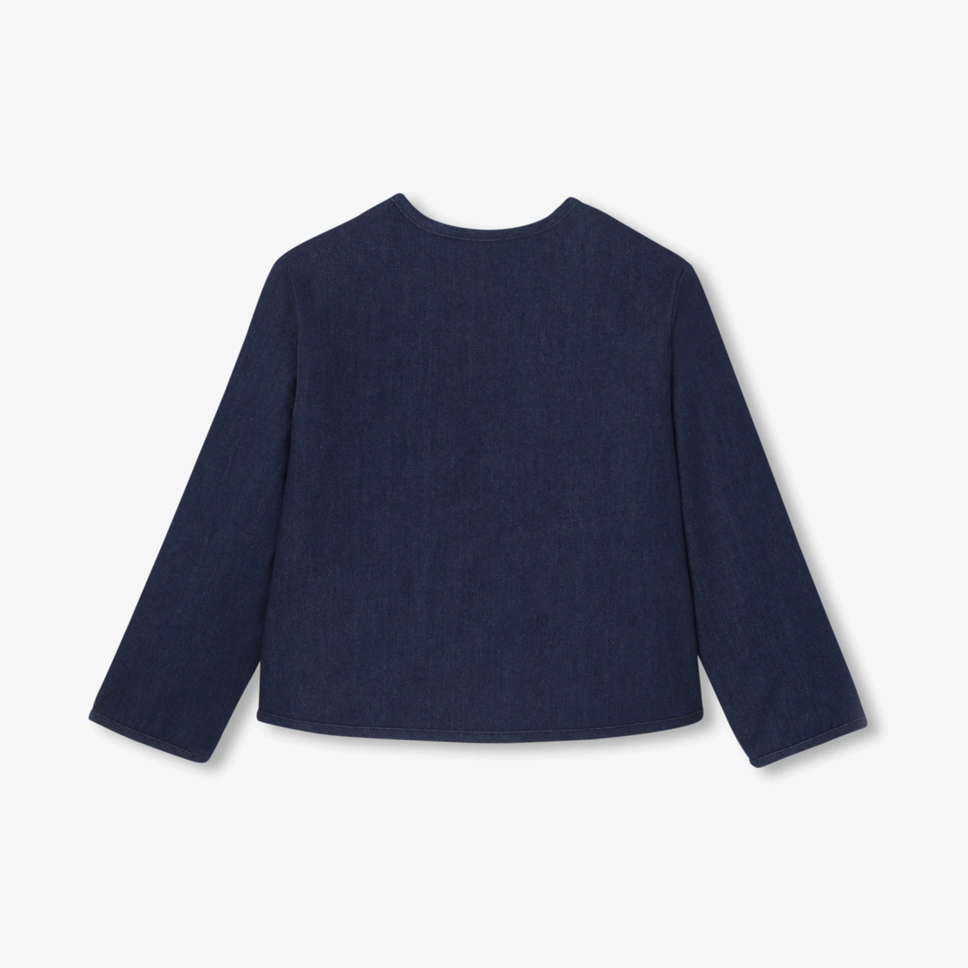 這款女孩短外套兼具舒適與經典風格,是季節交替期間的理想之選。採用無領設計與圓角貼袋,並以金色壓釦點綴,呼應學院風制服元素,為整體造型增添精緻氣息。不論是日常穿搭或半正式場合皆可輕鬆駕馭。