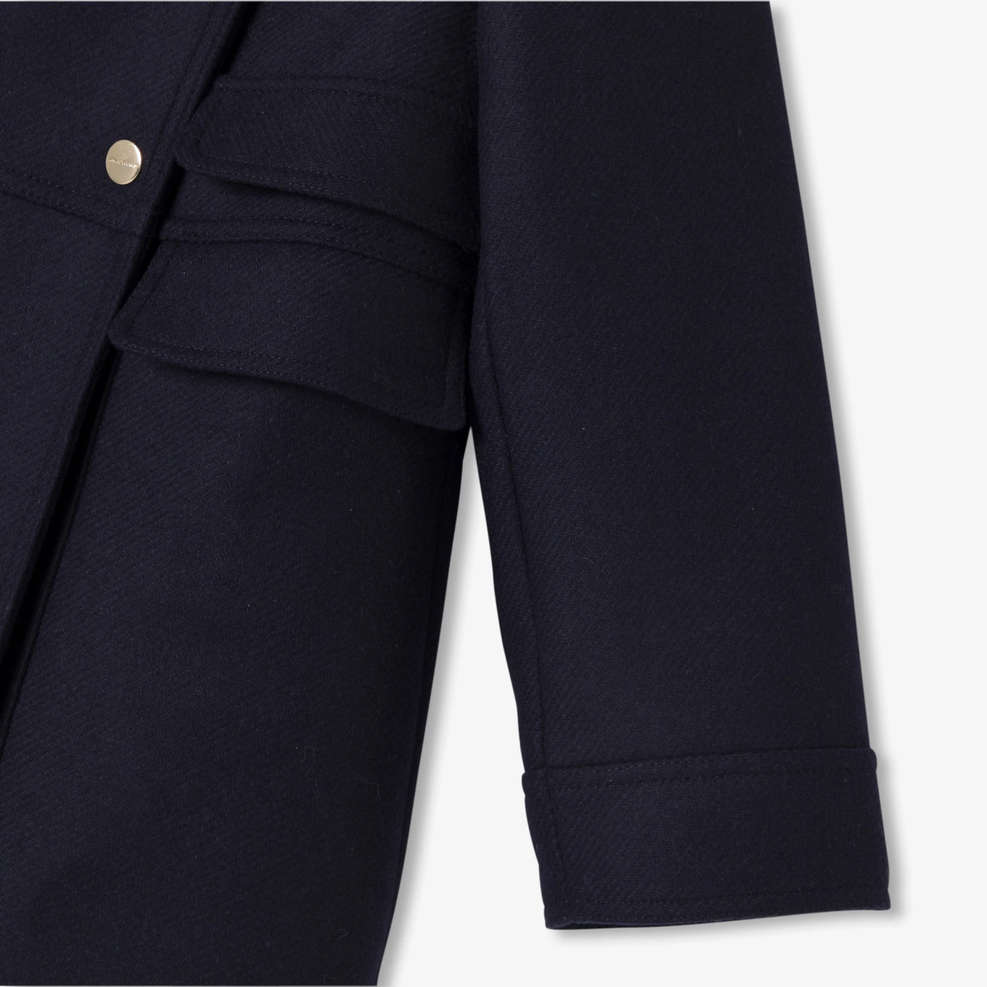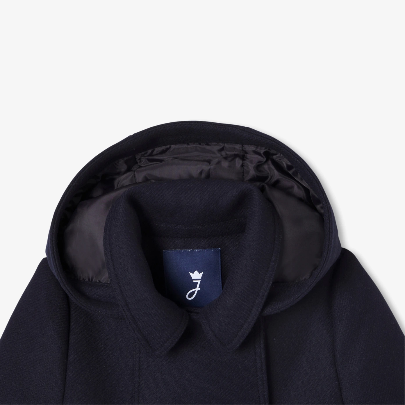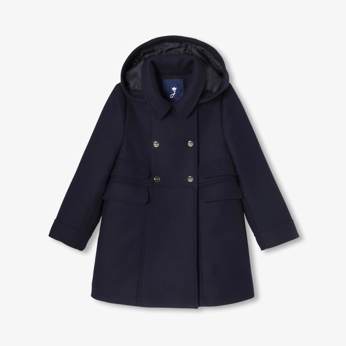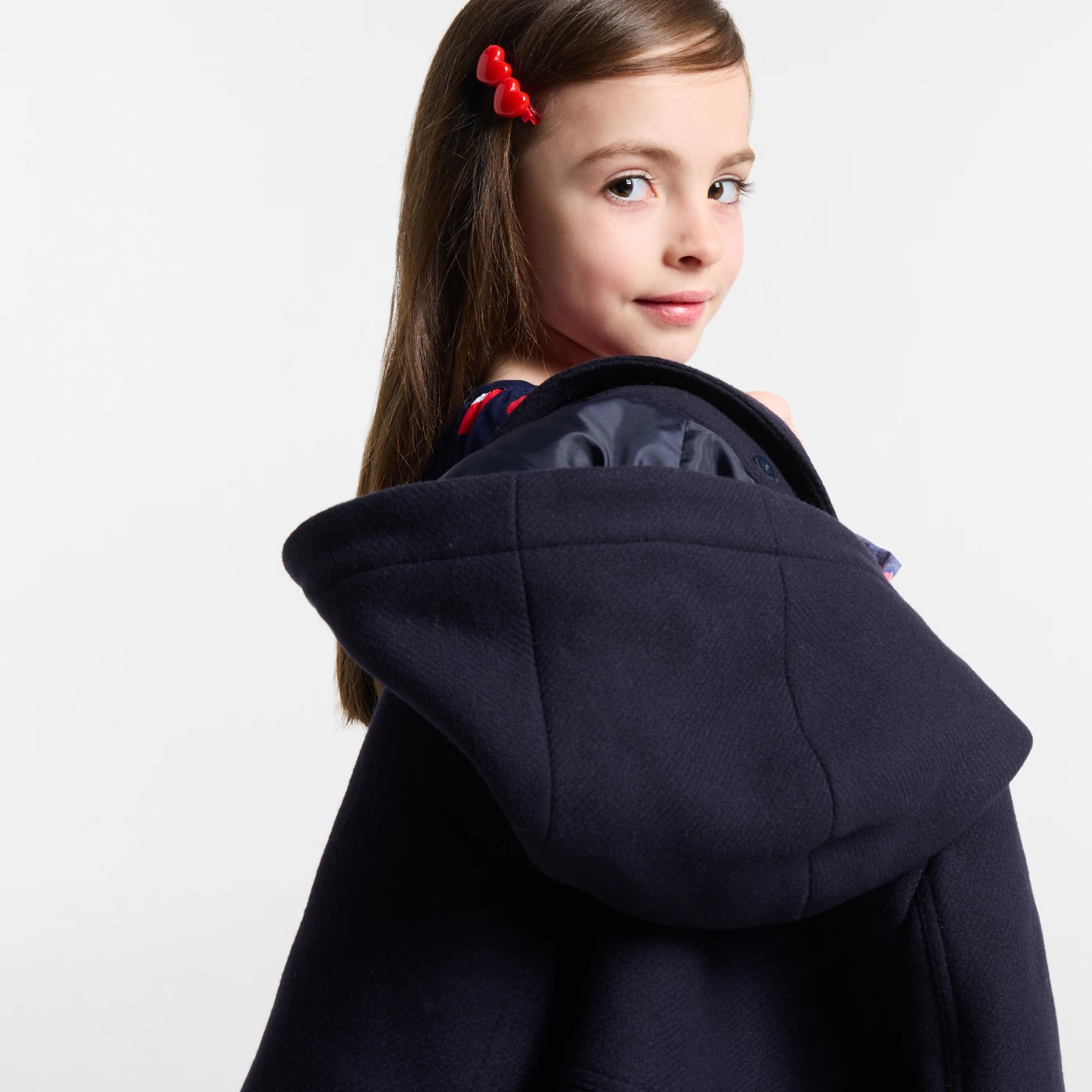 這款英倫風羊毛大衣兼具優雅與實用,以學院風新裝點綴女孩衣櫥。以精緻剪裁呈現英式氣質,胸前點綴仿口袋設計,下襬配有實用翻蓋口袋,細節低調卻充滿品味。內裡加入輕薄鋪棉與柔軟裡布,搭配可拆式帽子,無論天氣微涼或更寒冷都輕鬆應對。穿上丹寧洋裝,或搭配寬版長褲與瑪莉珍鞋,營造出都會學院風的優雅,是日常通勤與上學的理想之選。