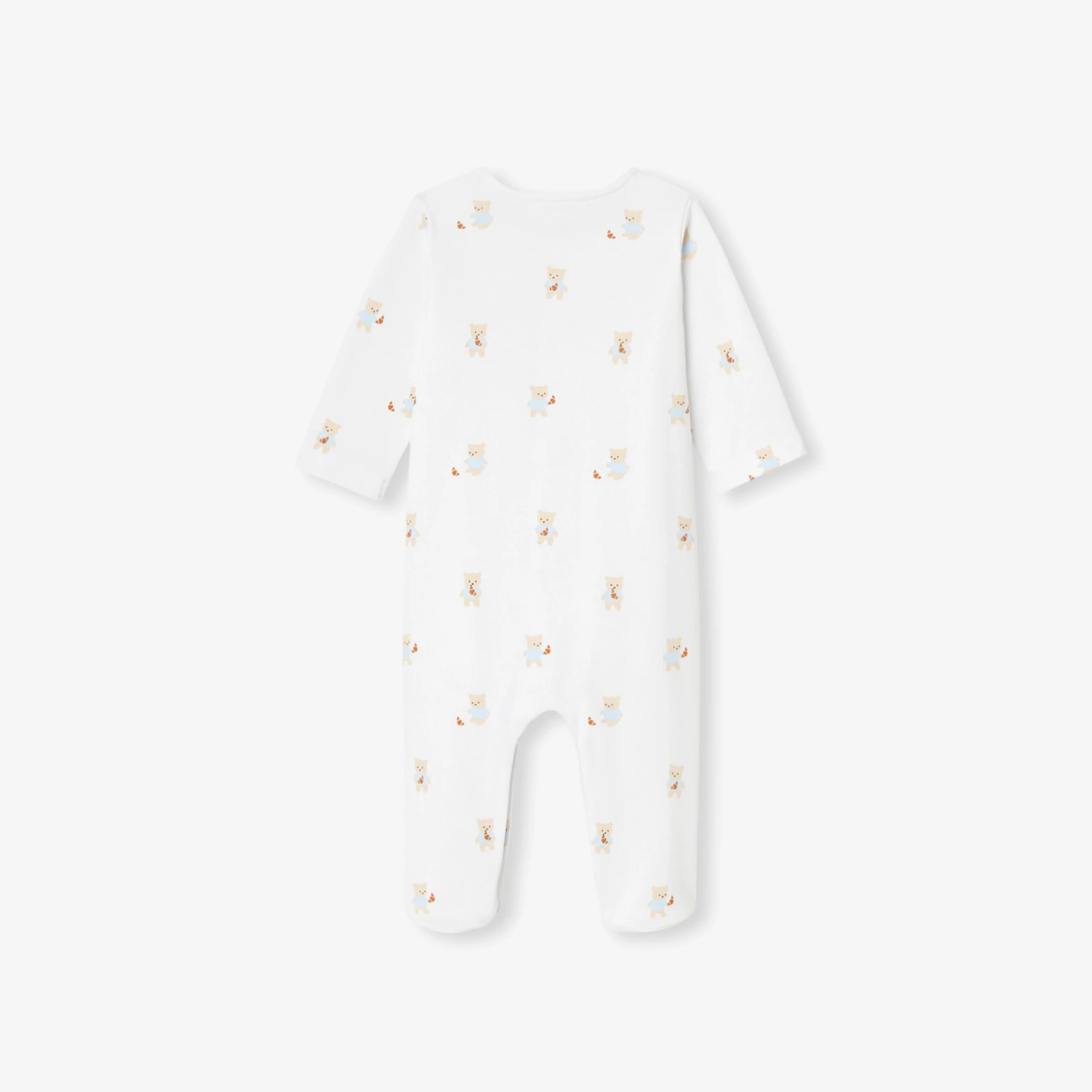 這款簡約設計的新生兒兔裝將寶寶帶入一個充滿童趣和美味的世界,玩具熊與可頌麵包相遇。採用柔軟、有機棉製成,前開襟設有隱形按扣,輕鬆穿脫,保證新生兒擁有甜美的夜晚。