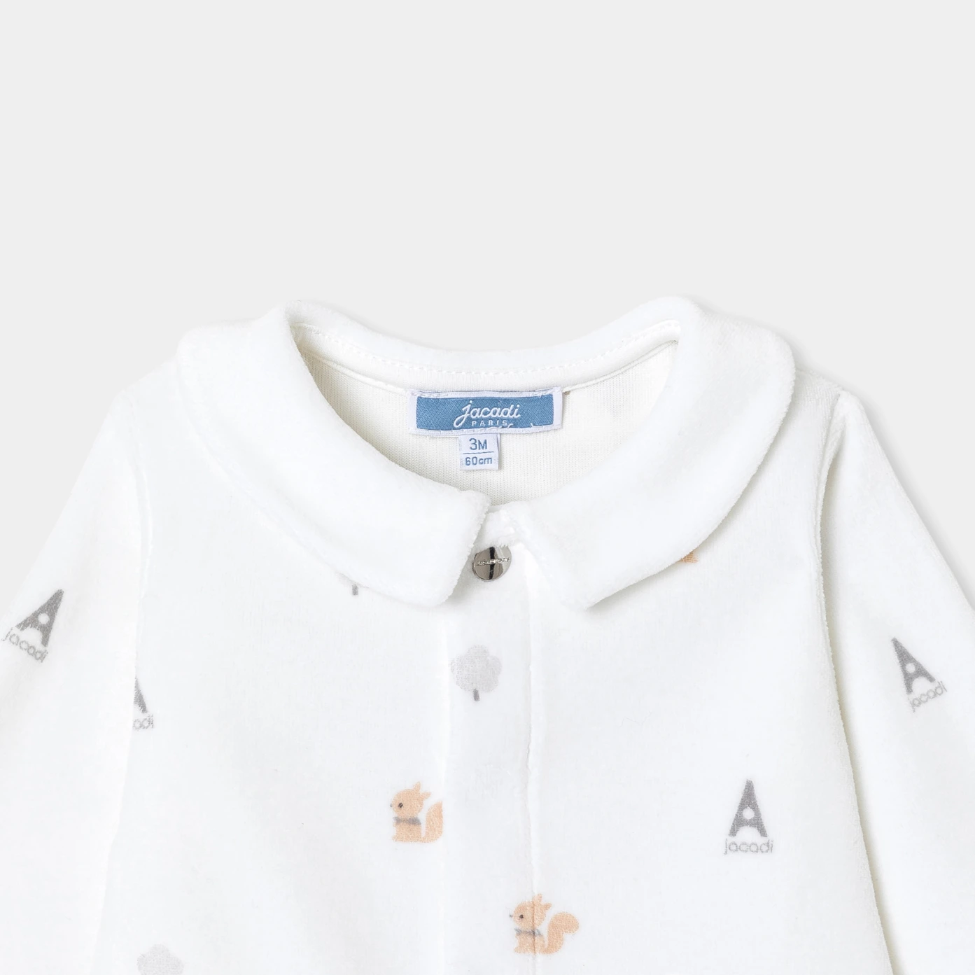 這款新生兒兔裝以有機棉柔軟天鵝絨製成,搭配細緻的純棉布領口,展現休閒中帶點優雅的氣息。正面按釦開合設計方便穿脫,舒適柔軟的材質讓寶寶享受甜美好眠。無論作為日常必備,或作為精緻的彌月禮物,都是理想之選。
