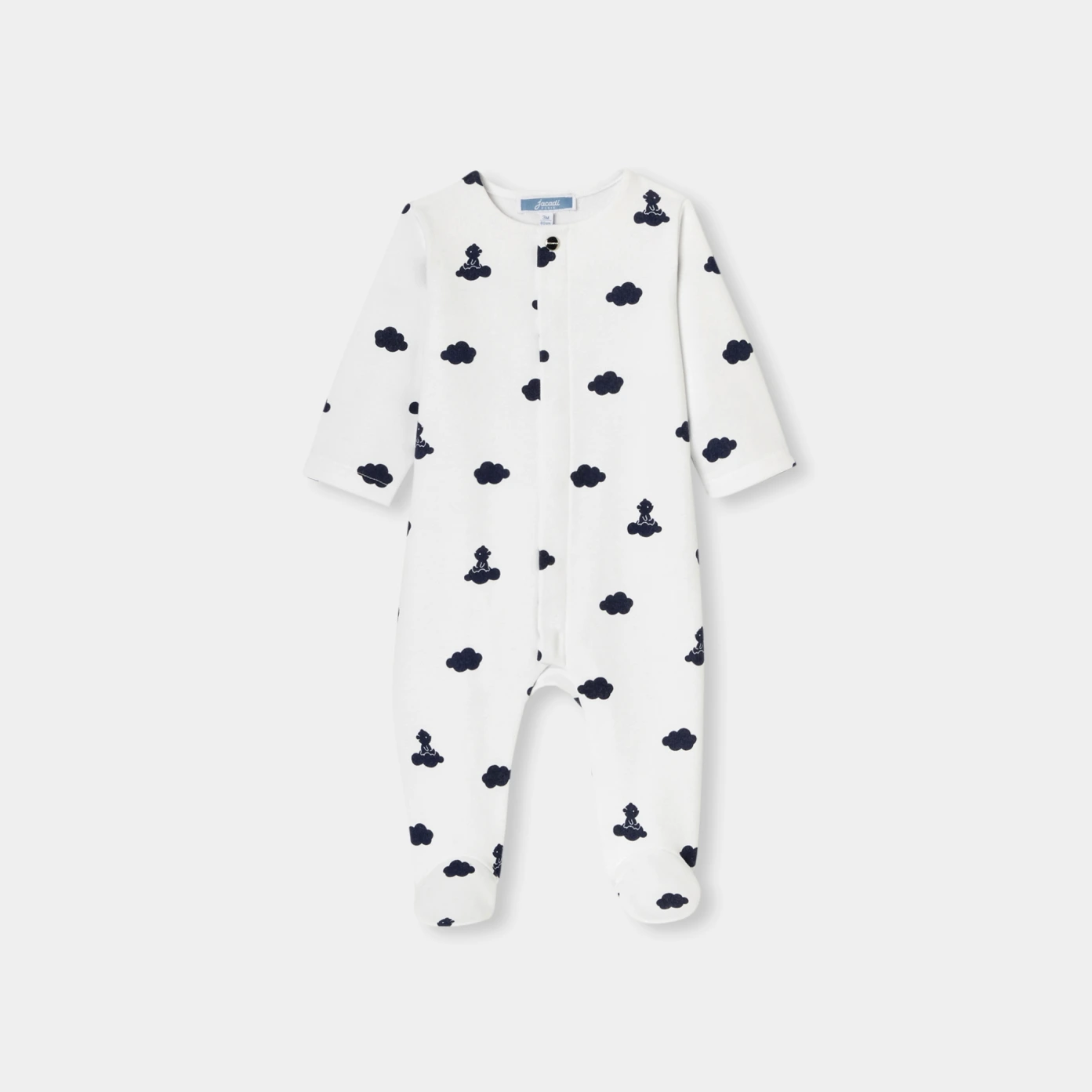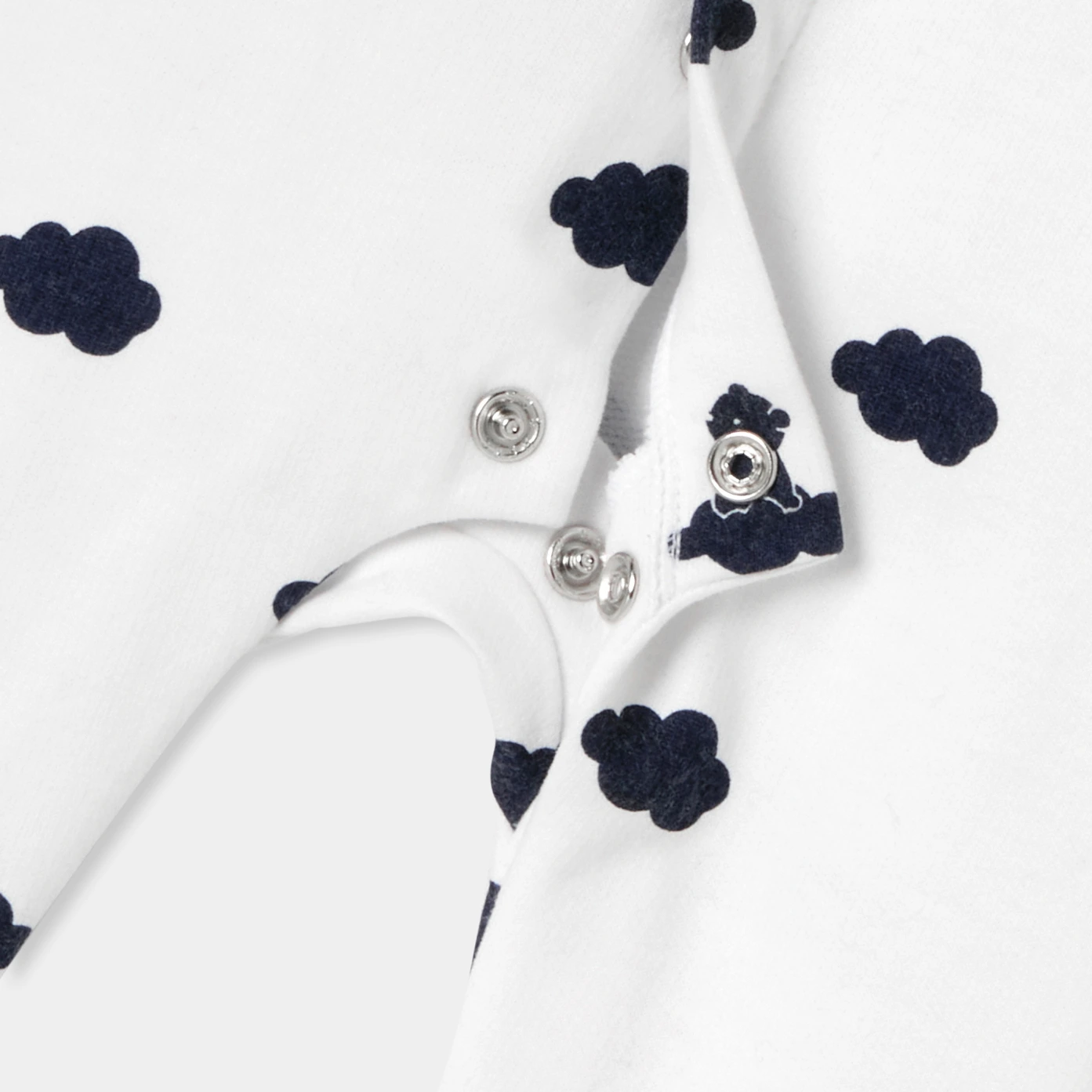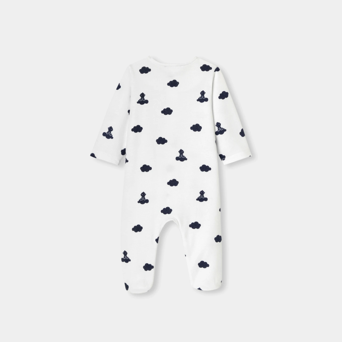 這款新生兒兔裝帶領您進入一個迷人的幾何世界,雲朵上的小熊圖案彷彿邀請著做白日夢。這款兔裝採用柔軟的刷毛絨面料,內裡舒適而包覆,穿脫方便,隱形前按鈕設計,適合伴隨寶寶小憩與夜晚的安眠。