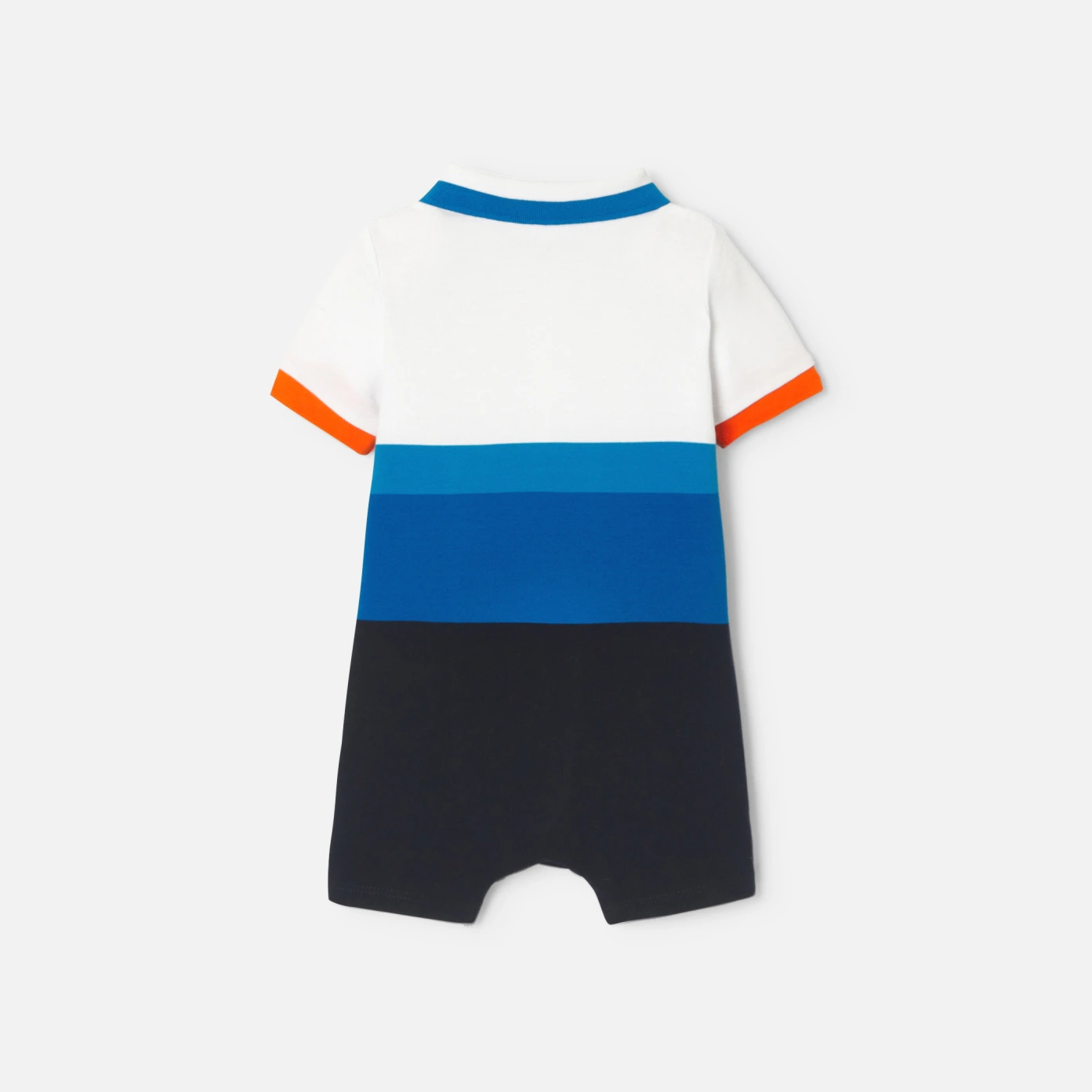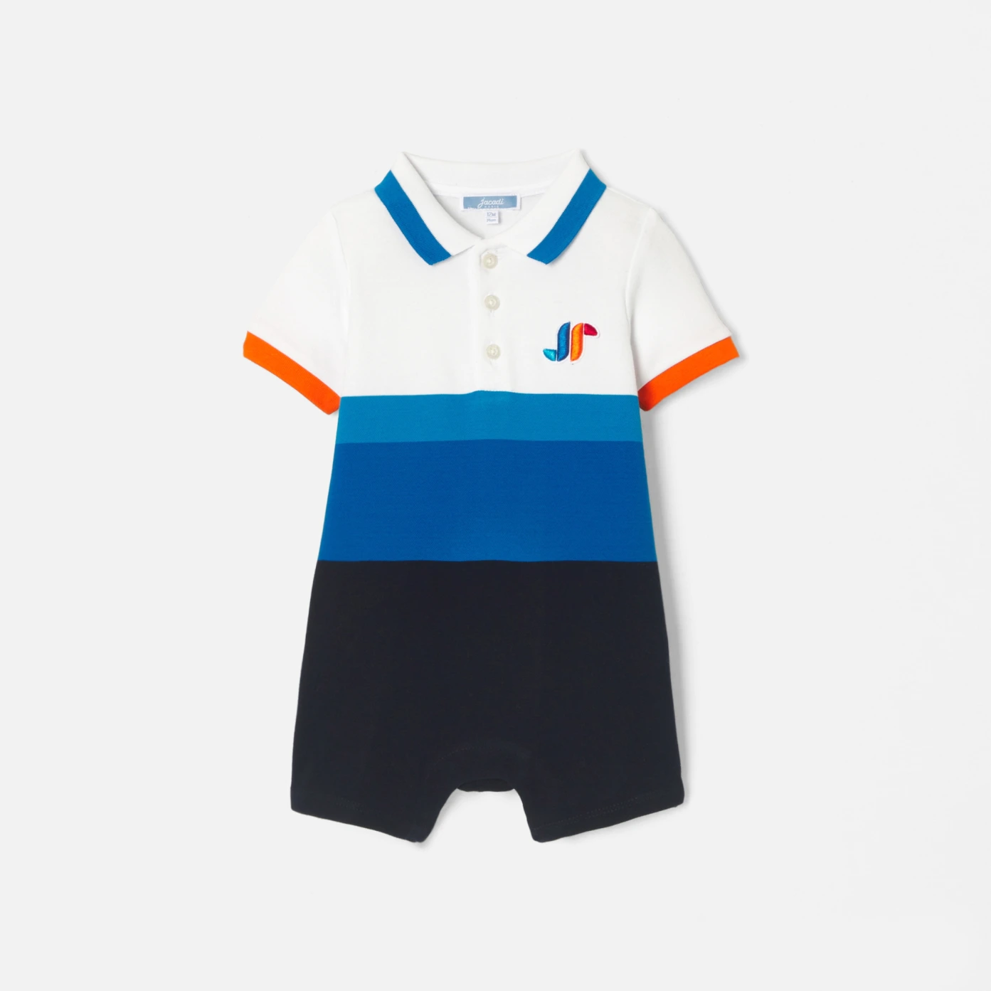 這款男童連身裝採用了適合春天的色塊外觀。法式風格款式運動時尚、領口和胯部開口設計方便穿著。完美的季節性禮物。