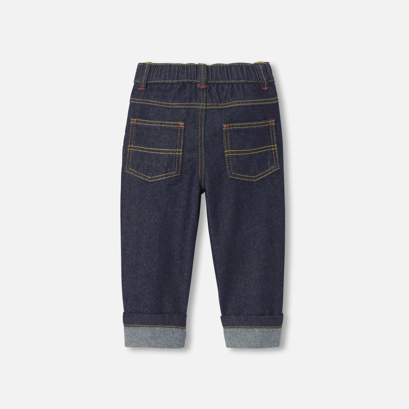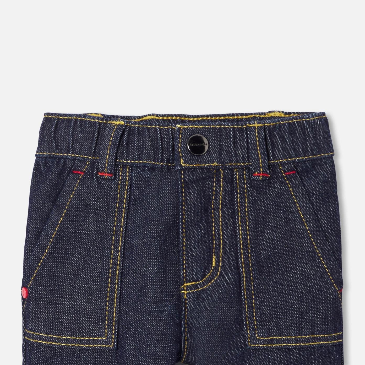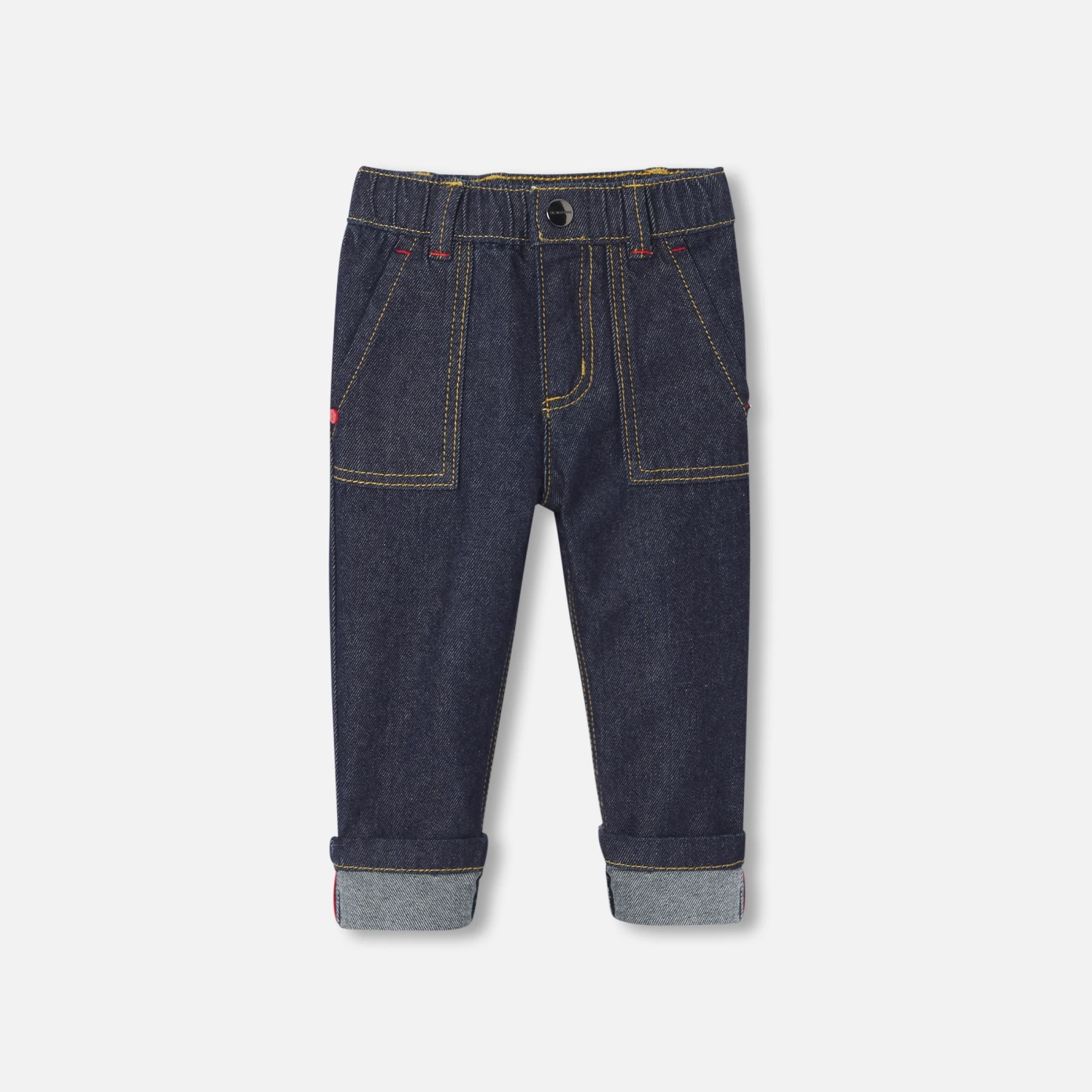 這款牛仔褲以日本帆布牛仔褲為靈感,比以往更加現代。這些牛仔褲更耐磨,採用原色布製成,有著工裝風格的大口袋,並在褲腳襯上對比管飾。可搭配海軍藍毛衣或開襟外套,打造出現代感十足的風格。