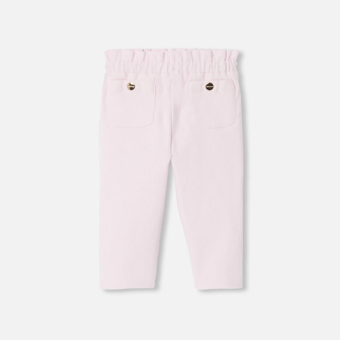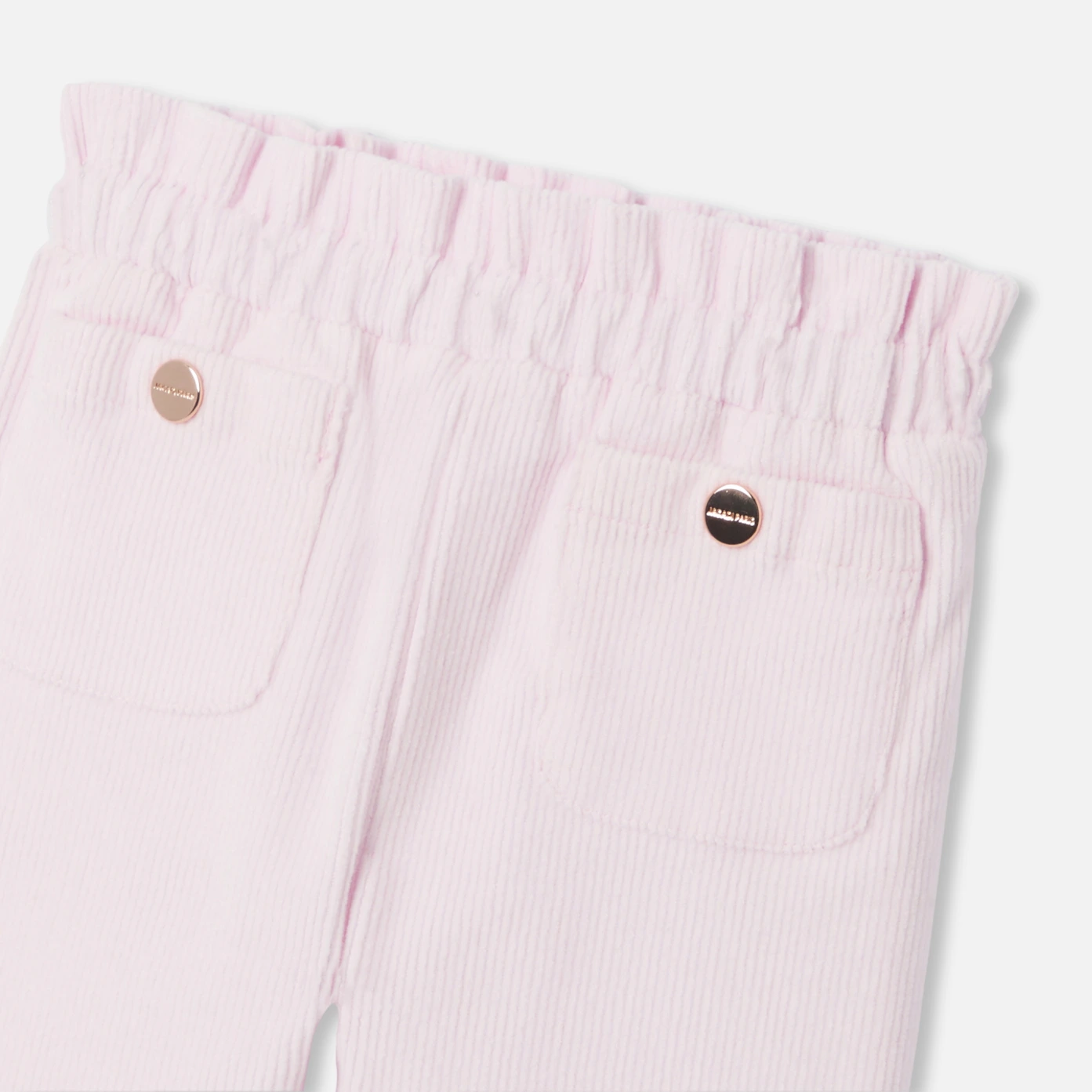這款寶寶燈籠褲採用細條絨材質,花苞褲剪裁展現可愛輪廓。內裡為棉紗布,穿著舒適,且方便穿脫。口袋裝飾有金色鉚釘細節,適合搭配Liberty印花襯衫和皮革短靴,打造時尚復古造型。