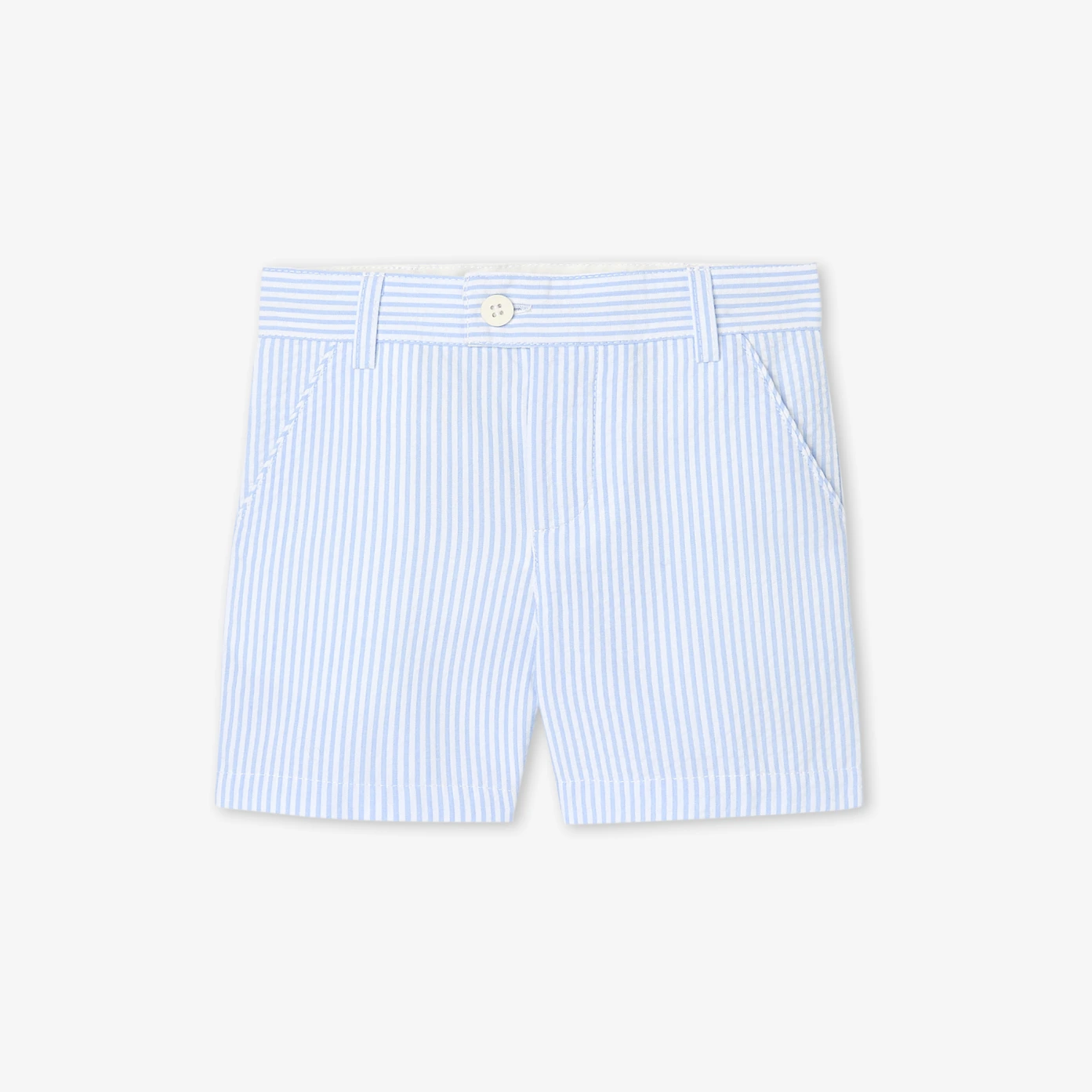 這款男寶寶短褲以學院風幾何剪裁打造時尚造型,採用輕盈透氣的泡泡紗布料,完美適應夏季需求。無論是與同系列外套及 T 恤搭配出席正式場合,還是搭配 Polo 衫展現日常活力,都能輕鬆駕馭。