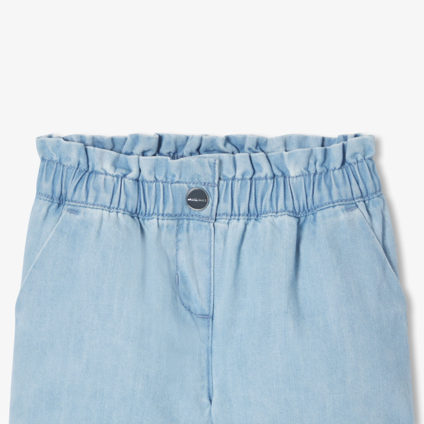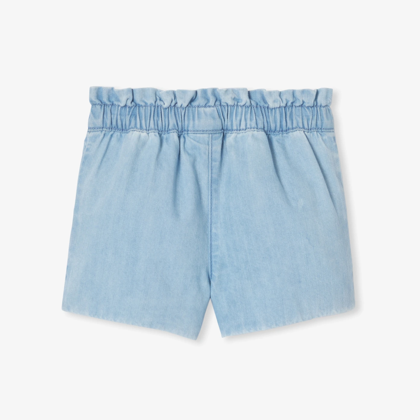 這款女寶寶短褲以輕盈丹寧布製成,搭配純棉薄紗內襯,透氣舒適不悶熱。獨特的鬆緊腰頭設計,讓寶貝穿著自在且更具時尚感。清新的水洗色調,無論搭配 T 恤或襯衫,都能輕鬆打造俏皮又優雅的夏日造型。