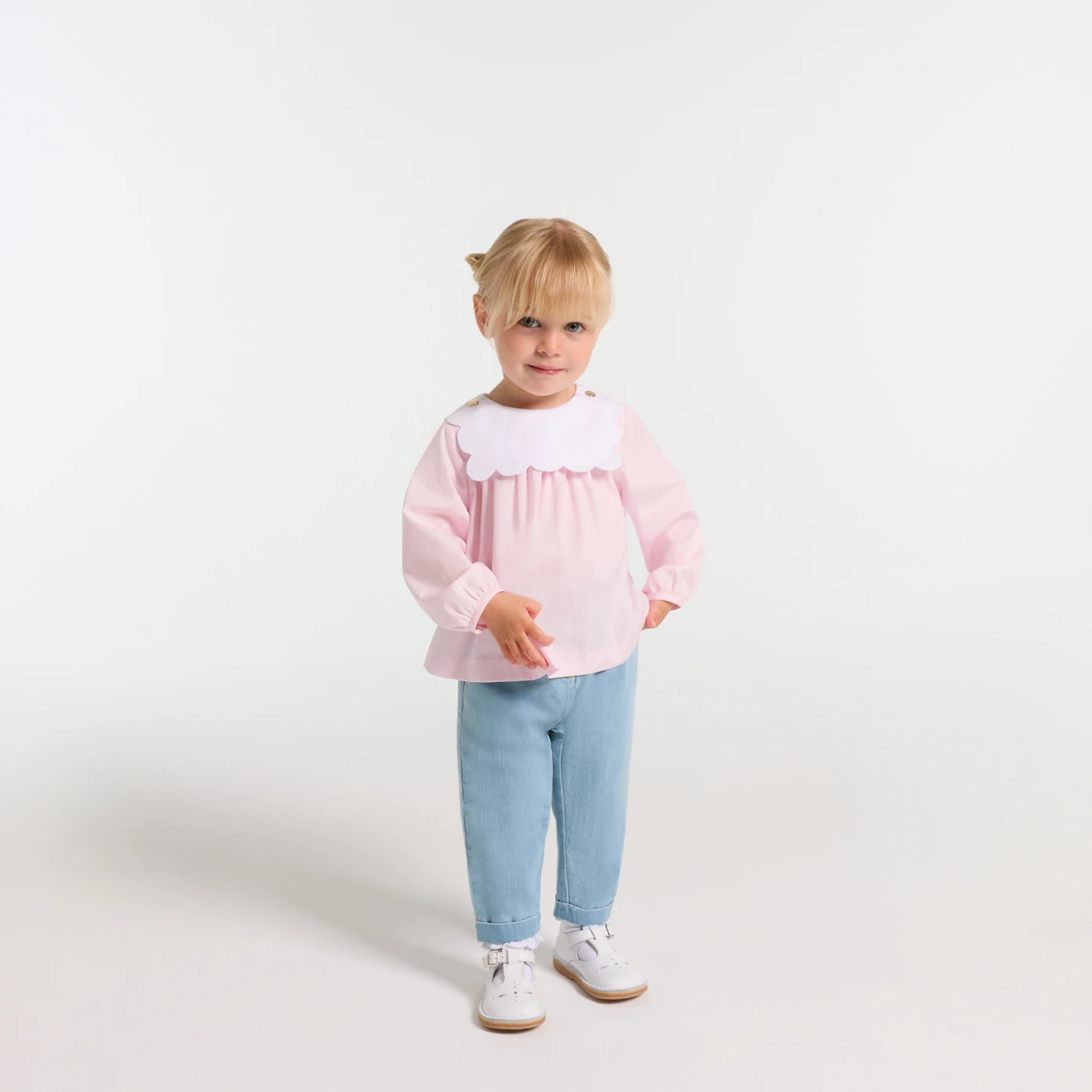 這款經典單品以柔軟刷仿古感丹寧布打造,為女寶寶秋季衣櫥注入休閒法式風格。以可愛的紙袋腰設計搭配錐形褲版型,這款牛仔褲不僅實穿好搭,也能輕鬆與T恤、襯衫或運動衫組成多變造型,是百搭的每日單品。