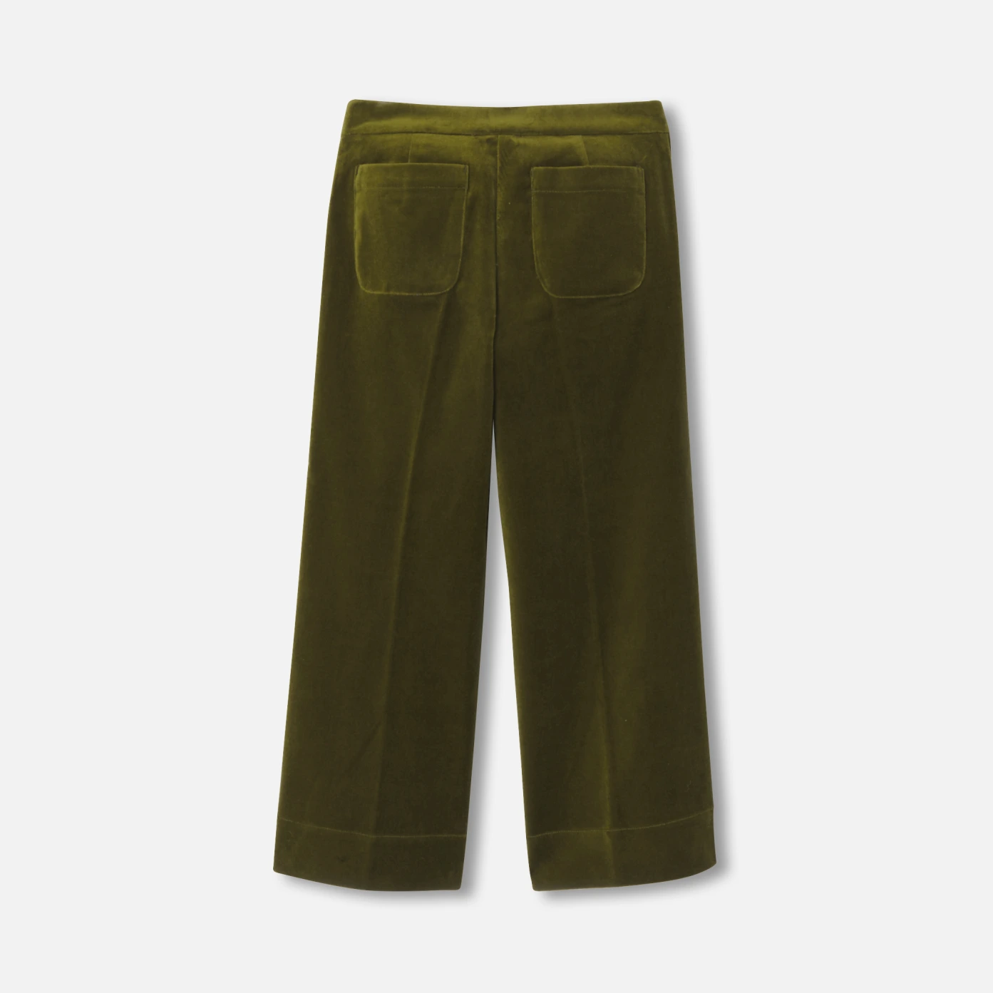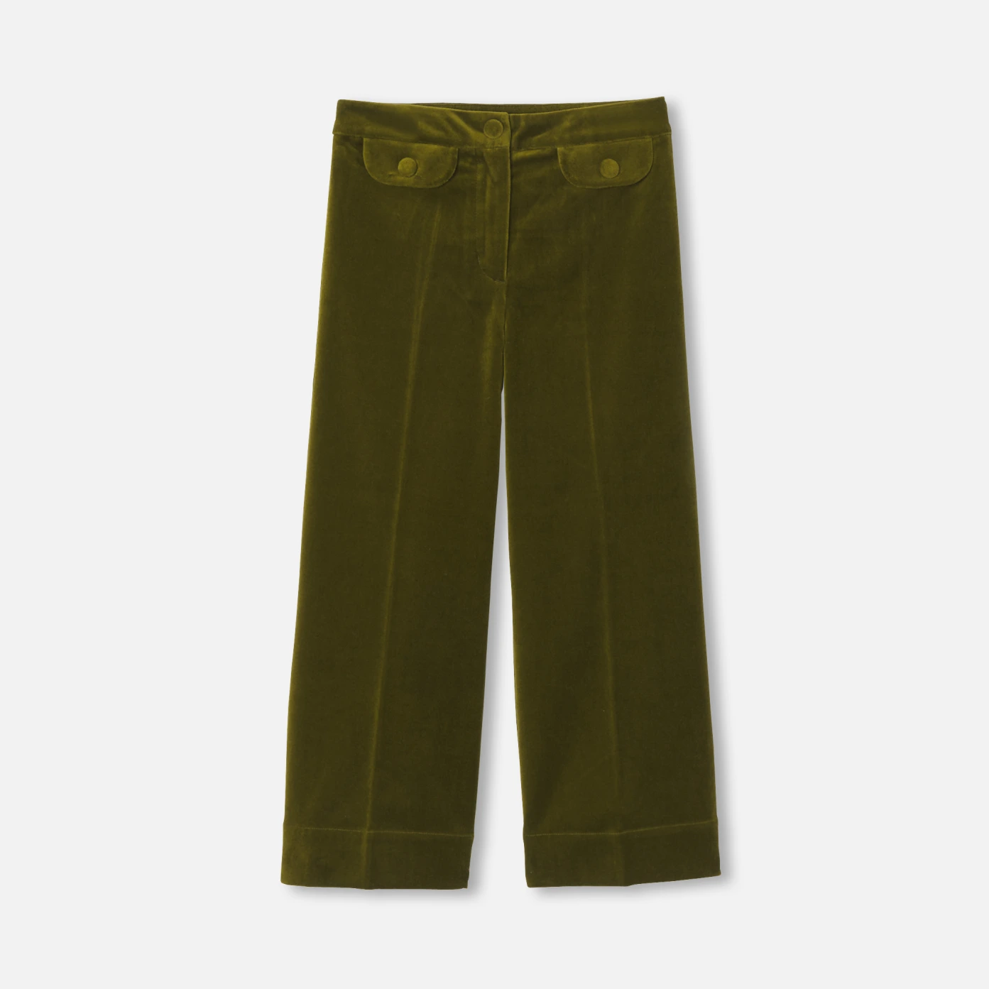 復古時尚又舒適,這款寬褲是小女孩衣櫥中的必備單品。採用光滑的彈性細條絨製成,褲身的褶皺、褲腳的翻邊和翻蓋口袋為此款設計增添立體感,呈現出非常現代的色彩。秋冬季搭配荷葉邊毛衣和絎縫外套,即可打造時尚造型。