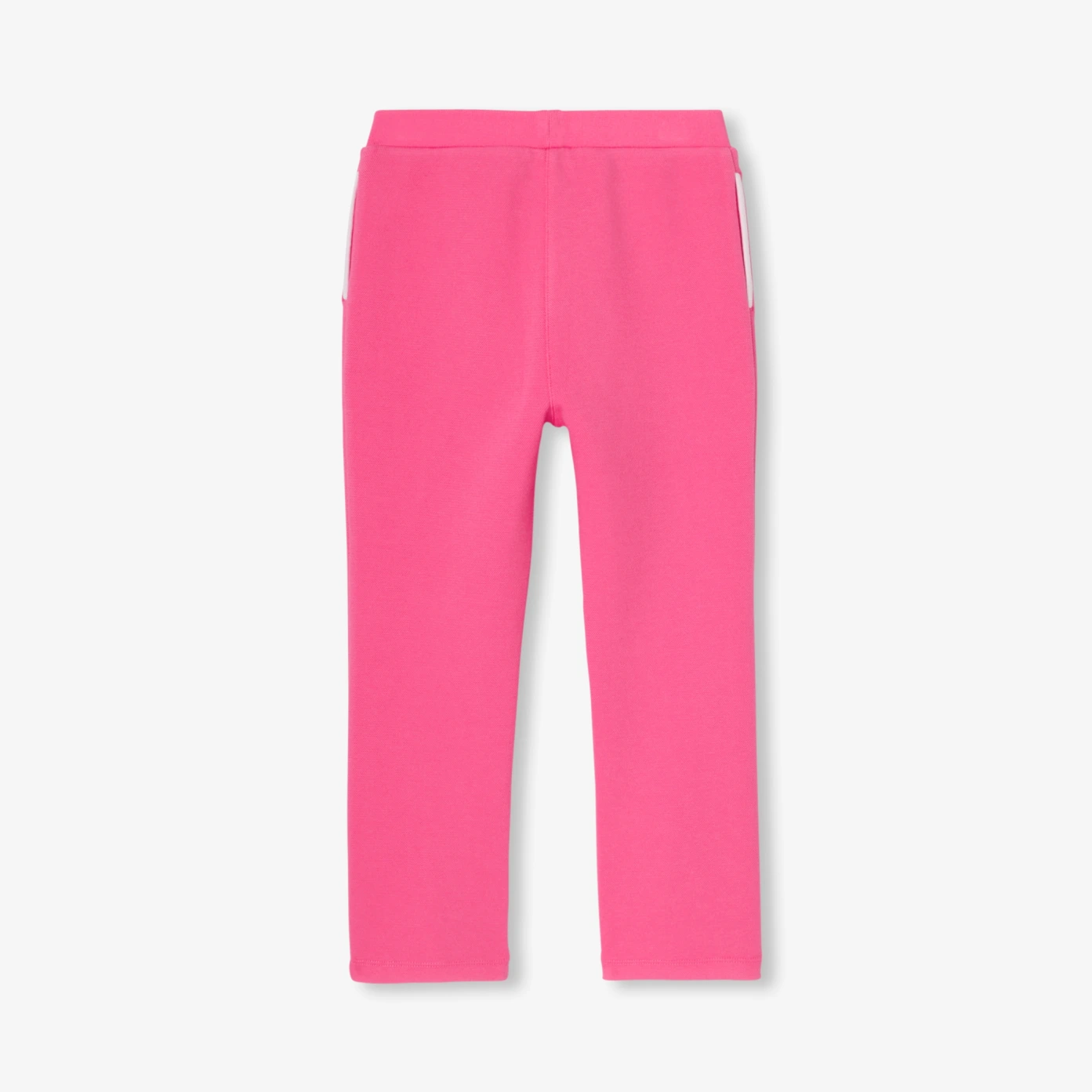本季再度回歸的大女童休閒風長褲,展現不可或缺的必備地位。採用略微喇叭褲腳設計,雙面珠地織法質地柔軟,搭配運動衫與運動鞋,營造運動時尚的都會造型,讓您的小公主愛不釋手。