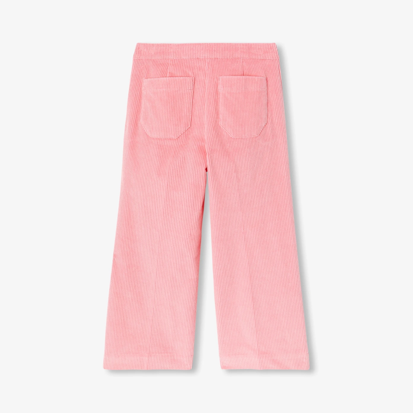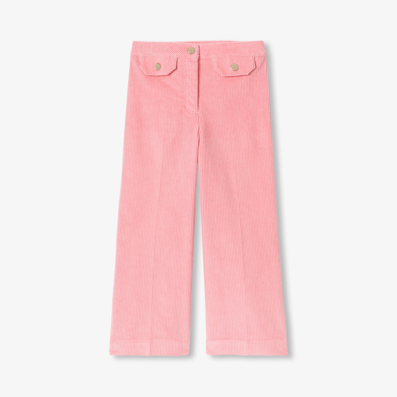 這款女童寬版長褲選用柔軟舒適的有機棉燈芯絨材質,褲腳線條筆直寬鬆,搭配打褶與翻蓋口袋設計,巧妙融合復古韻味與現代巴黎風格。可搭配針織上衣與運動鞋,打造時髦的日常穿搭。