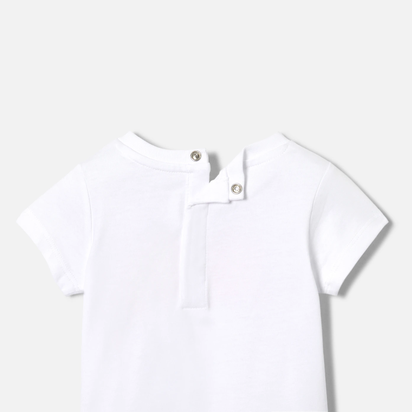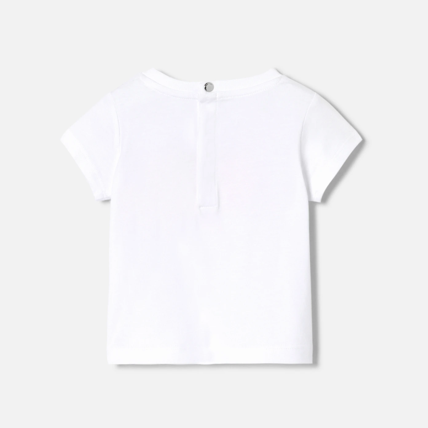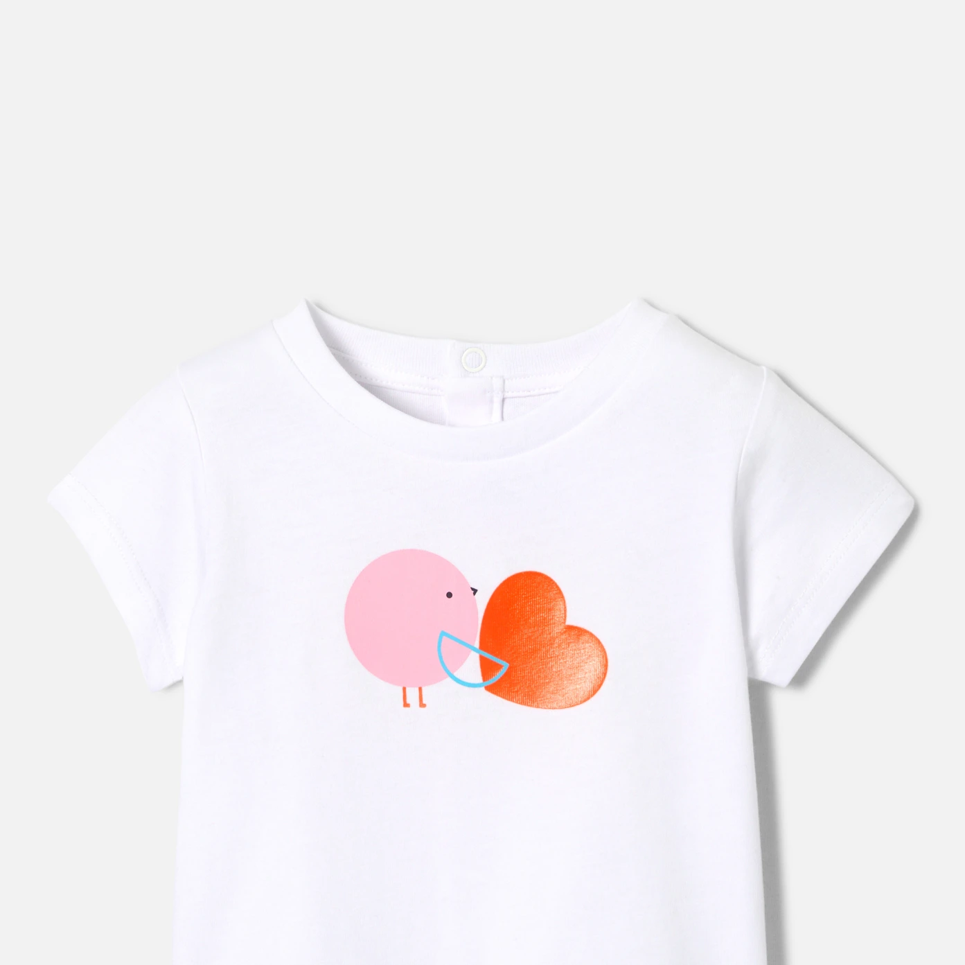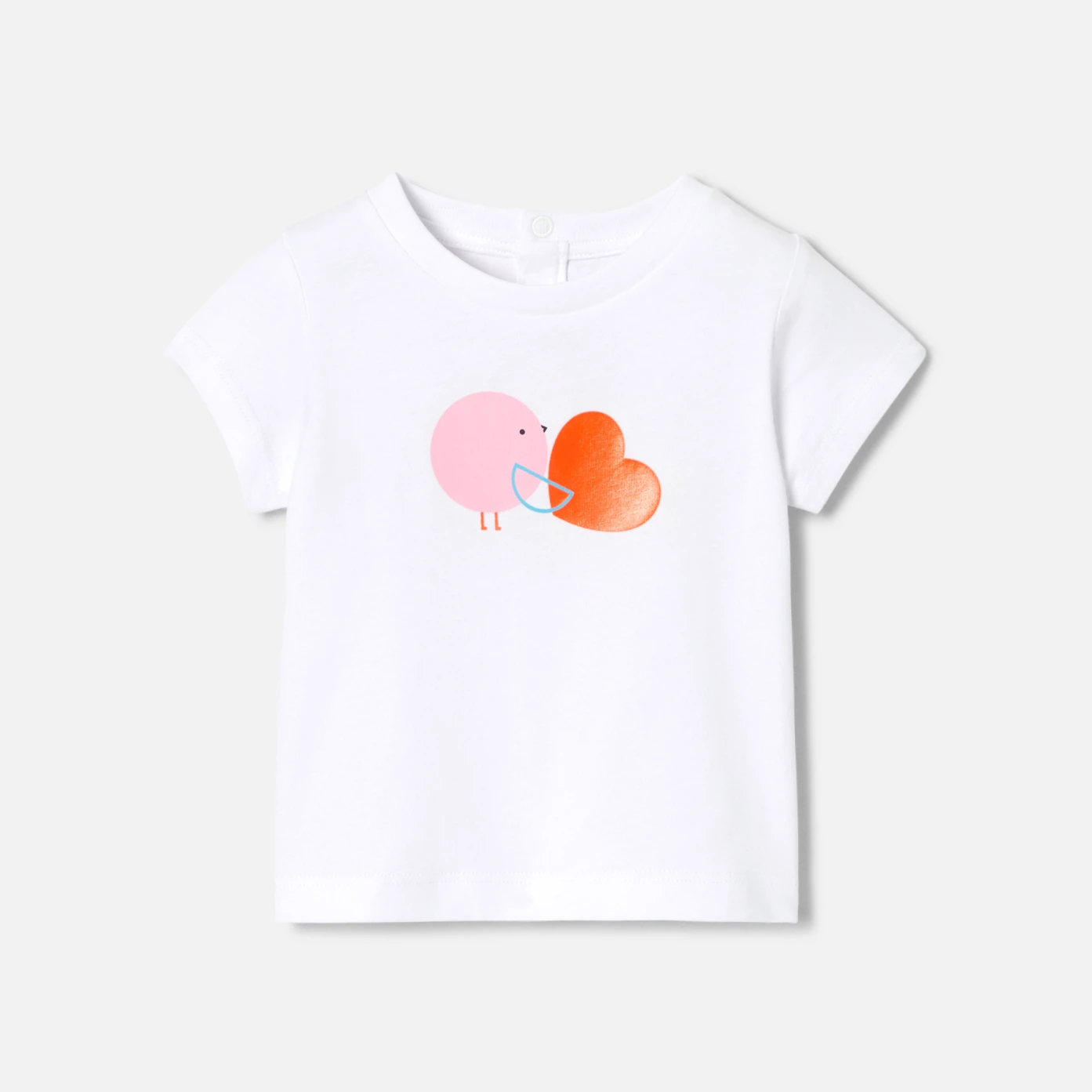 這款女童 T 恤是衣櫥經典之作,帶有溫柔圖案,從春天開始就適合作為小女孩的穿搭必備款。採用有機棉製成,易於穿脫,適合搭配牛仔褲和夏季短褲。