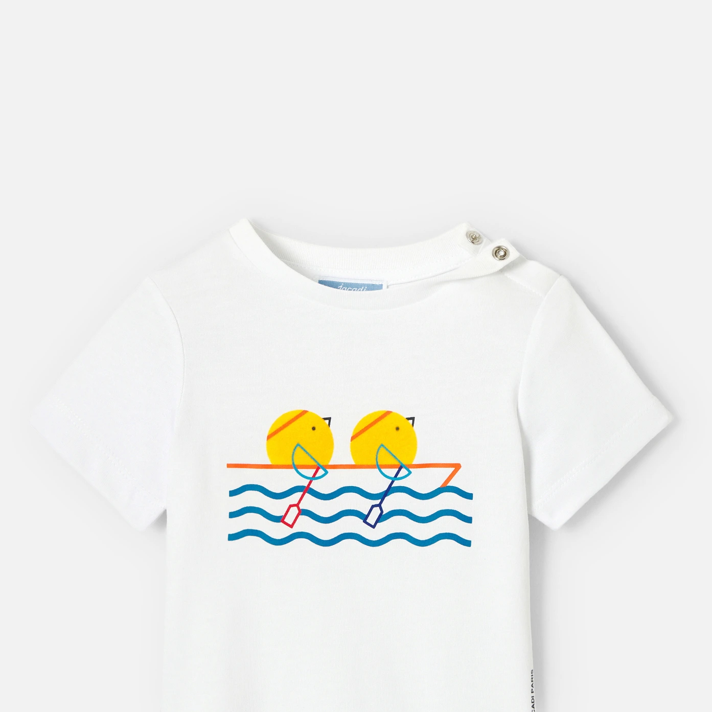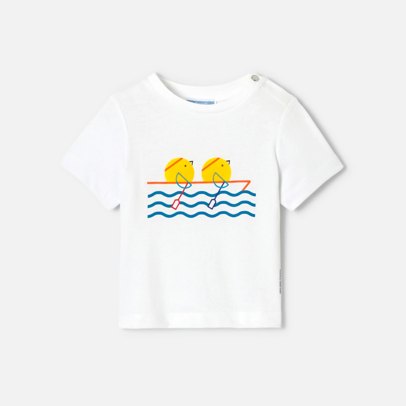 這款男童 T 恤預告著夏日運動季節的到來。採用柔軟、輕盈的平紋布製成,可愛的划船小雞的俏皮印花將為日常造型增添亮點。