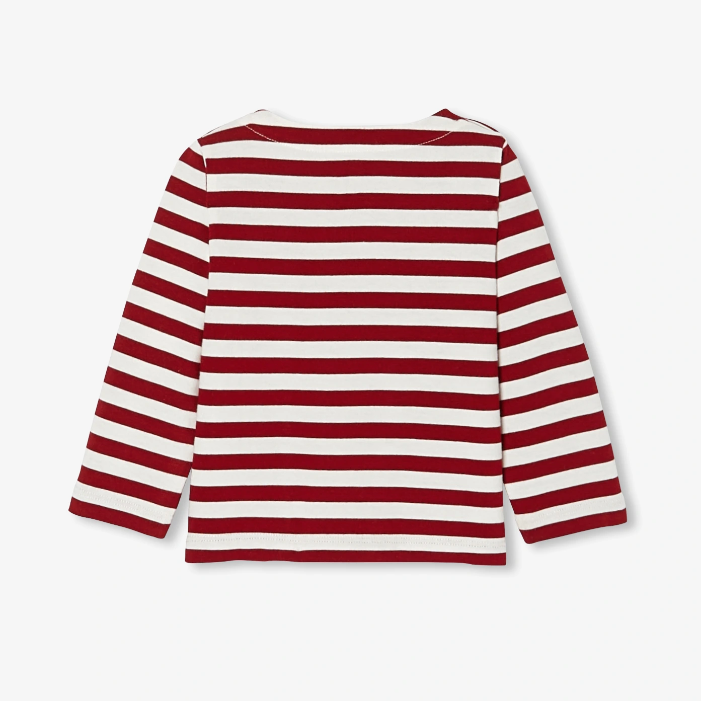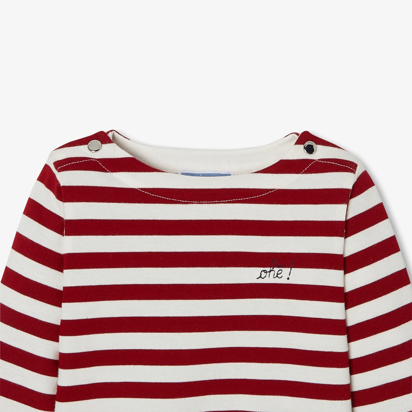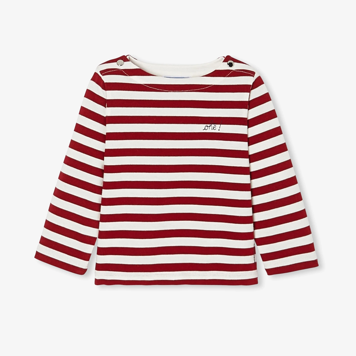 經典不退流行的水手條紋是每位小男孩的必備單品之一。這款百搭的上衣以有機棉製成,提供海軍藍和紅色做選擇,胸前的「Ohé」刺繡為造型增添活力。搭配捲邊牛仔褲和開襟毛衣,展現濃厚的都市海邊風格。