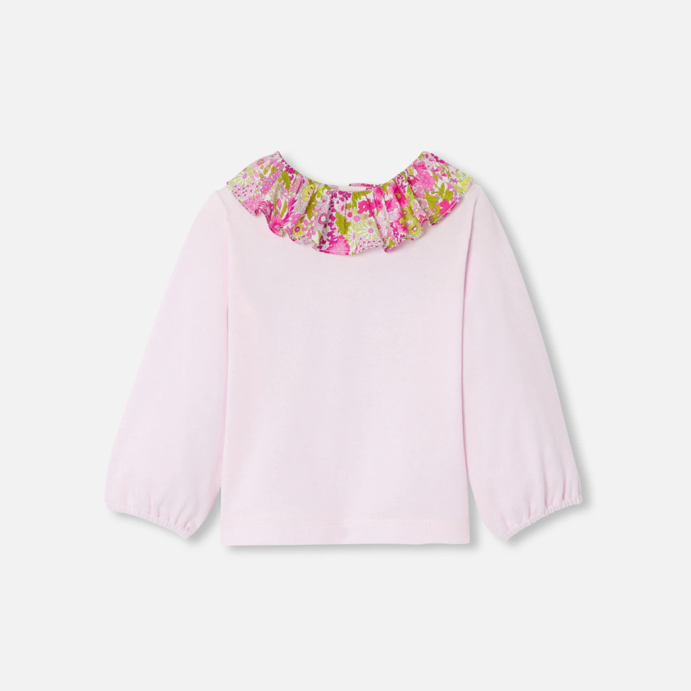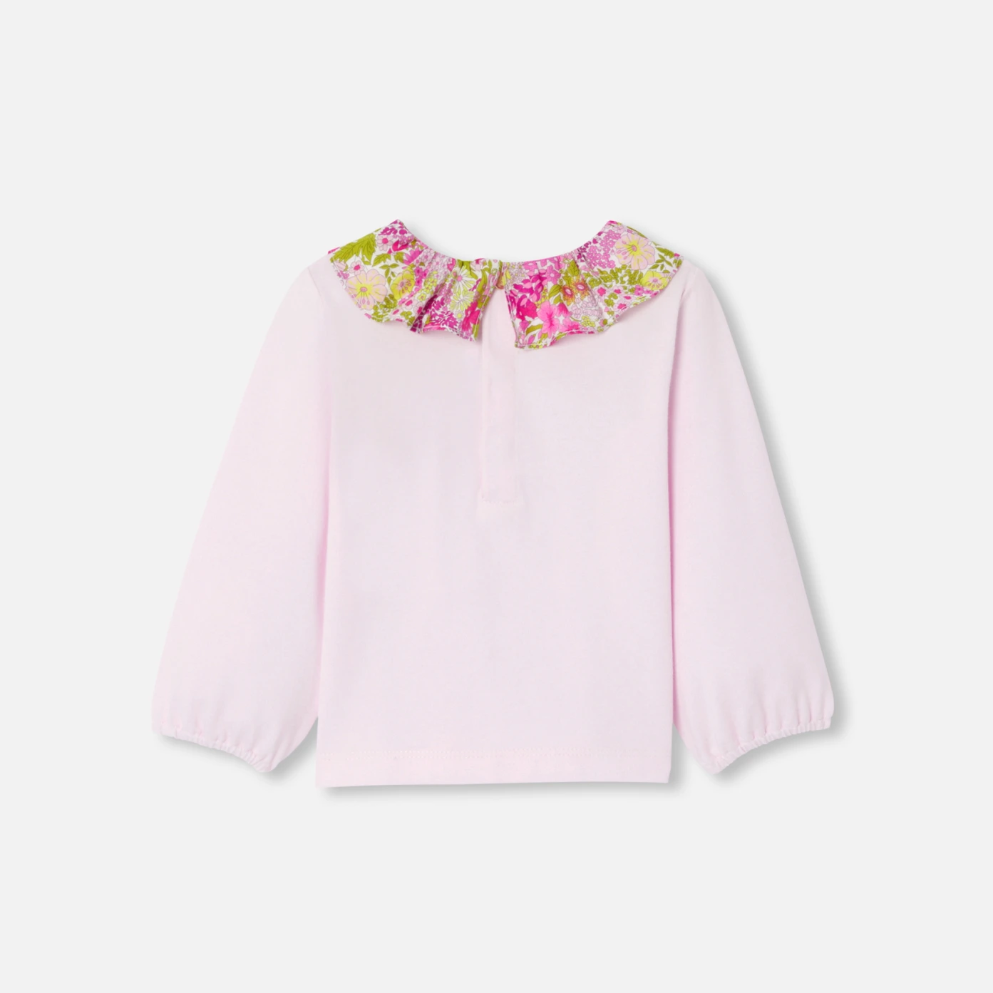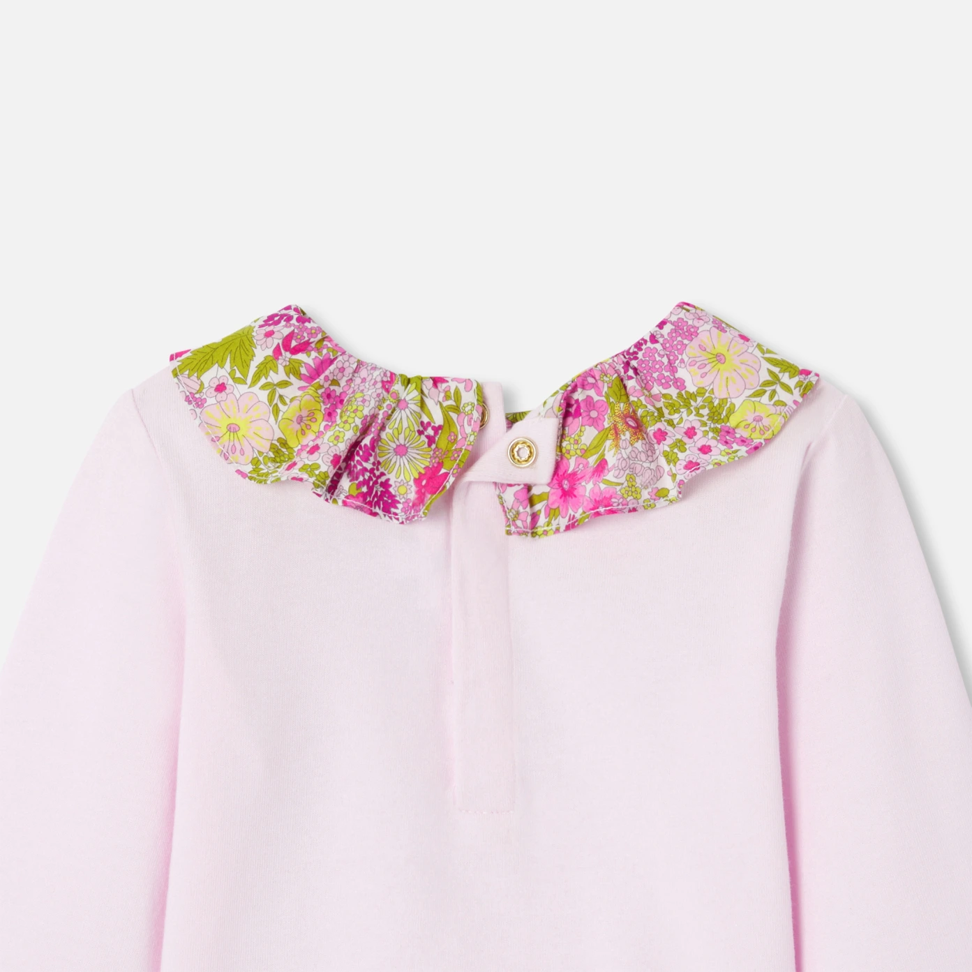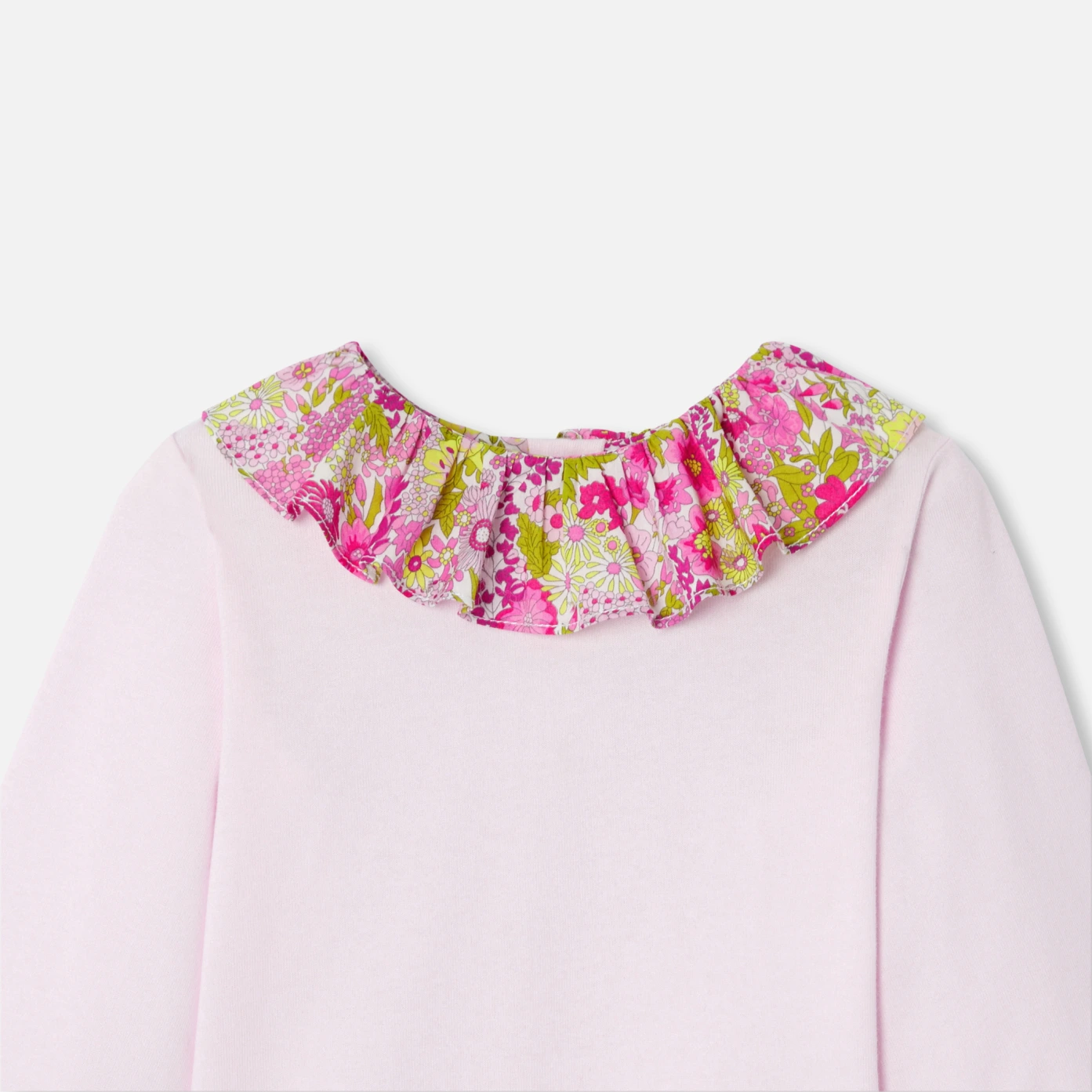 這款小女童長袖T恤是冬季的經典單品,這次特別搭配了Liberty印花領片,柔軟舒適,並且後開扣設計讓穿脫更加方便。可搭配燈芯絨褲或背心裙,呈現花卉圖案和繽紛色彩的完美搭配。