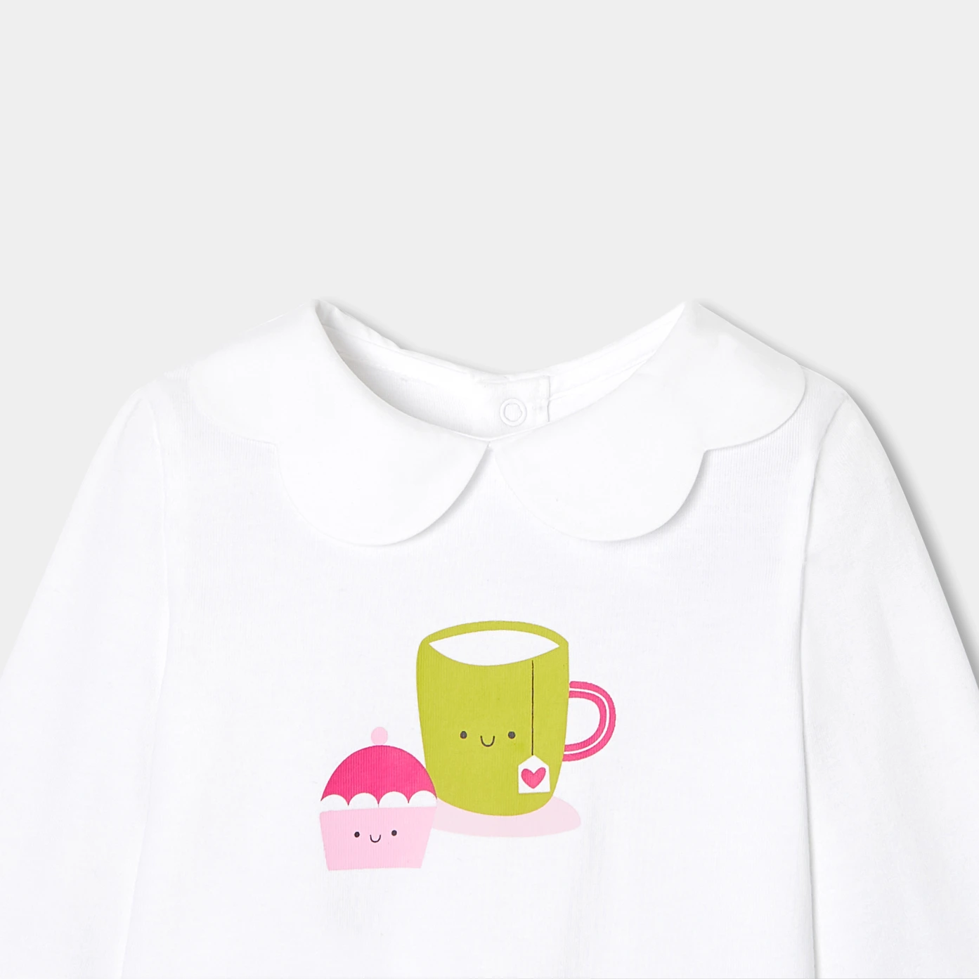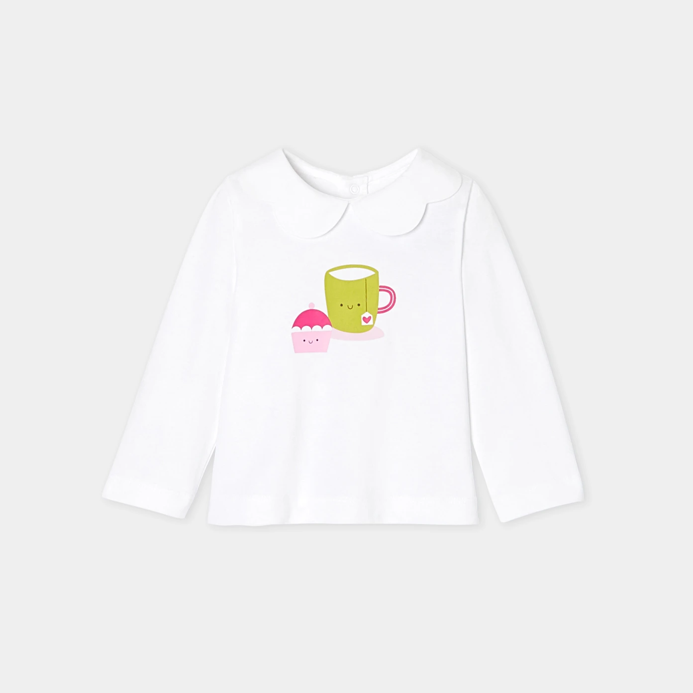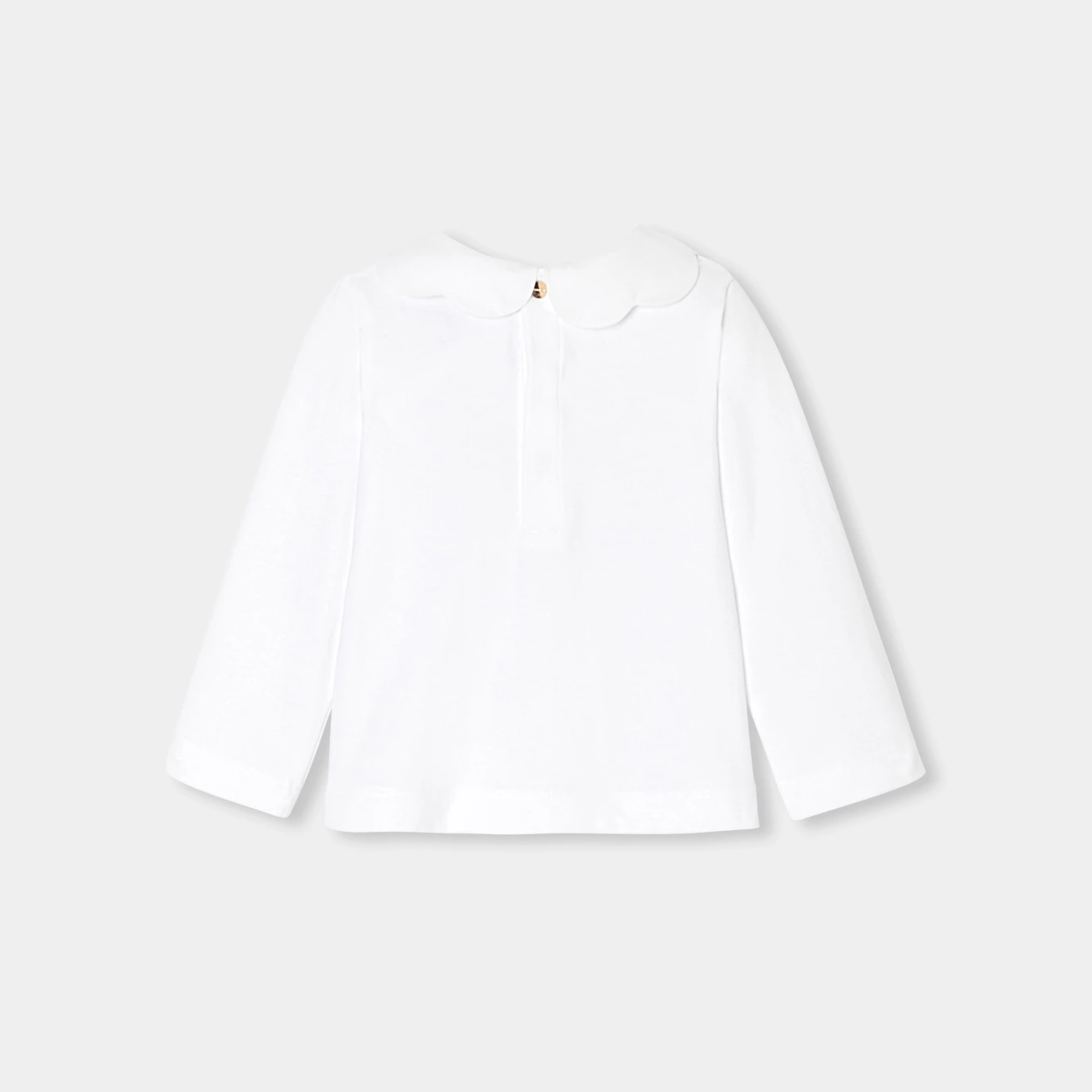 這款小女童長袖T恤讓秋季既時尚又舒適。採用有機棉製成,搭配扇形花邊領口與可愛圖案,日常穿搭可搭配燈芯絨短褲與短靴,展現出迷人的風格。
