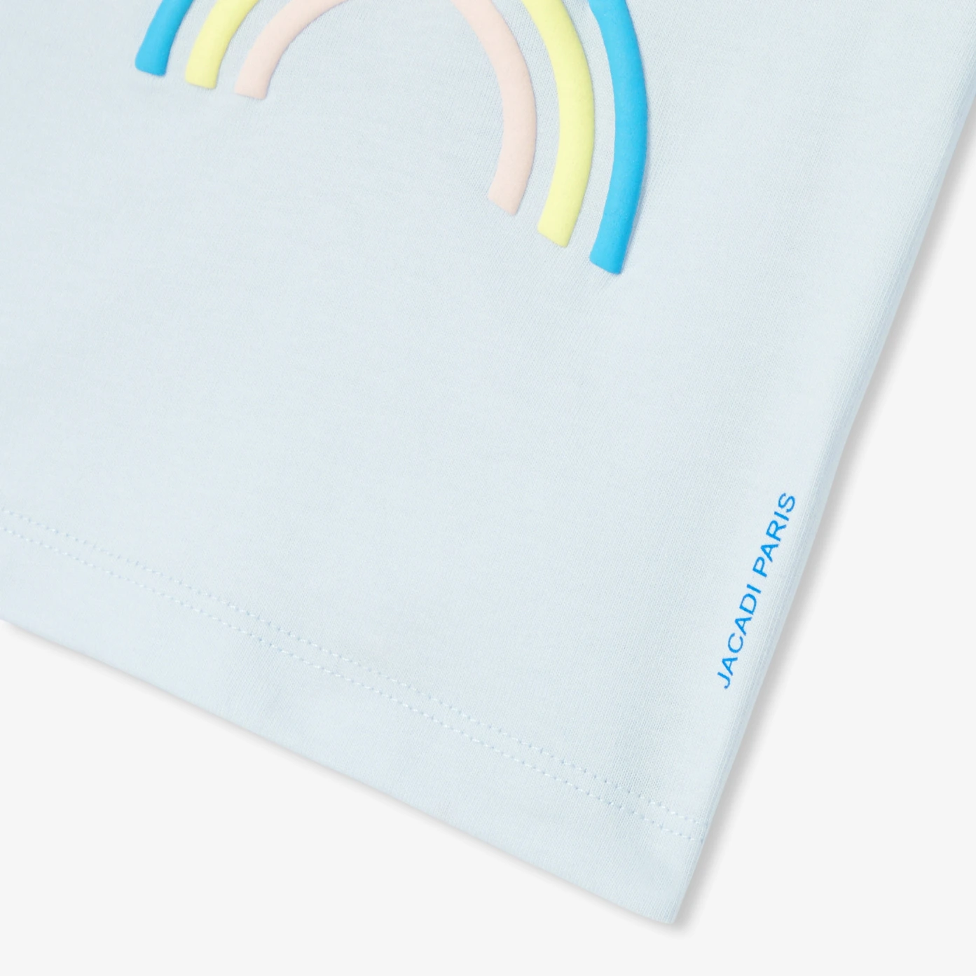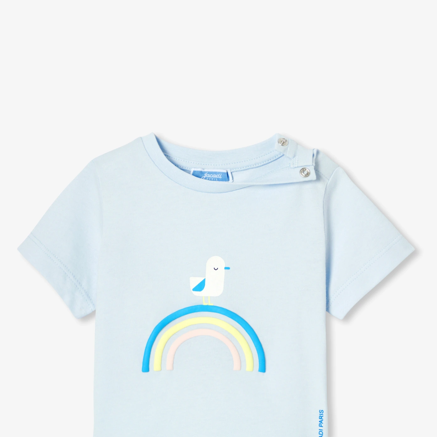 以明亮藍色有機棉製成,印有彩虹與海鷗圖案,這款小男童T恤預告了繽紛幾何的季節來臨。簡約易搭,無論是搭配牛仔短褲或圖案短褲,都能陪伴您的小男童度過所有夏日活動。