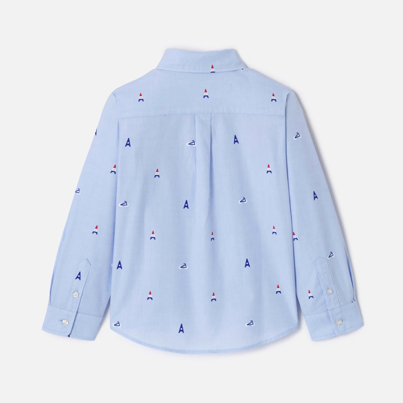 這款男童襯衫以巴黎最著名的地標圖案作為設計亮點,展現濃濃的法式風情。採用柔軟舒適的有機牛津棉製成,適合搭配休閒長褲與運動鞋,輕鬆打造優雅又隨性的巴黎童裝風格穿搭。