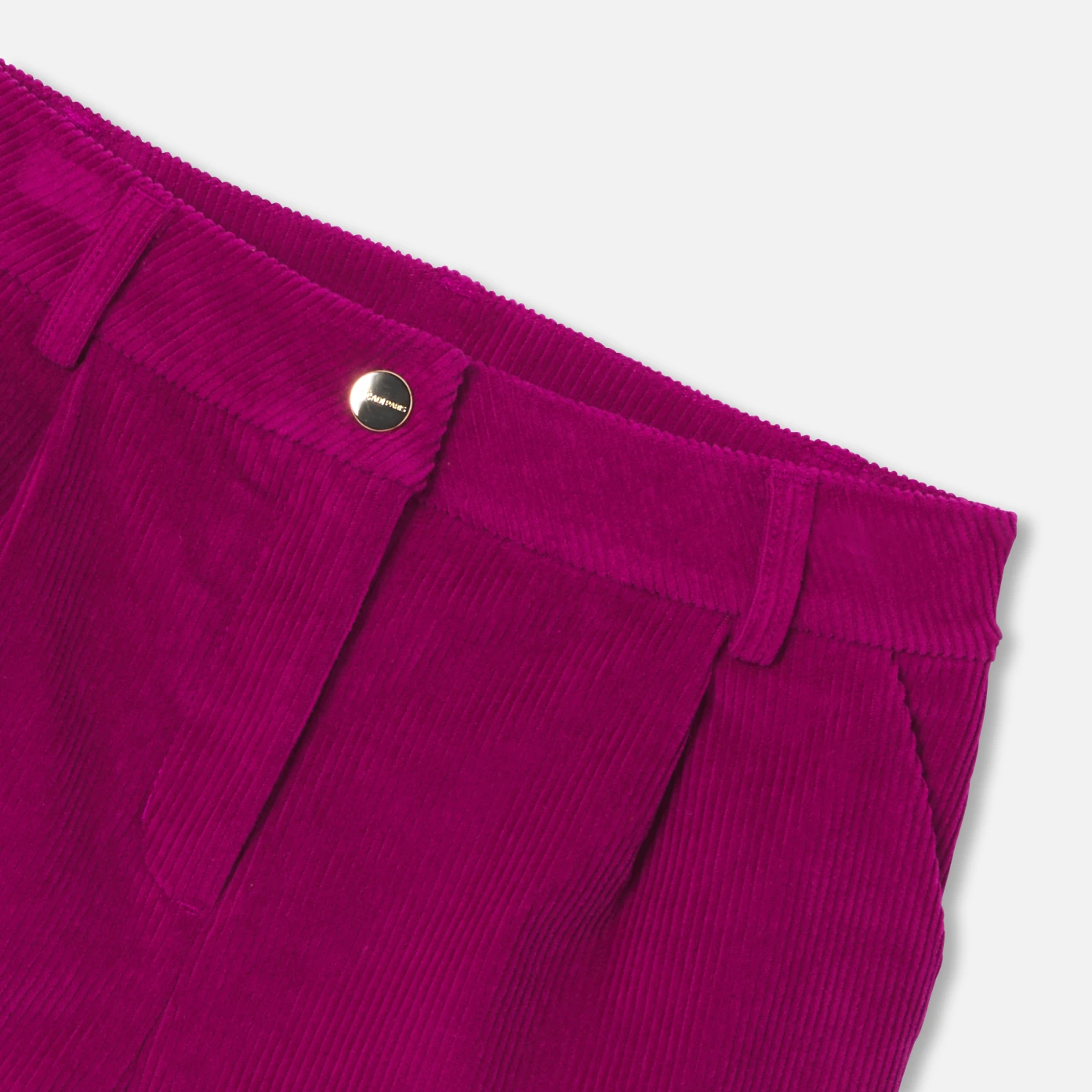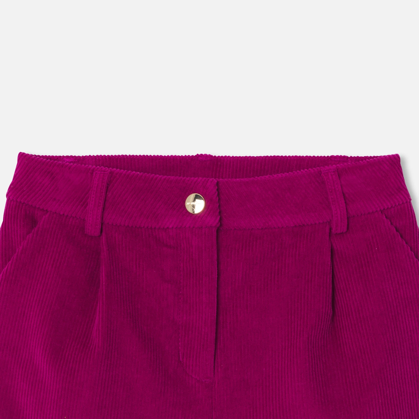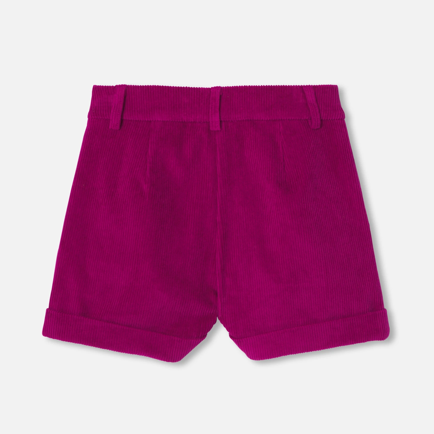 燈芯絨材質重新回歸秋冬衣櫥,這款女孩短褲呈現出優雅且極簡的風格。前褶與翻邊設計增添立體感,可搭配襯衫與英式大衣,營造出現代復古的輪廓。