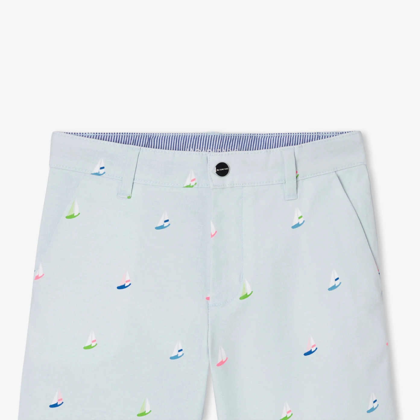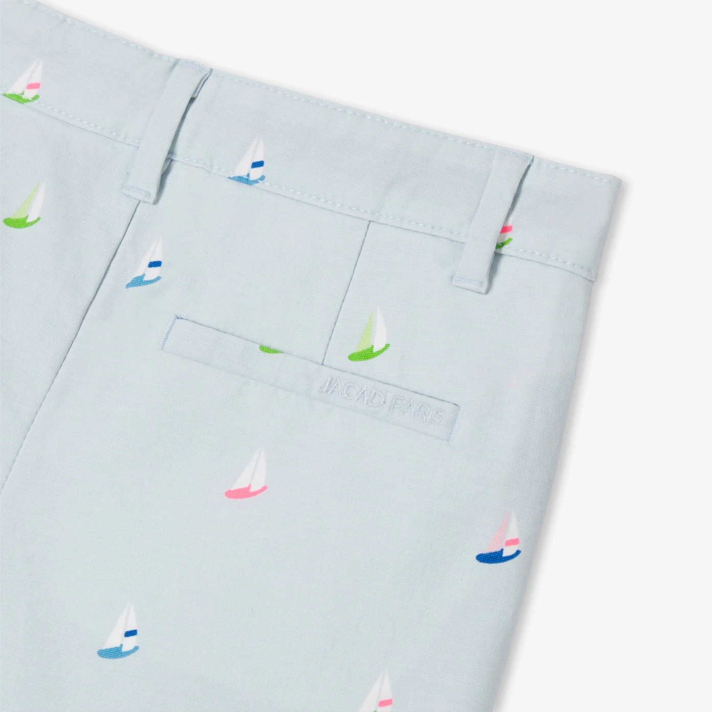 Jacadi系列帶領小男孩乘風破浪,推出這款休閒時尚短褲。採用柔軟輕盈的有機棉斜紋布,印有船隻圖案,配有義大利口袋和亮眼色彩,這款短褲搭配POLO衫與便鞋,展現完美度假風格的學院風造型。