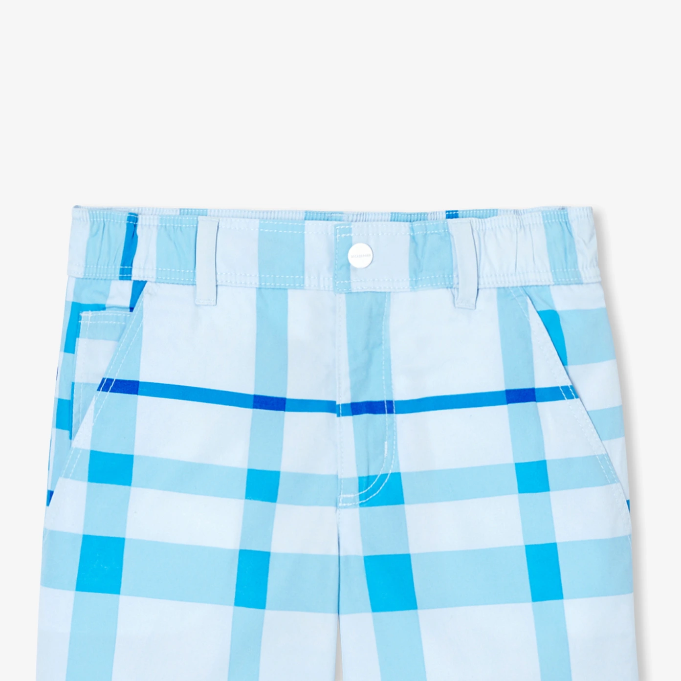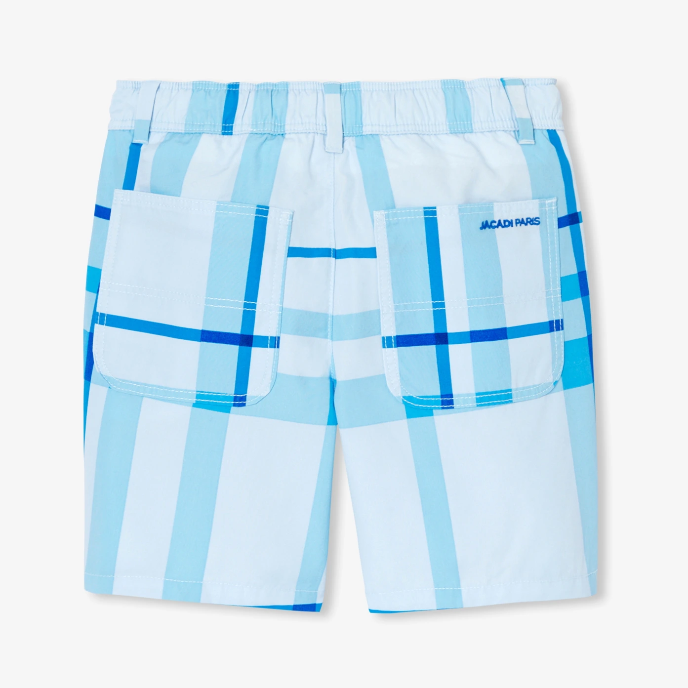 這季男童百慕達短褲採用寬格紋設計,舒適直筒剪裁,棉質斜紋布料具紙感柔軟手感。無論搭配T恤或POLO衫,在城市或度假中穿著,幾何風格展現運動時尚輪廓。