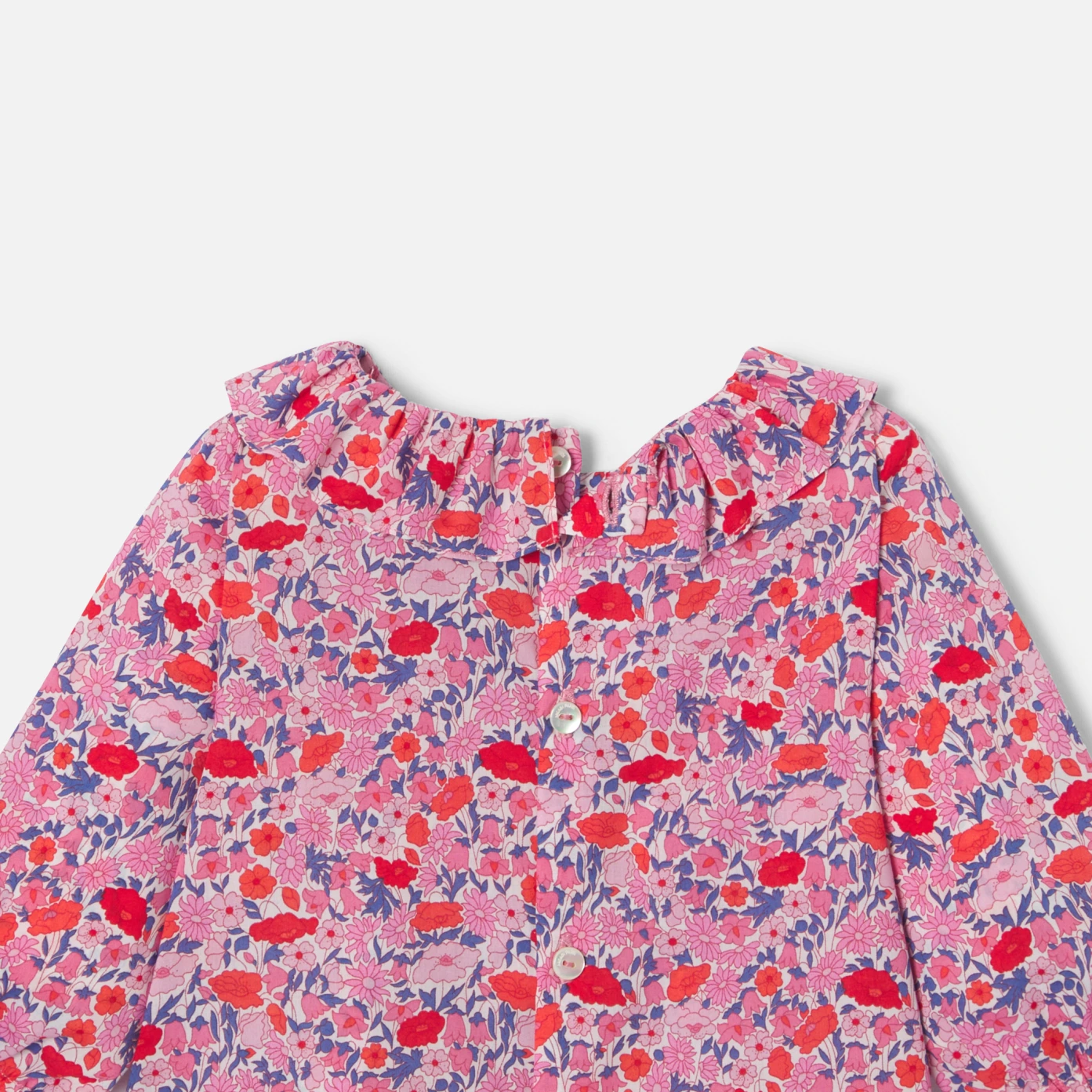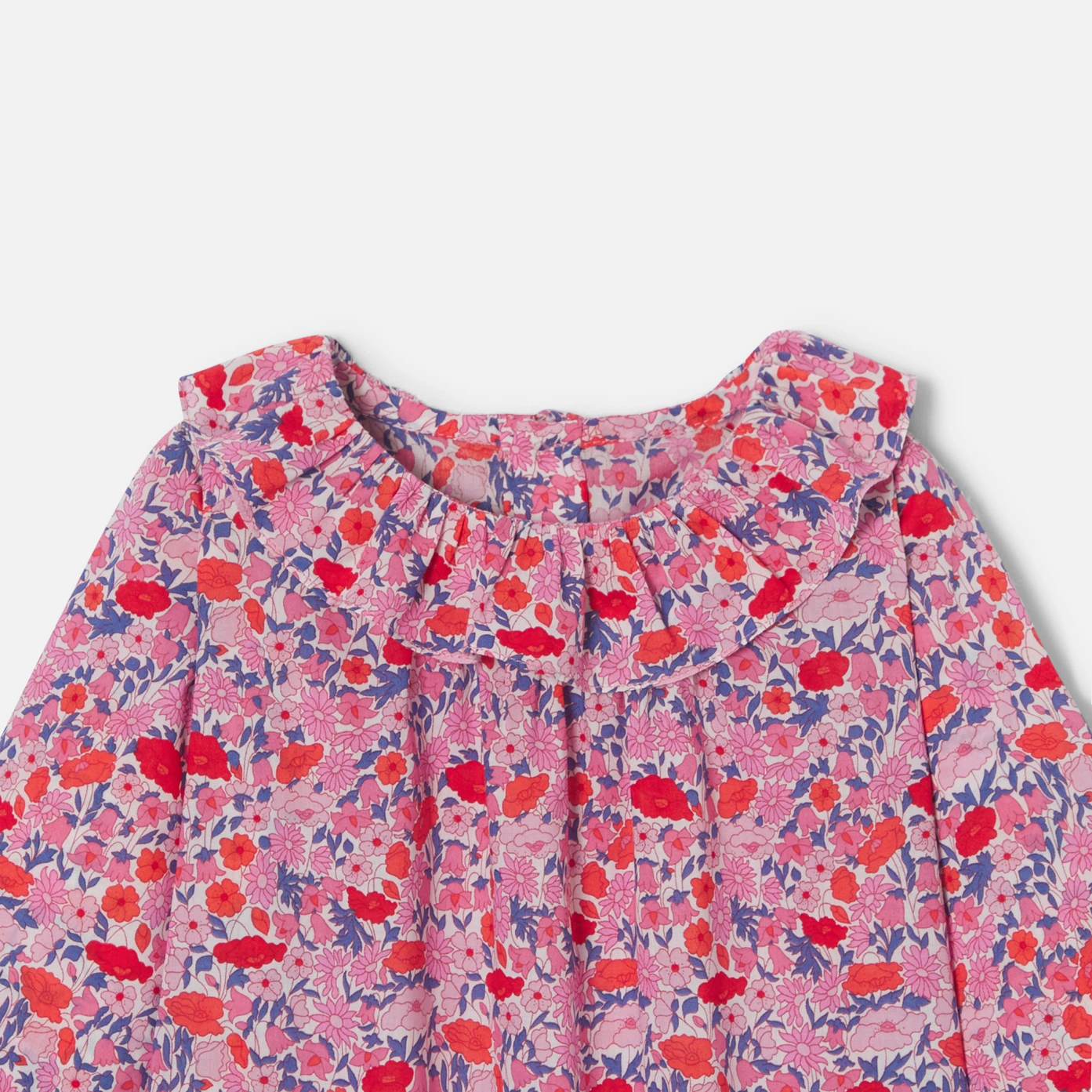 選擇這款由 Liberty 布料製成的平織上衣,打造愉悅的日常造型。舒適與優雅之間恰到好處的平衡,荷葉邊衣領和鬆緊袖口,這款單品非常適合秋日季節之初的穿搭。搭配一條緊身褲,這是一個可愛的新生創意禮物。