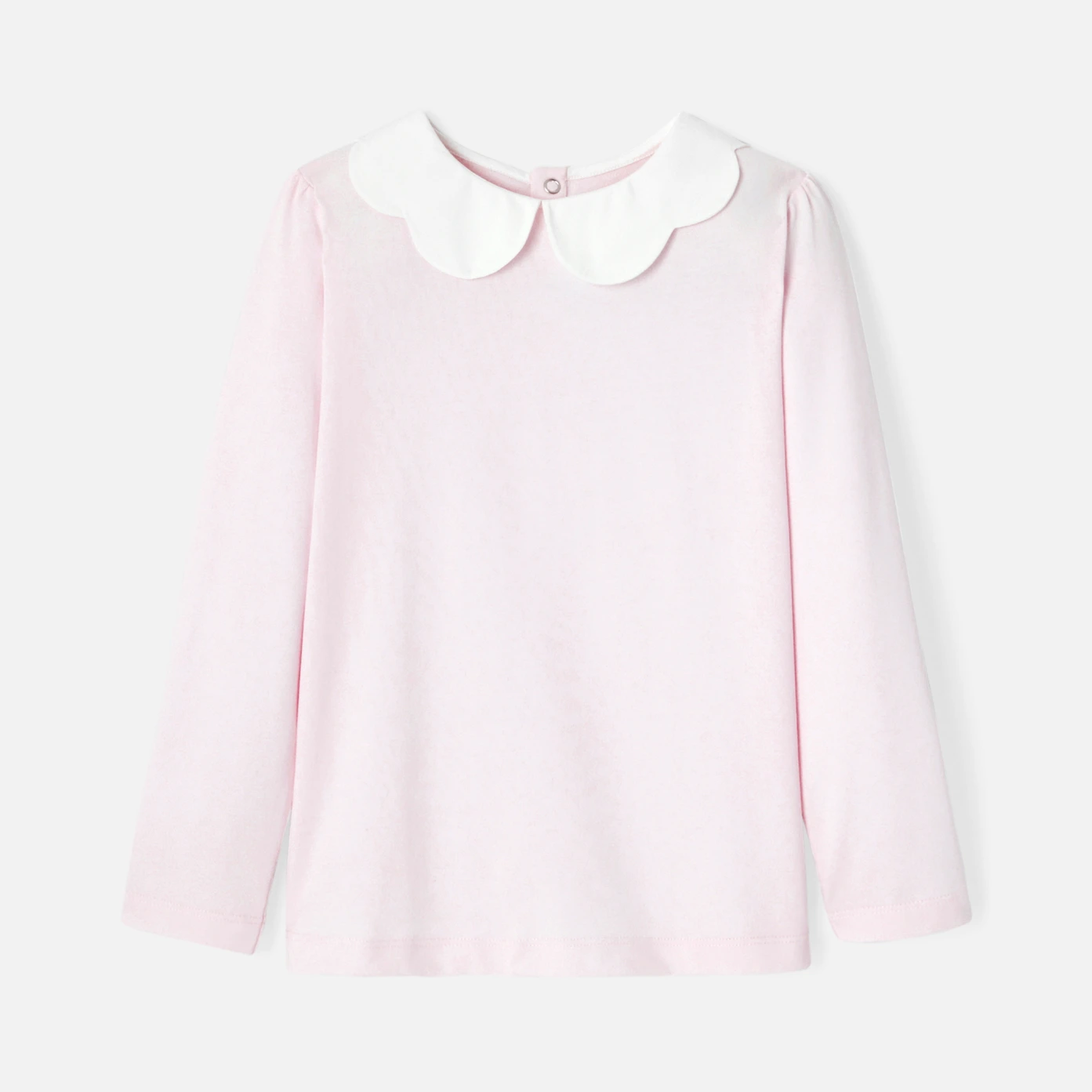 這款女孩 T 恤採用有機棉製成,適合日常的穿搭,飾有花瓣領更顯優雅氣質。 適合搭配格紋裙或喇叭褲,非常適合早秋微涼穿著。