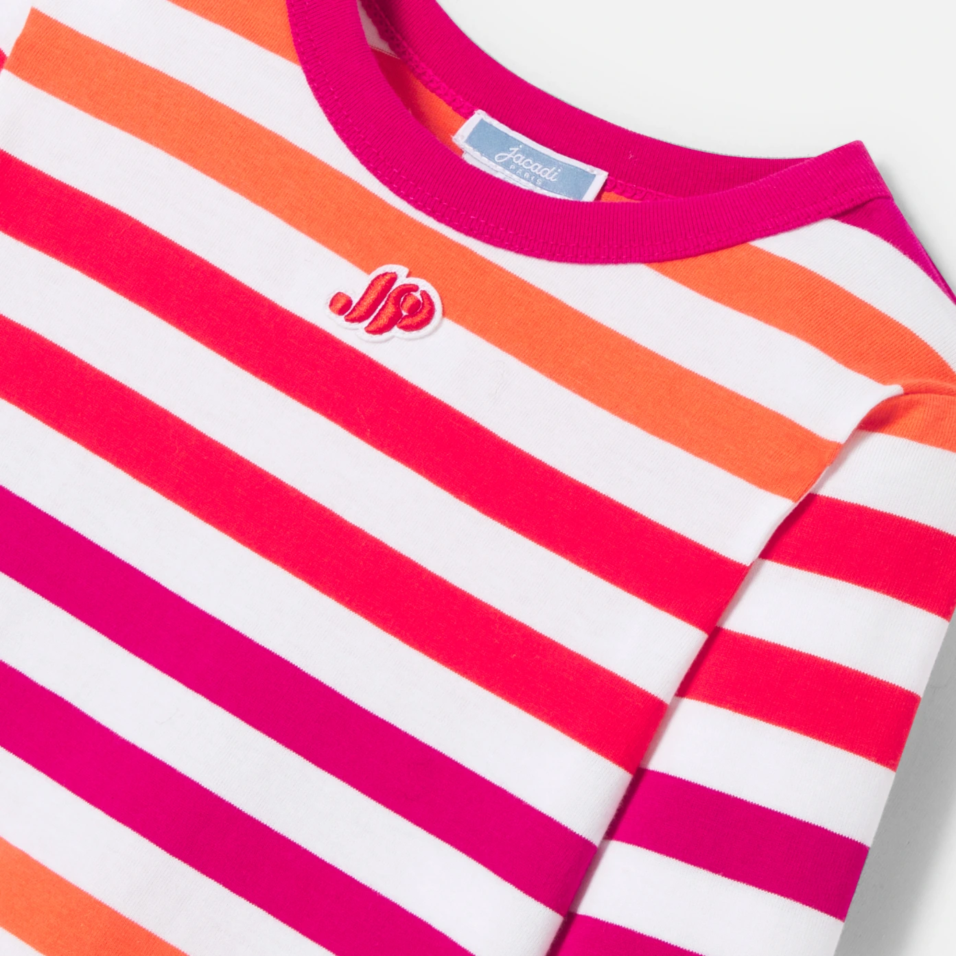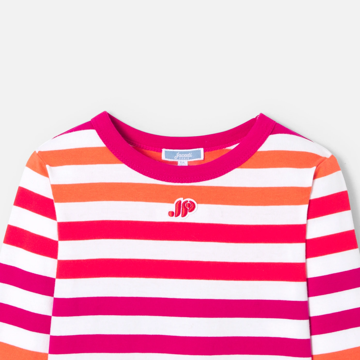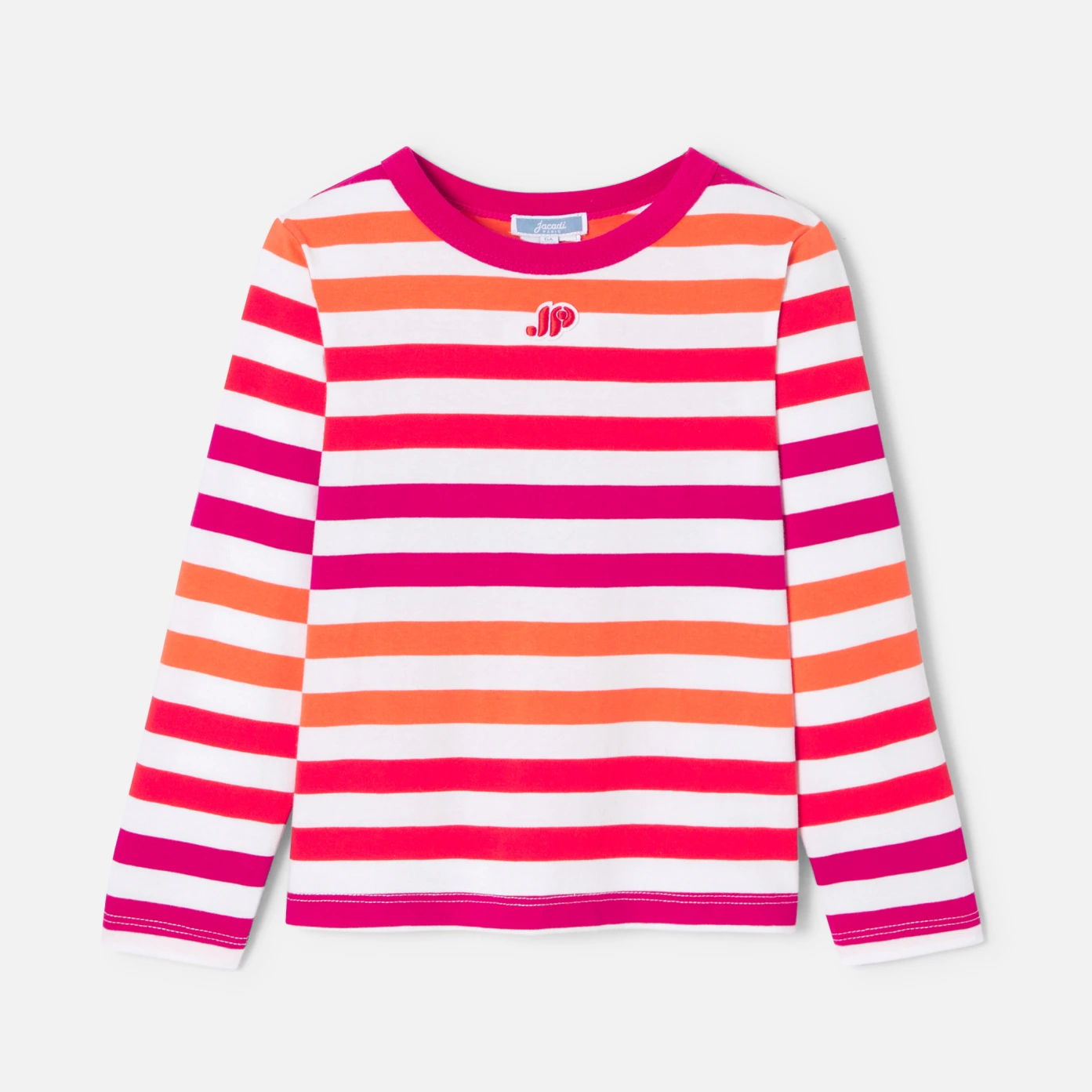 這款女孩 T 恤為春季衣櫃增添了一抹流行色彩。長袖,領口繡有 JP 徽標,這款經典條紋將舒適地陪伴您女兒的日常生活。