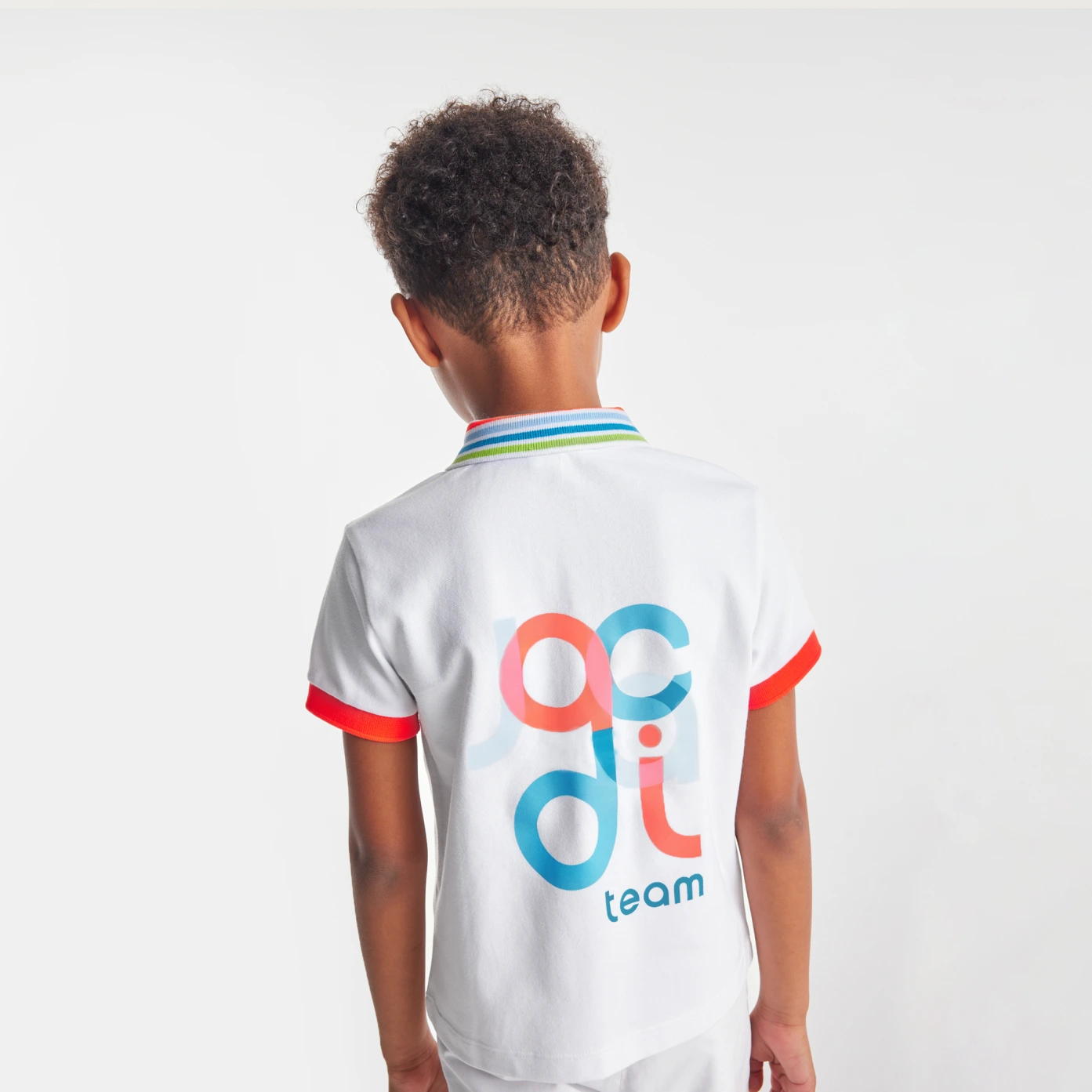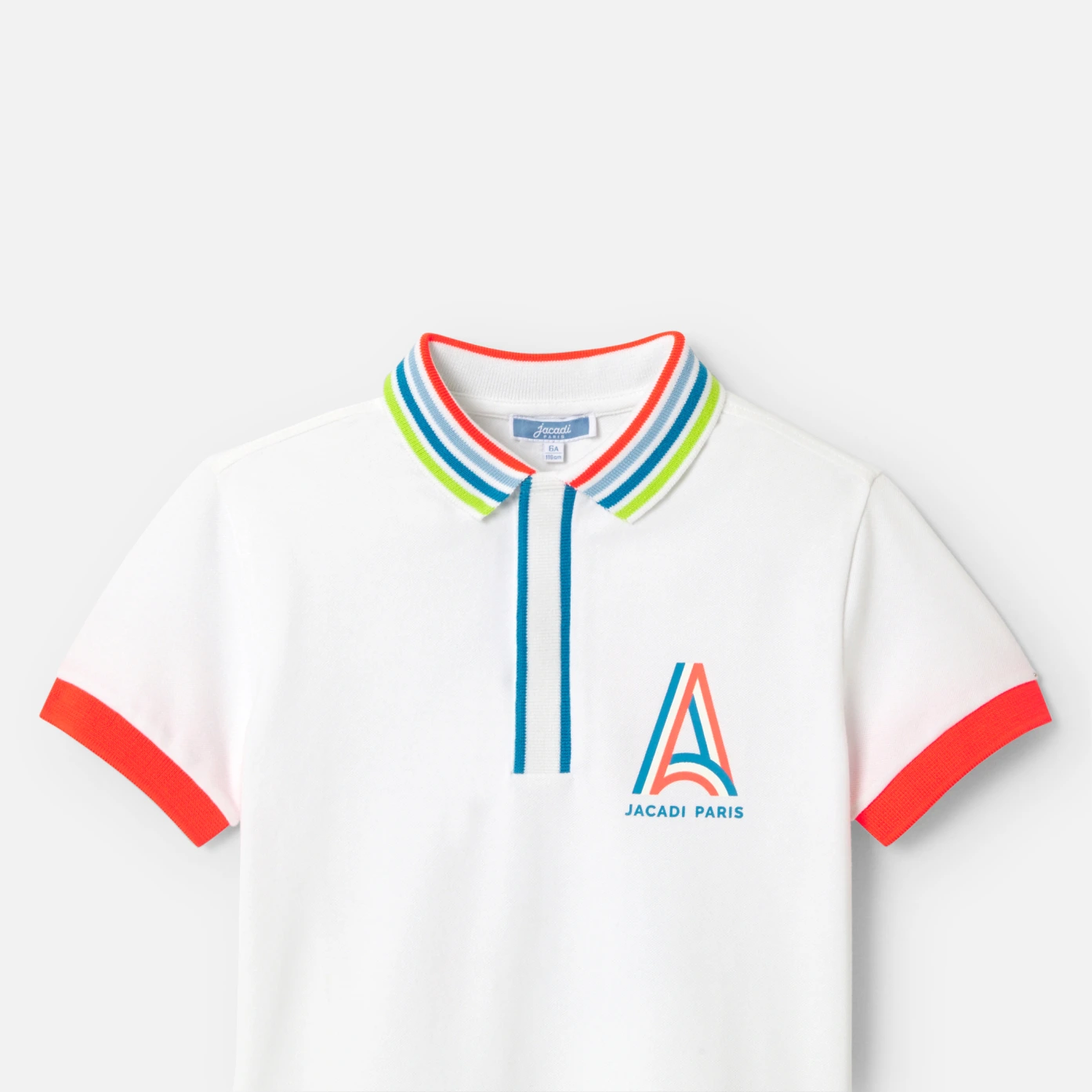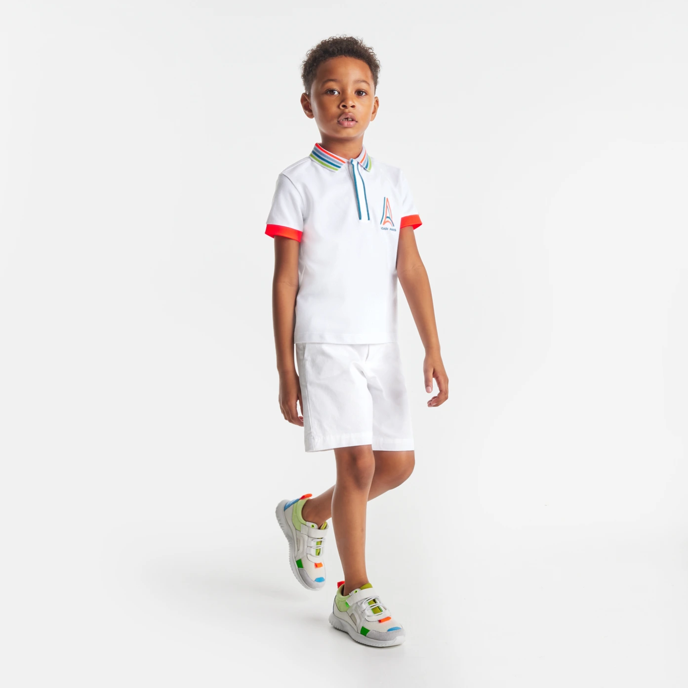 這款男孩 Polo 衫的細節感和細緻的材質將成為男孩的最愛。採用有機棉珠地布製成,條紋衣領、撞色袖口和鈕扣門襟為這款款式增色不少,搭配配套短褲和連帽外套,打造運動時尚的穿搭風格。