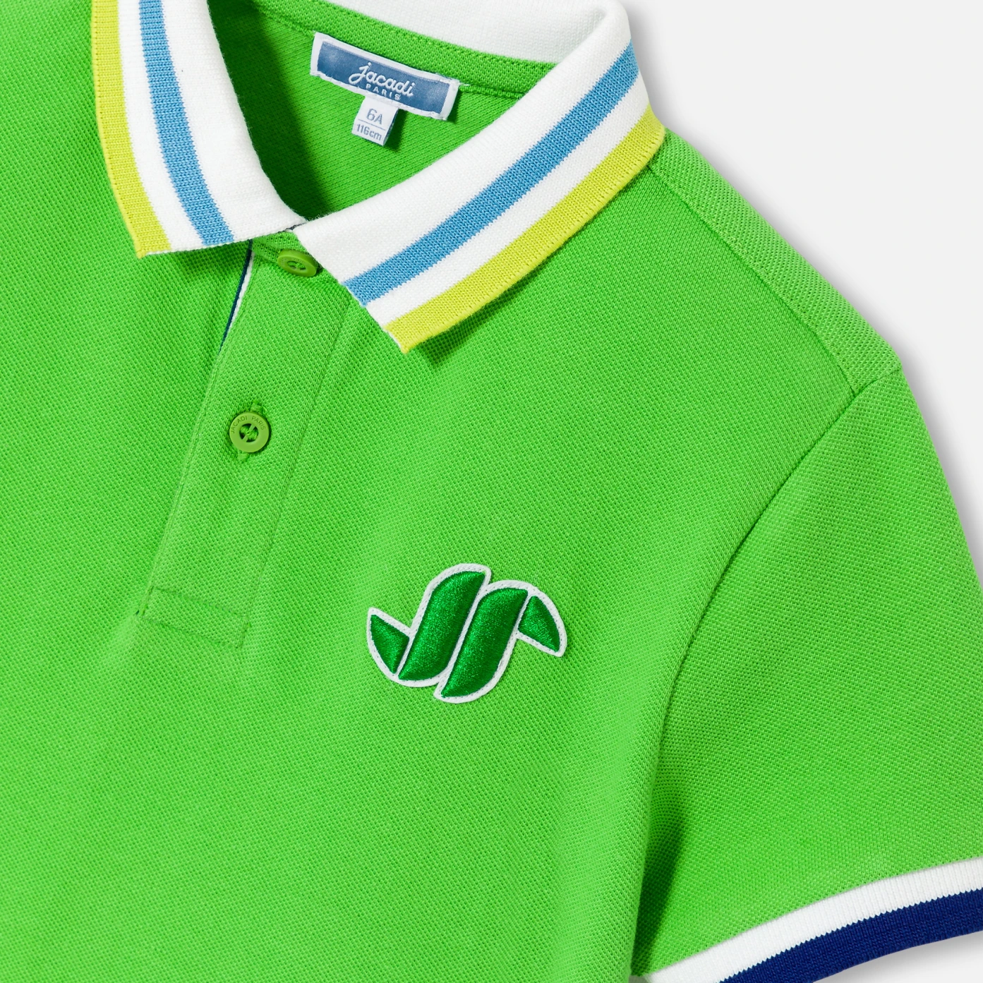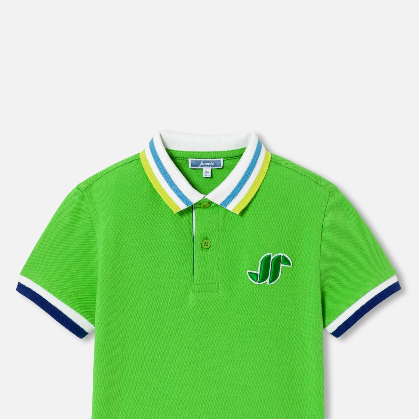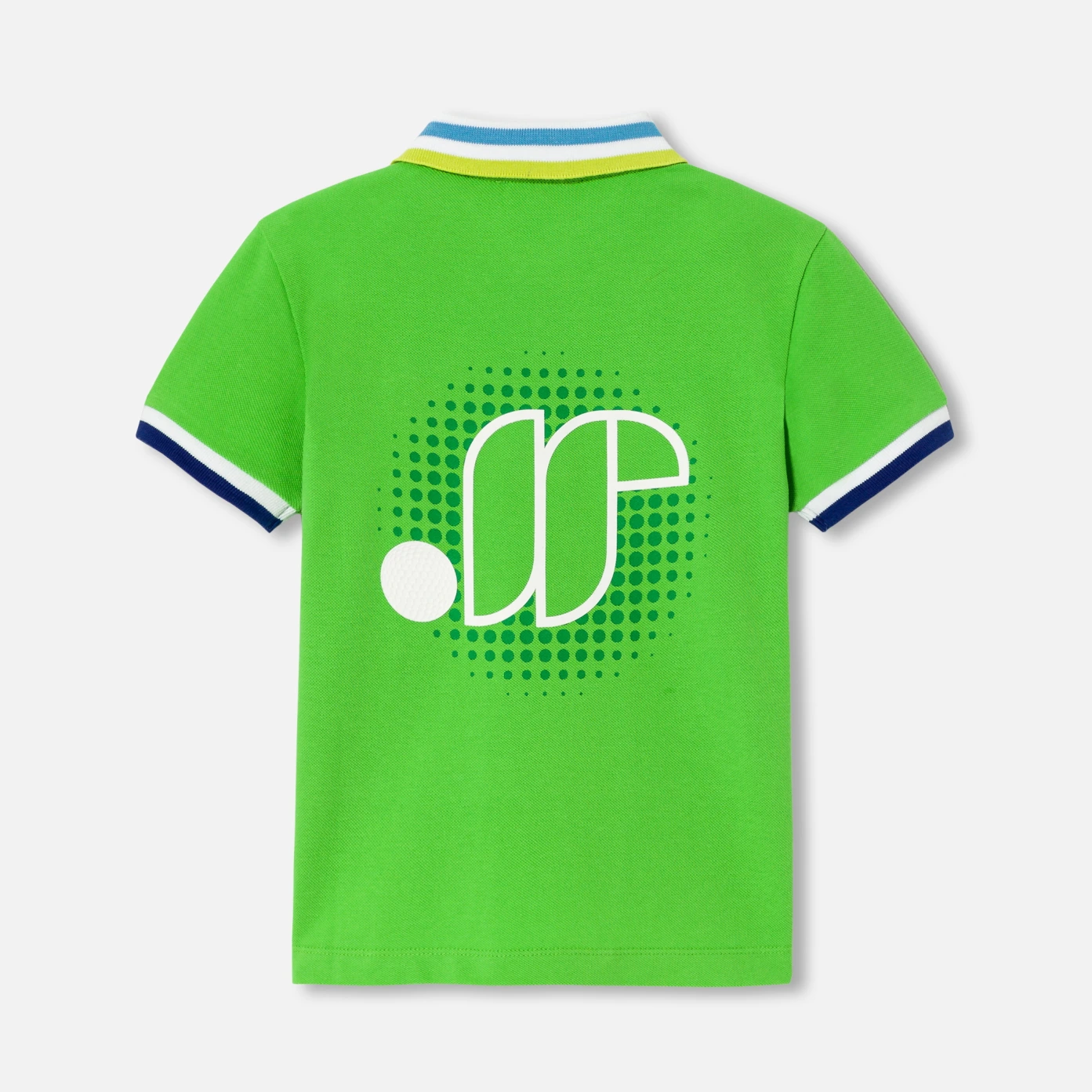 這款男孩Polo衫靈感來自高爾夫Polo衫,採用有機棉珠地布製成。充滿活力的鮮綠色,對比色細節和背面的高爾夫圖案,使這款Polo衫無論是在運動場上還是在城市中搭配斜紋布長褲和運動鞋穿著,都非常適合。