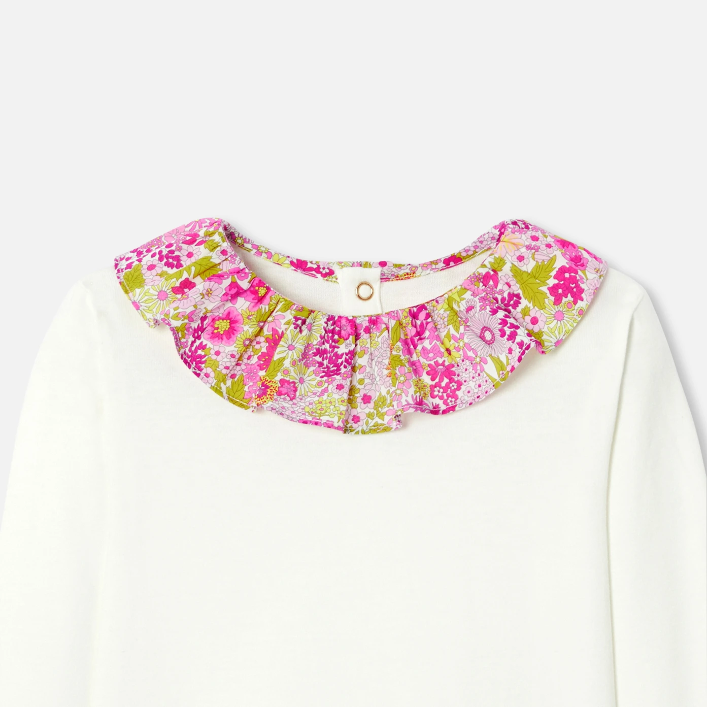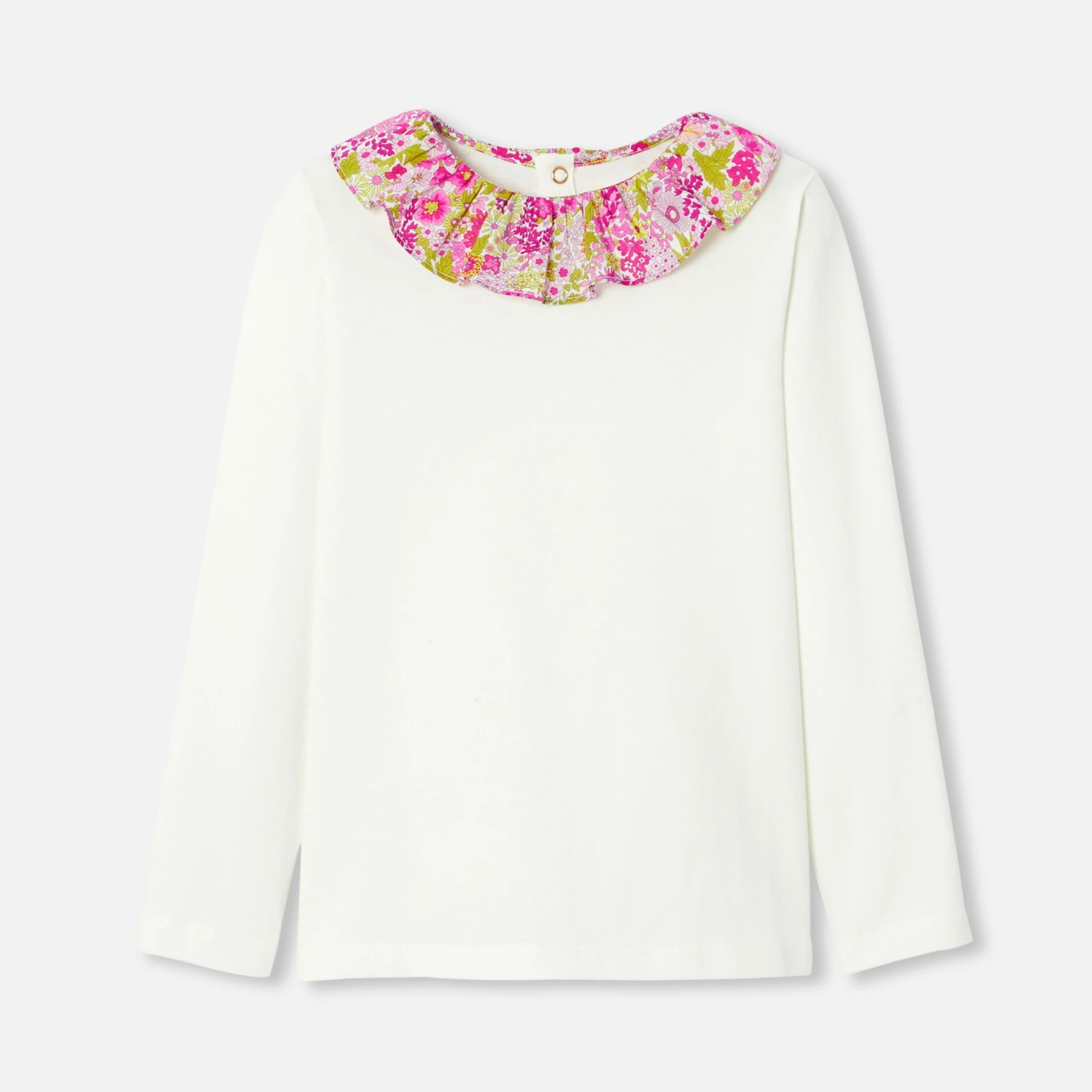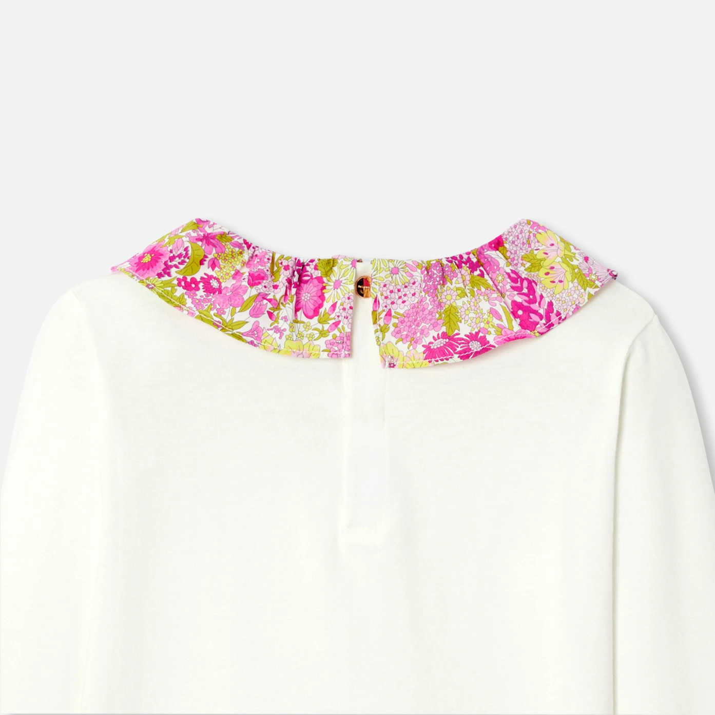 這款長袖大女童T恤結合了柔軟棉料的舒適感和Liberty布料的優雅,無論搭配短褲或寬褲,皆能輕鬆融入各種造型。