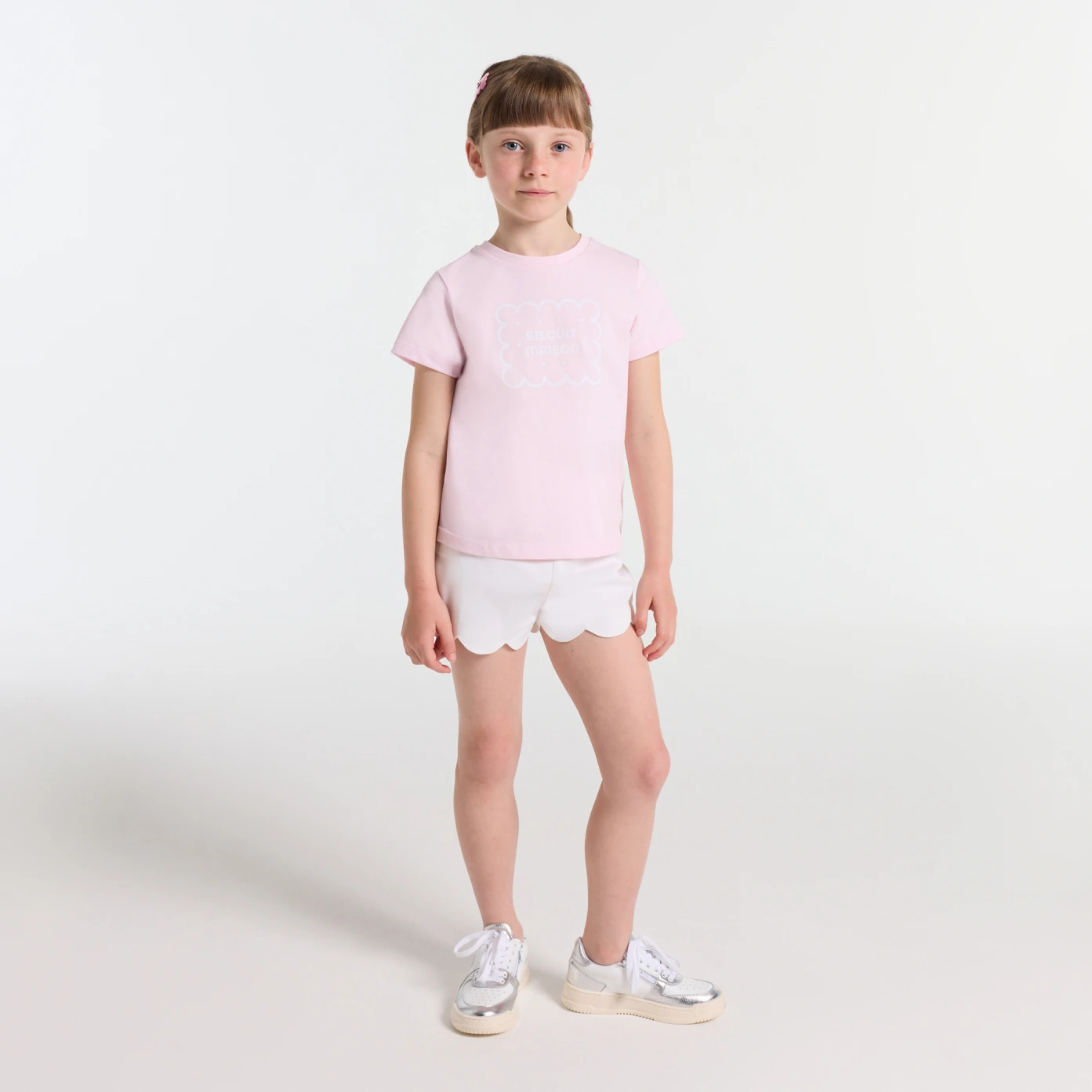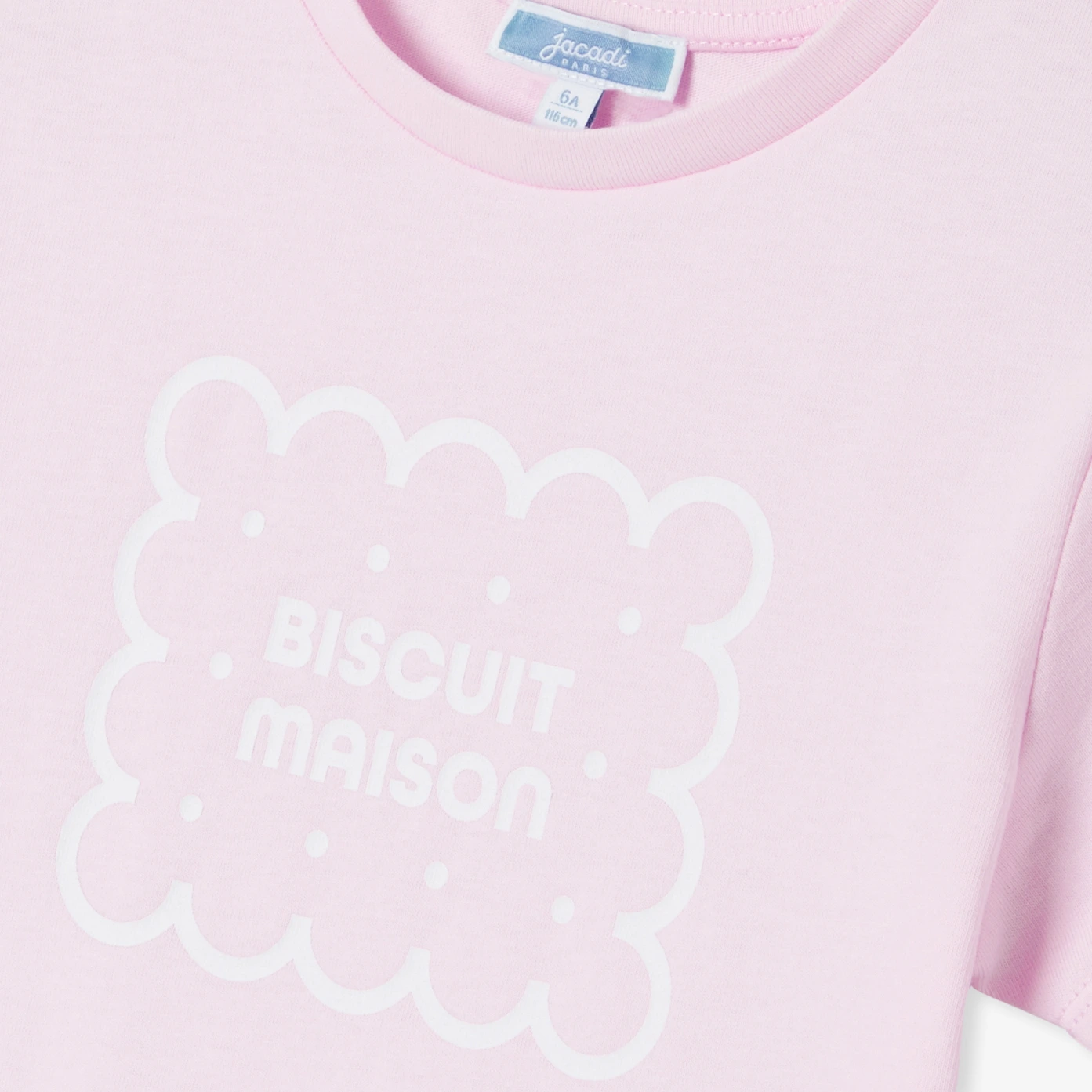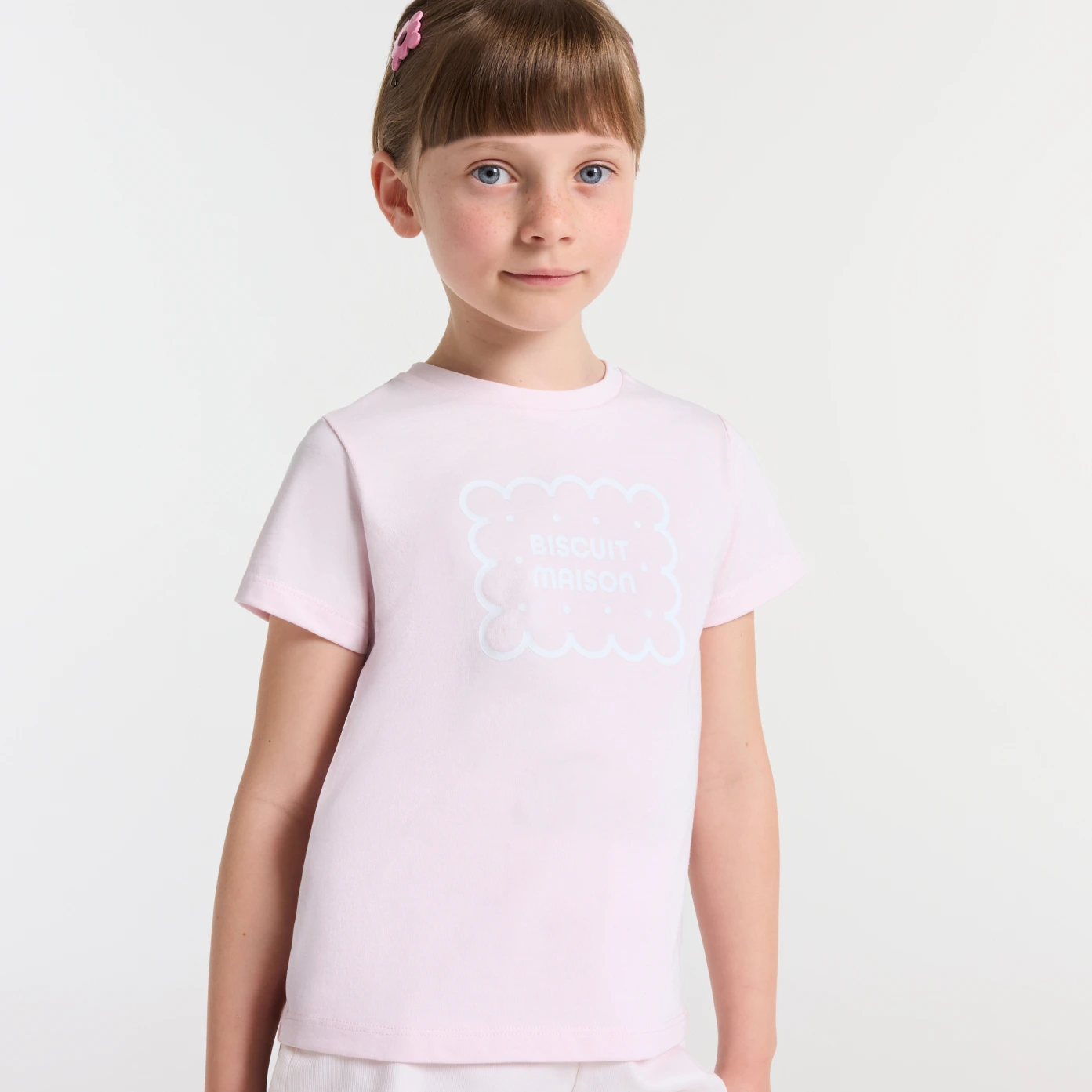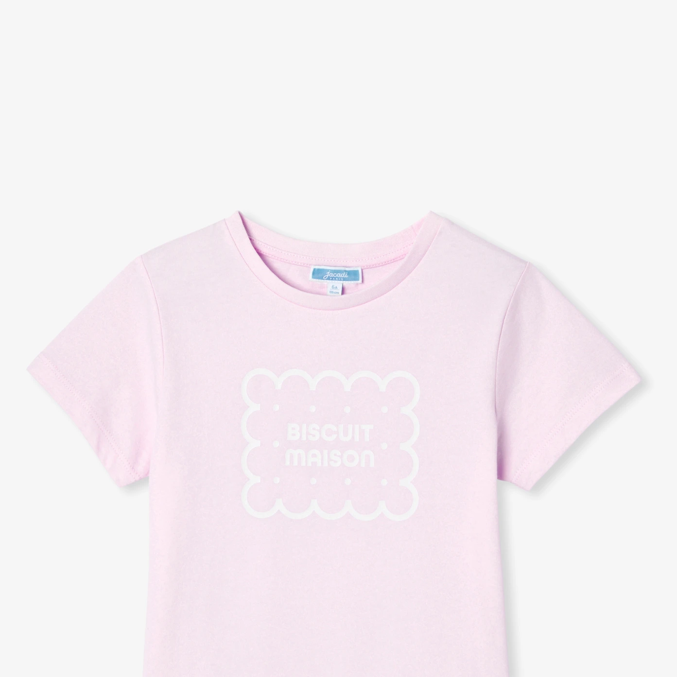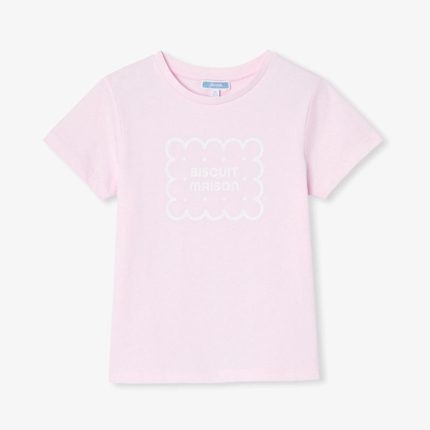 曲奇餅圖案增添童趣,柔和粉彩色系展現魅力,Jacadi重新演繹基本款女孩短袖T恤,呈現溫柔俏皮設計。可搭配裙褲或寬褲,為今秋造型加分。