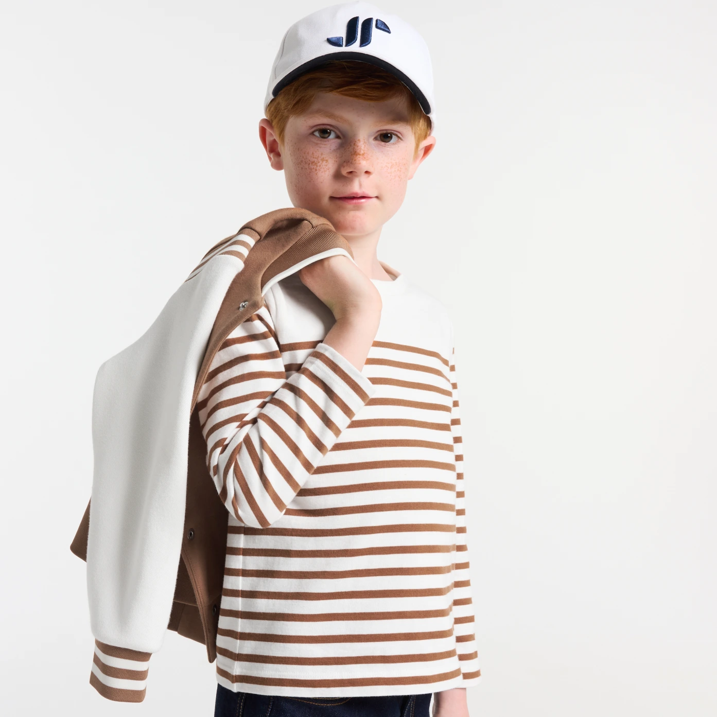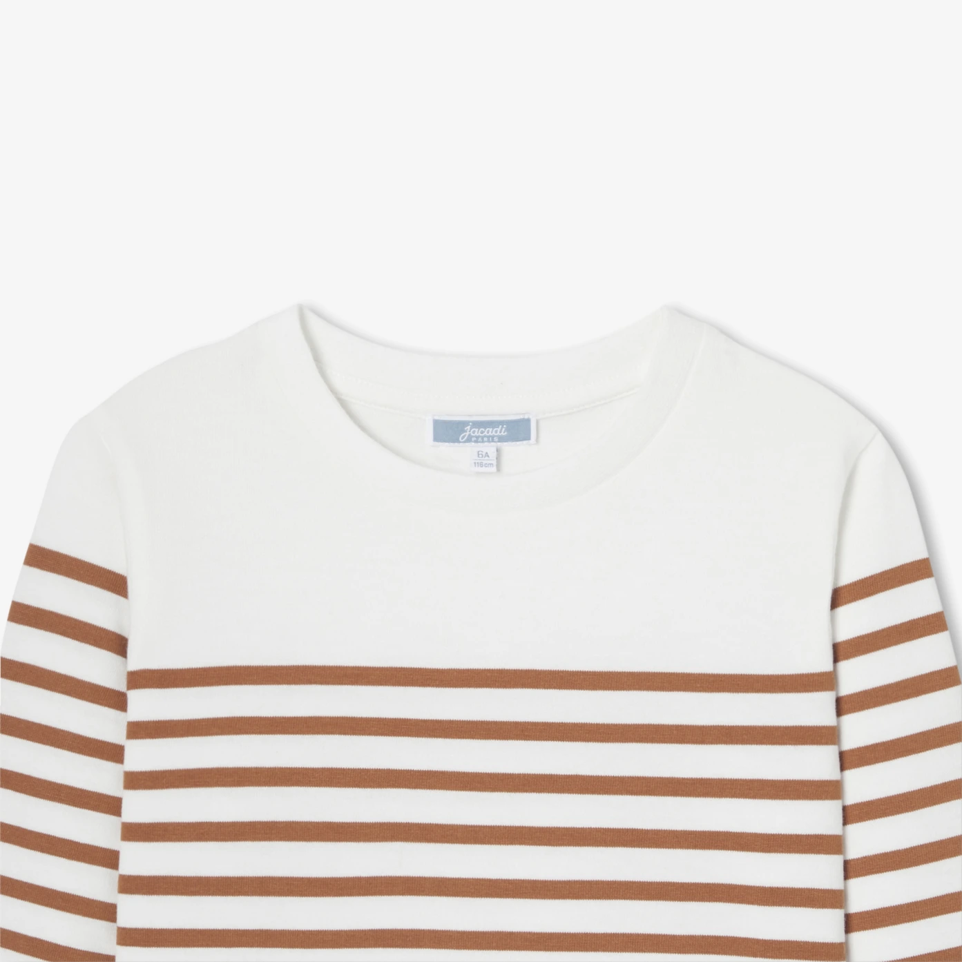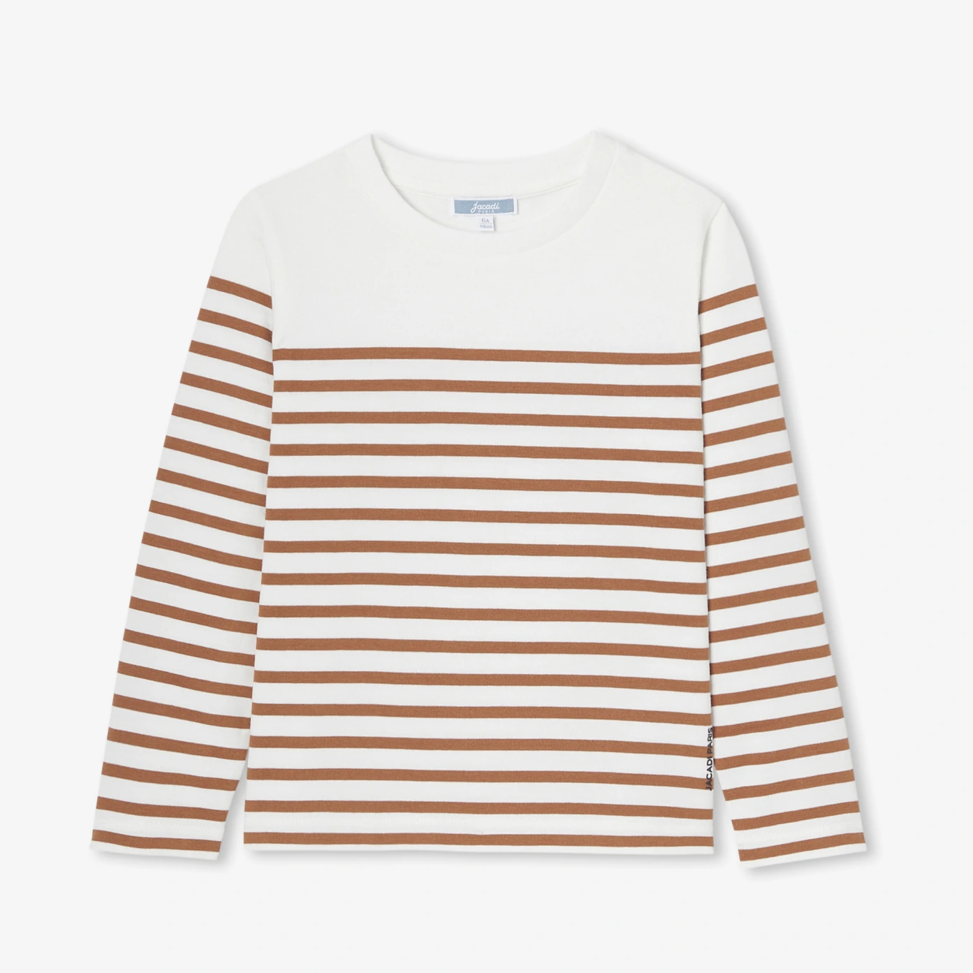 作為法式衣櫥的經典單品,Jacadi 每季都以現代手法重新詮釋這款標誌性兒童水手風格T恤。本季選用厚實刷毛有機棉面料,兼具保暖與舒適,溫潤棕色調可搭配反摺牛仔褲與運動鞋,打造時髦巴黎休閒造型。