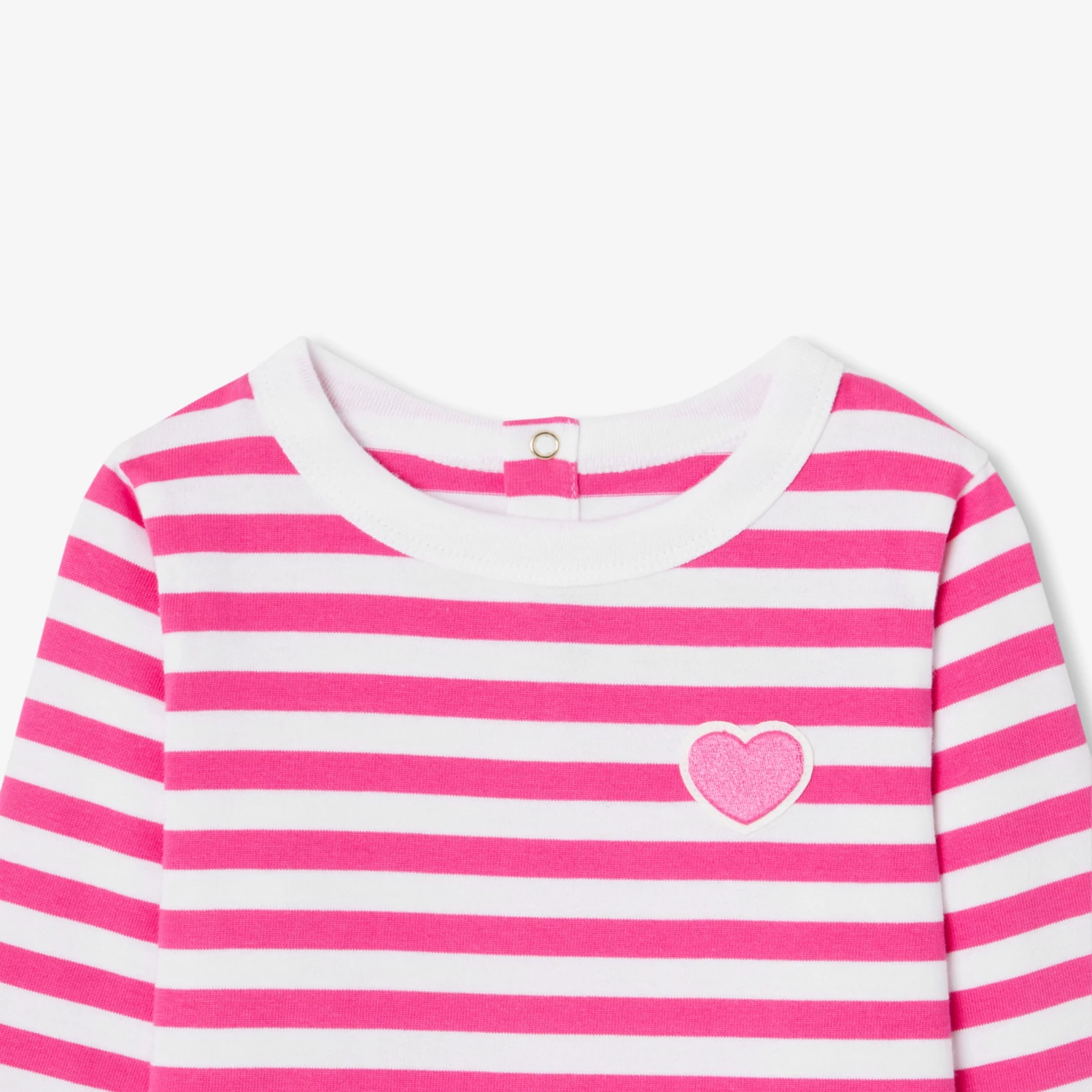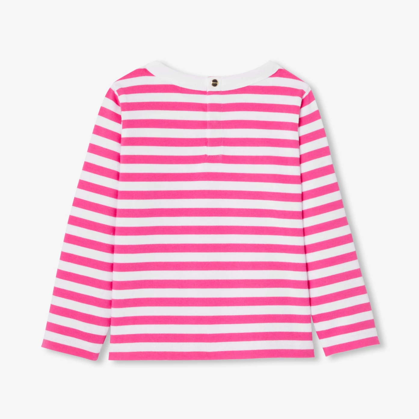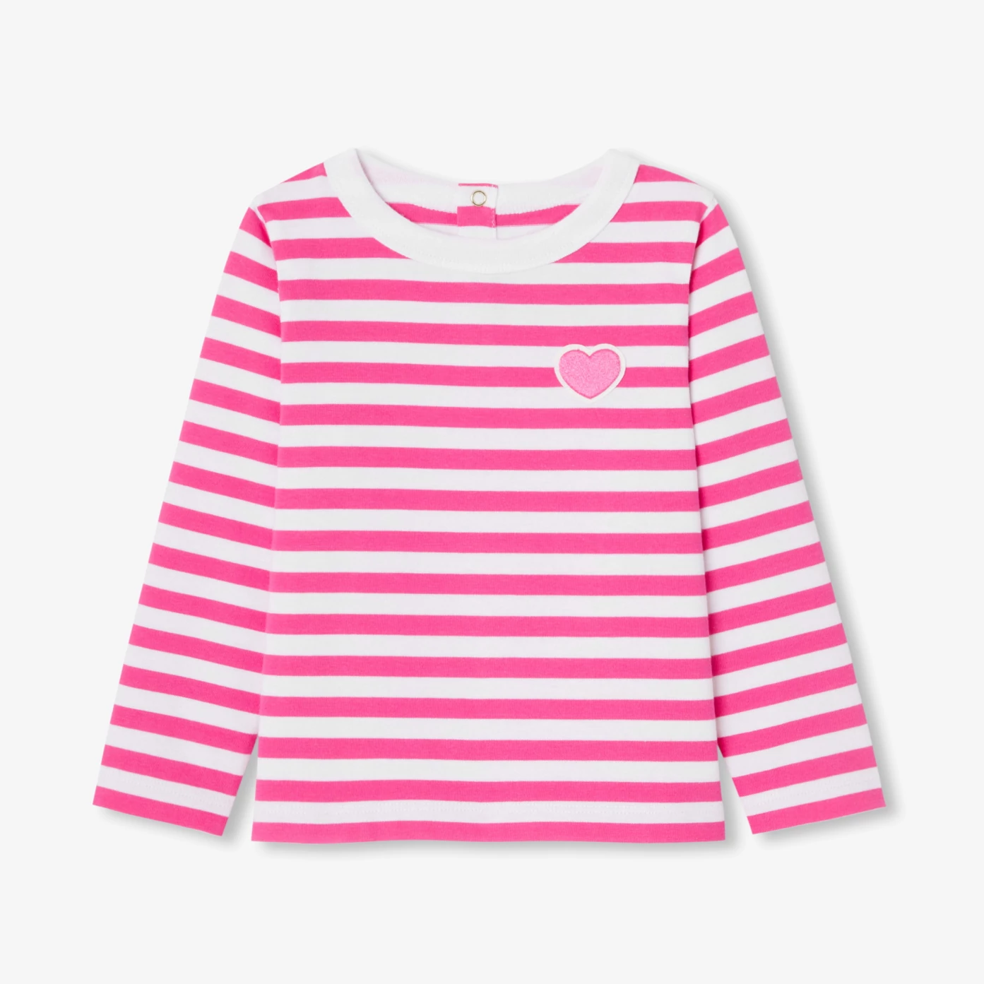 Jacadi經典海軍風上衣,於本季以有機棉針織布演繹,為女孩打造優雅又實穿的開學造型。胸前飾有精緻刺繡愛心徽章,背面按釦設計便於穿脫,可搭配寬版牛仔褲與球鞋,或燈芯絨短褲與娃娃鞋,展現別具巴黎氣息的日常造型。