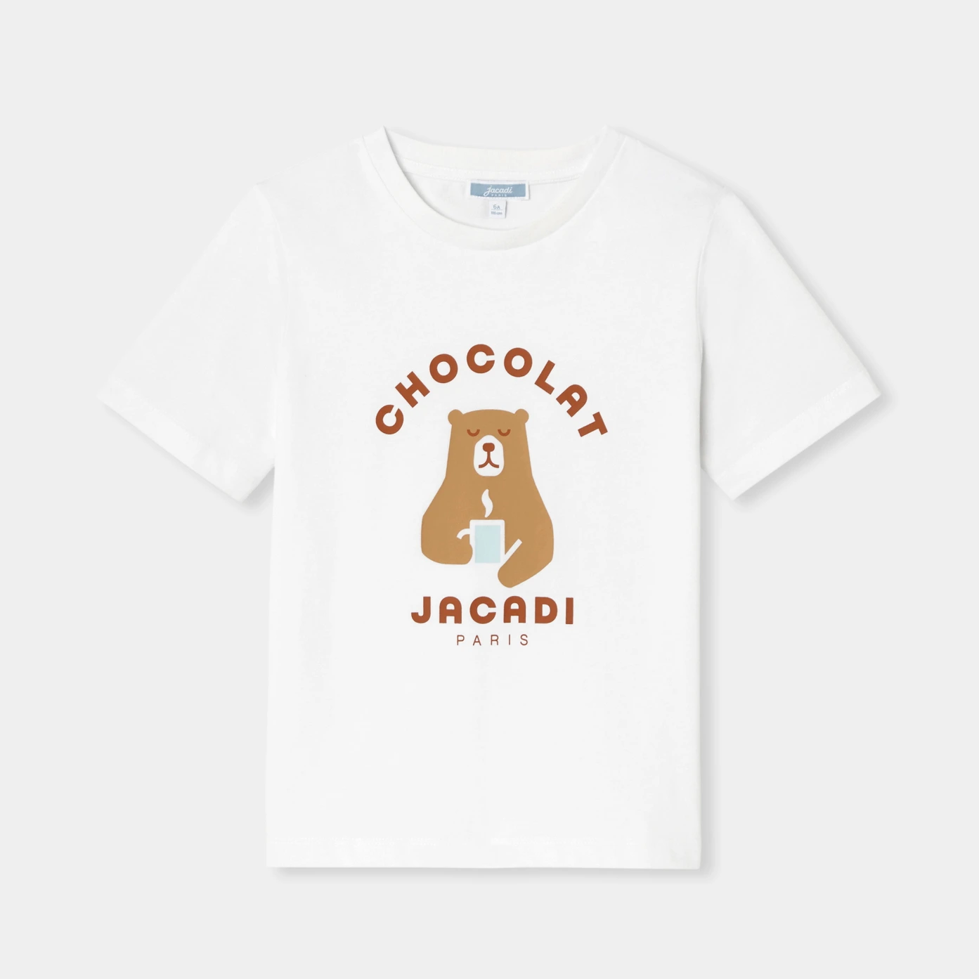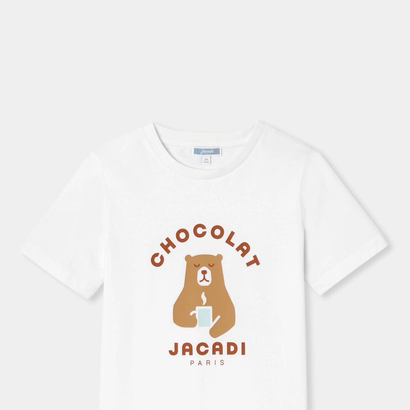 作為日常穿搭經典款,這款白色男童 T 恤以趣味圖案展現獨特風格。選用柔軟有機棉平紋針織面料製成,秋季搭配牛仔褲與最愛的運動鞋,最適合熱愛巧克力的男孩穿著。
