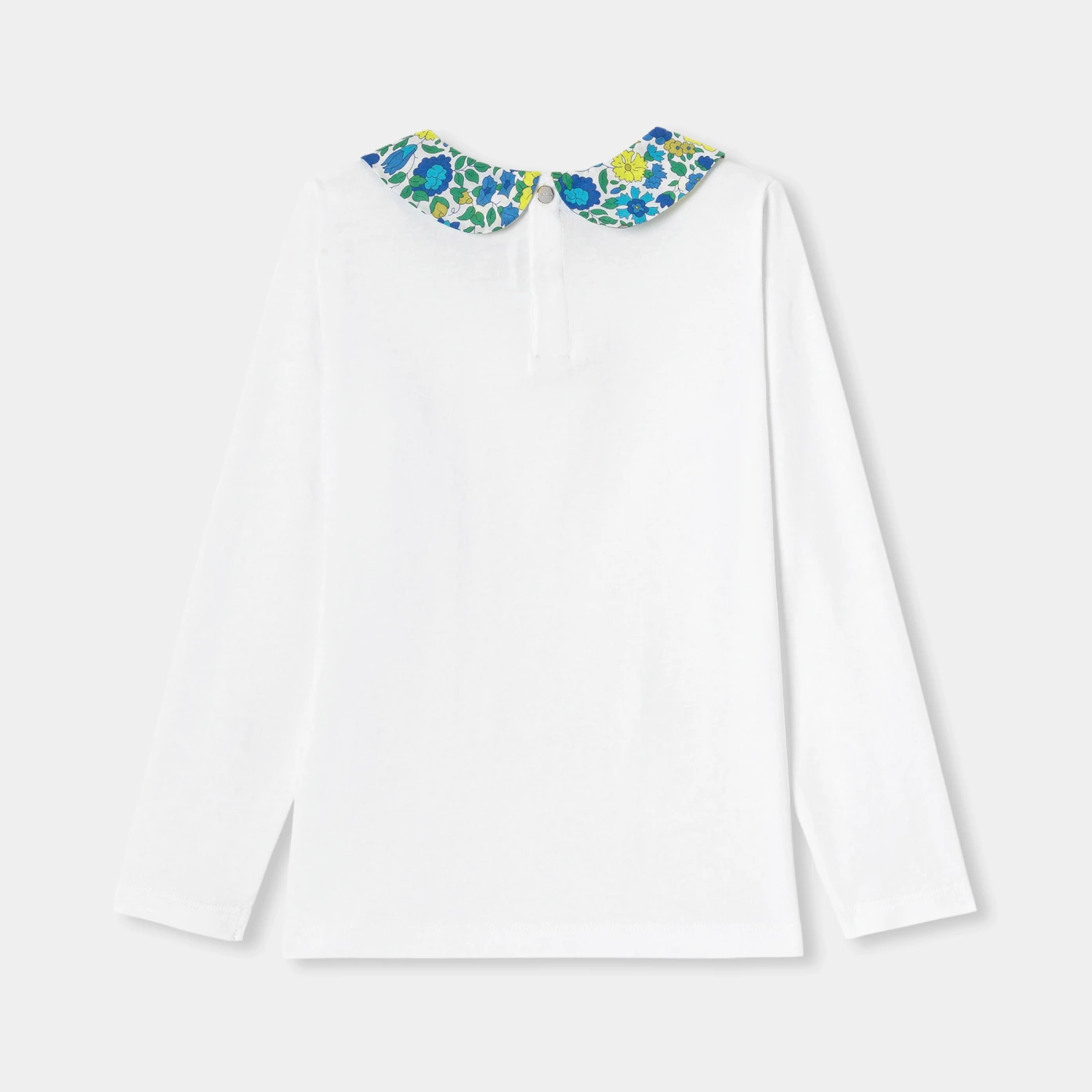 這款女童長袖上衣以有機純棉製成,搭配專屬 Jacadi 配色的 Liberty Theresa Petals 花布領片,為開學季衣櫥注入優雅氣息。無論單穿搭配絨布裙,或作為內搭配牛仔外套,皆展現高雅與實穿性。